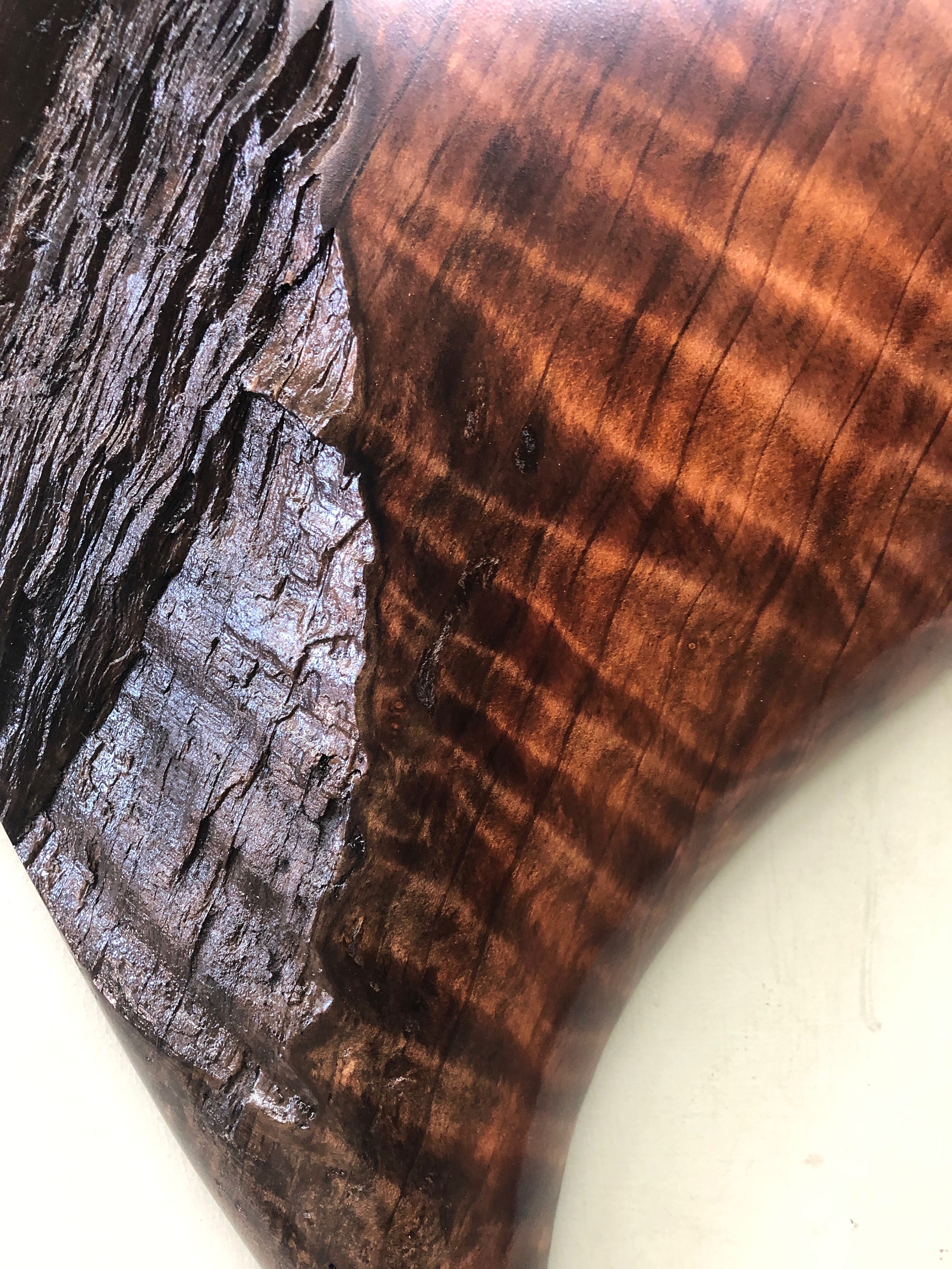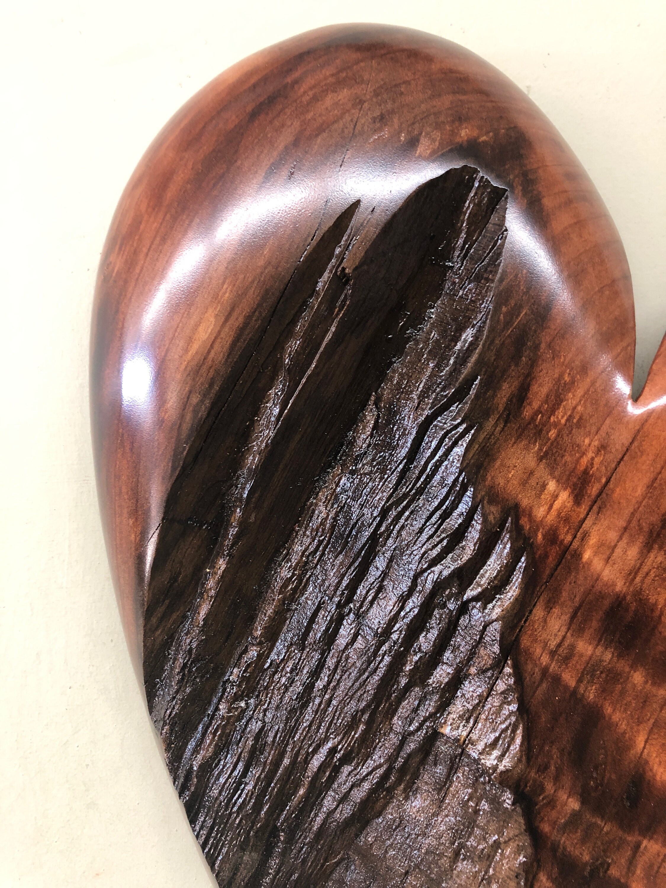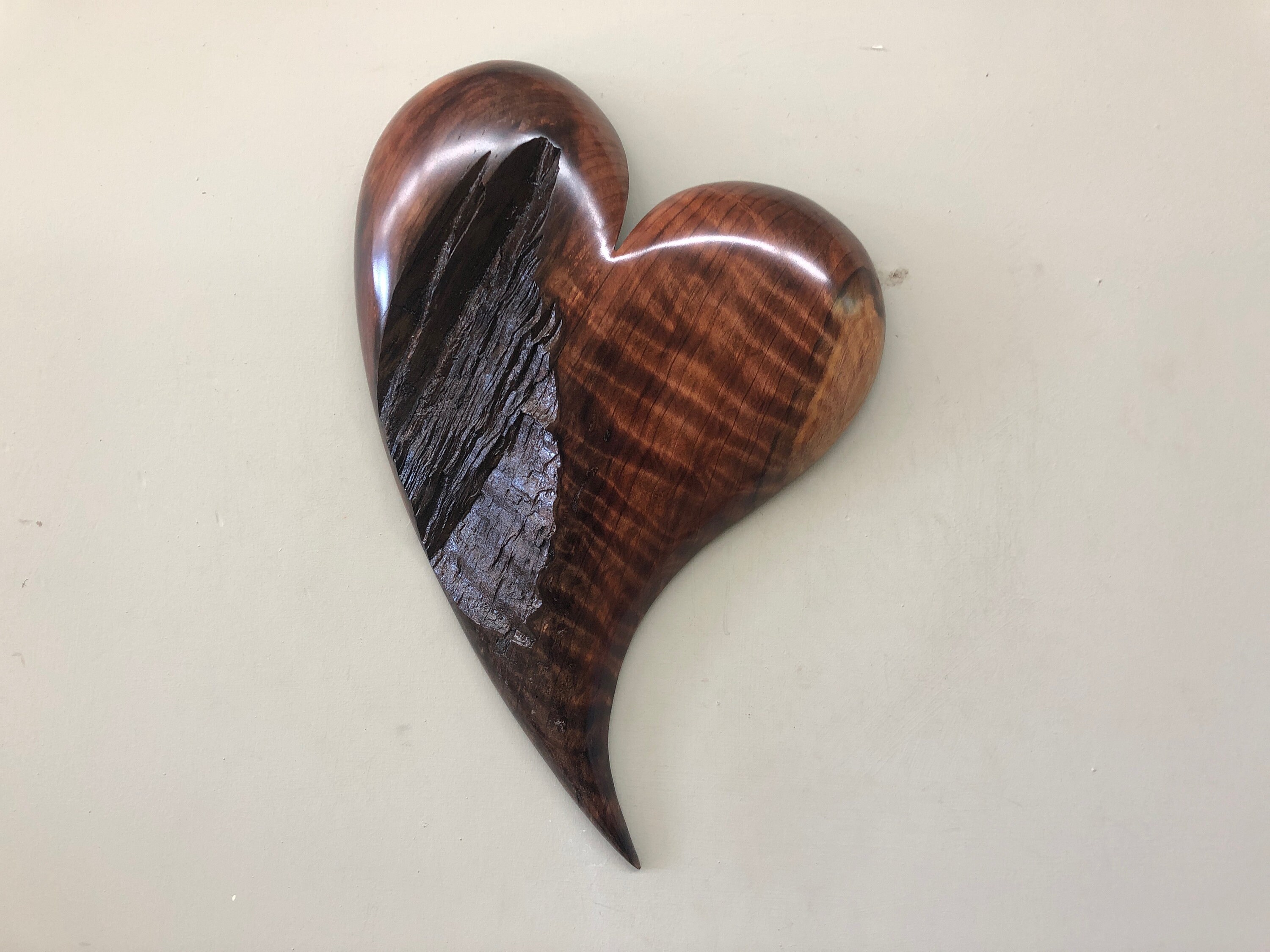 I just got this piece of wood not too long ago and couldn't wait to work it! A commercial fisherman friend here in Port Orford pulled this off of Battle Rock Beach 8 years ago. He had it milled and then did nothing with it. I traded him for it and am tickled to have it!! I don't get much Redwood these days! There is some great figure in the grain pattern! And I love the color. There is a darkening here and there that adds a lot of character to the piece. This isn't a blemish free heart but it has a wonderful feel to it. Like most of our hearts, it has been through some times that have tested it's love. Love and Gratitude!