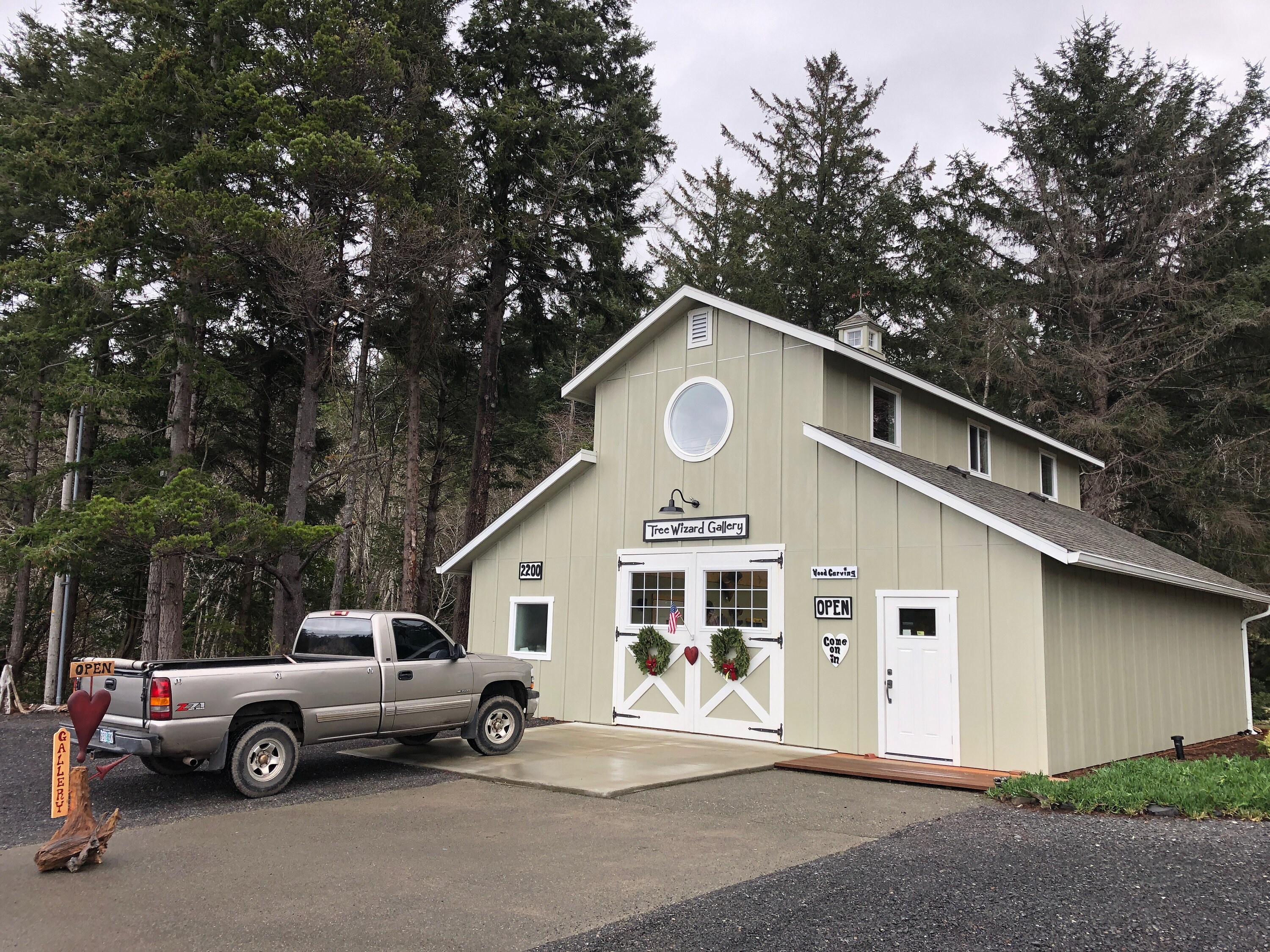 I am Gary Burns the treewiz or Wiz. It measures 21" tall x 14 1/2" wide x 1 1/2" thick. I love the bark areas and the way it contrasts the smooth, sanded portions. SHIPPING IS INCLUDED IN ALL OF MY CARVINGS!! The next to last photo is of me carving in my shop and the last is my gallery/shop, The Tree Wizard Gallery in Port Orford, Oregon.