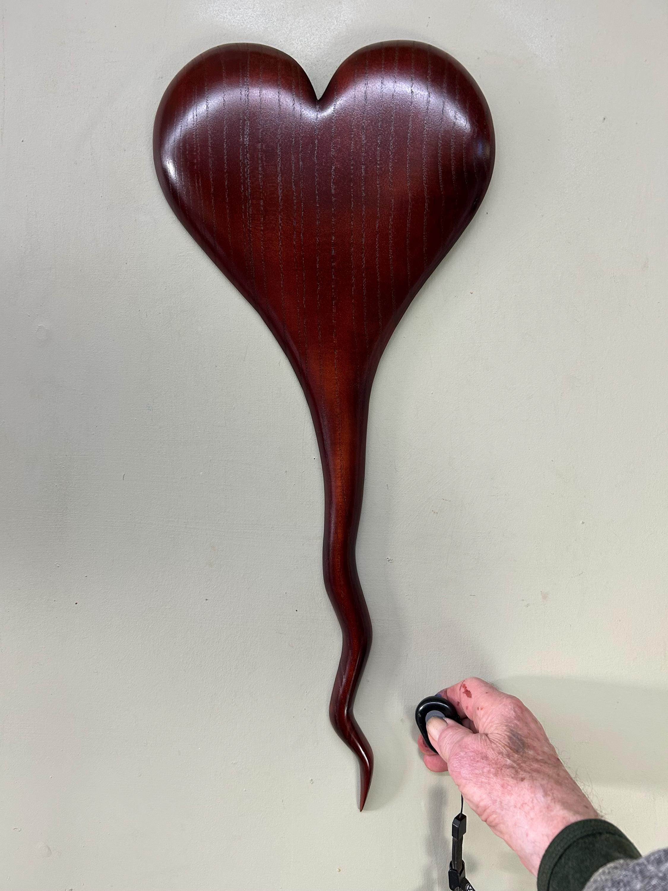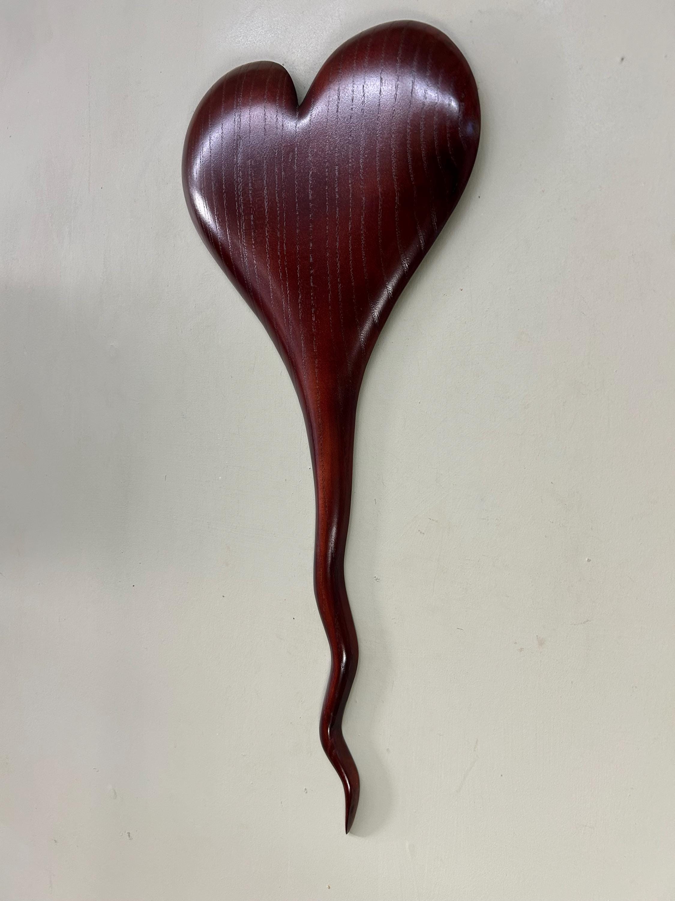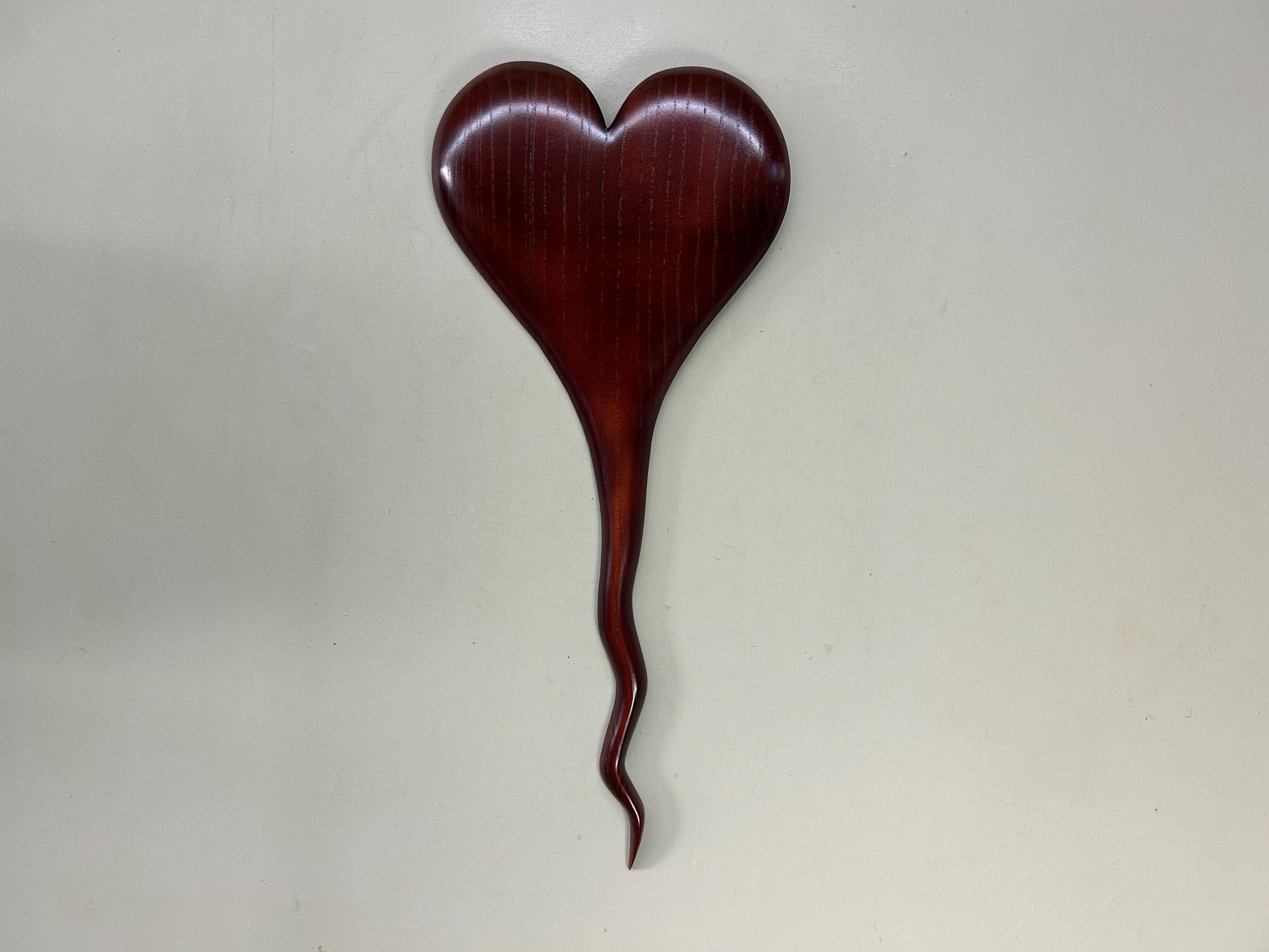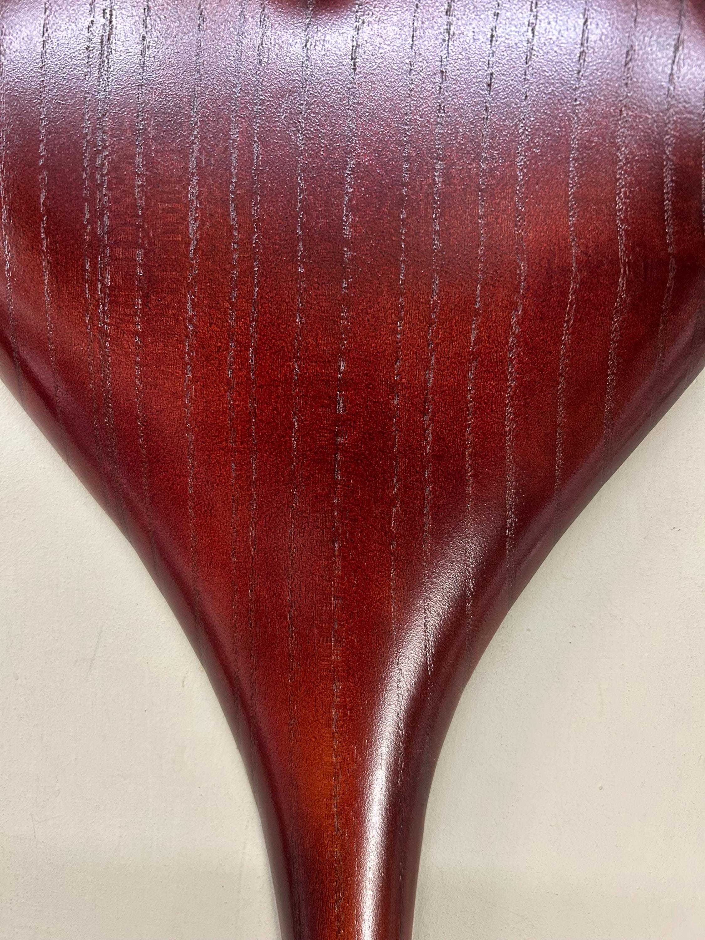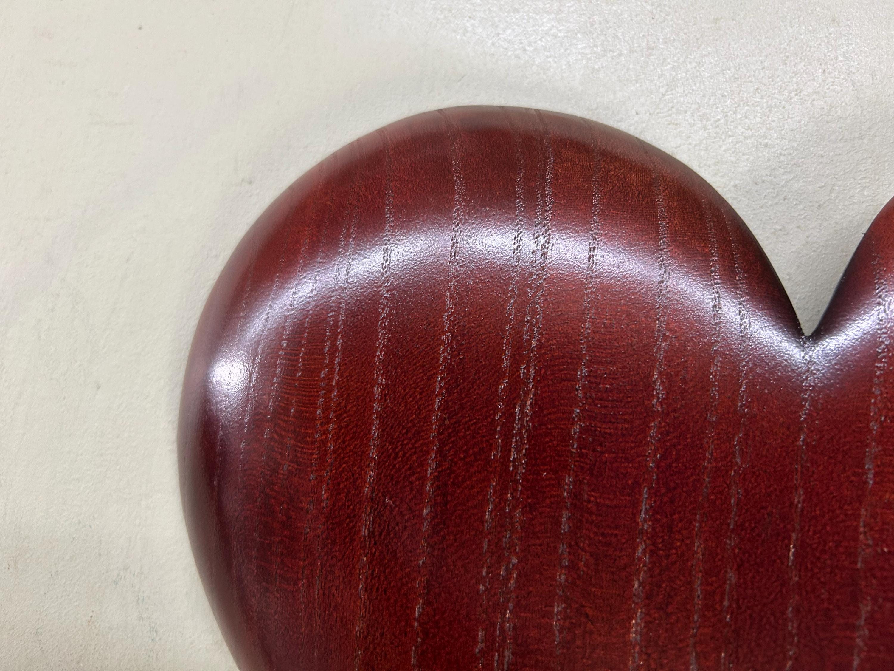 A wedding gift present Myrtle wood wall heart that would make a wonderful Wedding gift. It would be a perfect any occasion gift present!! This piece comes ready to hang on the wall. It measures 23 1/2" tall x 10 1/2" wide x 1" thick. It's carved out of a piece of Myrtlewood that I dyed a deep red.