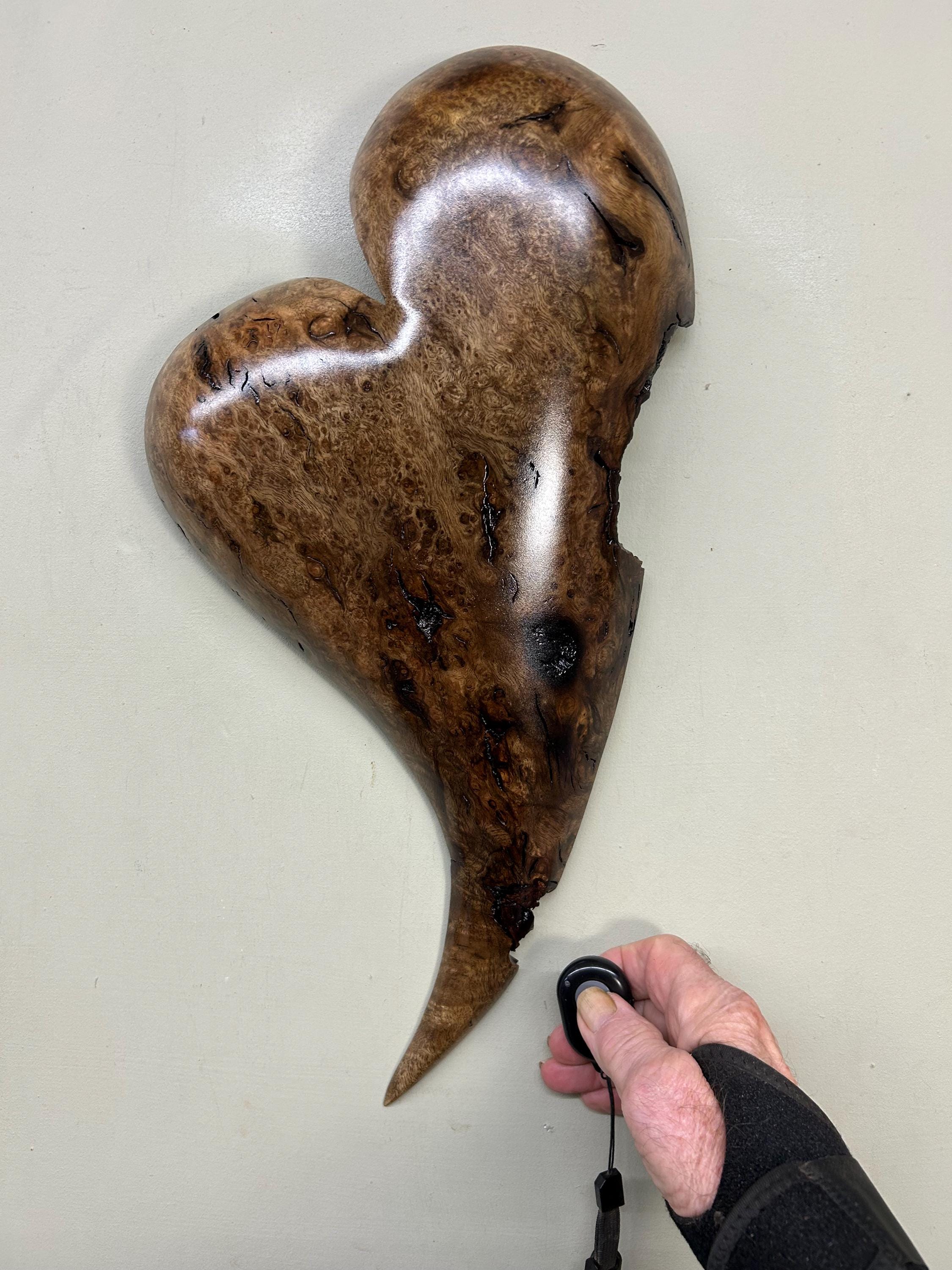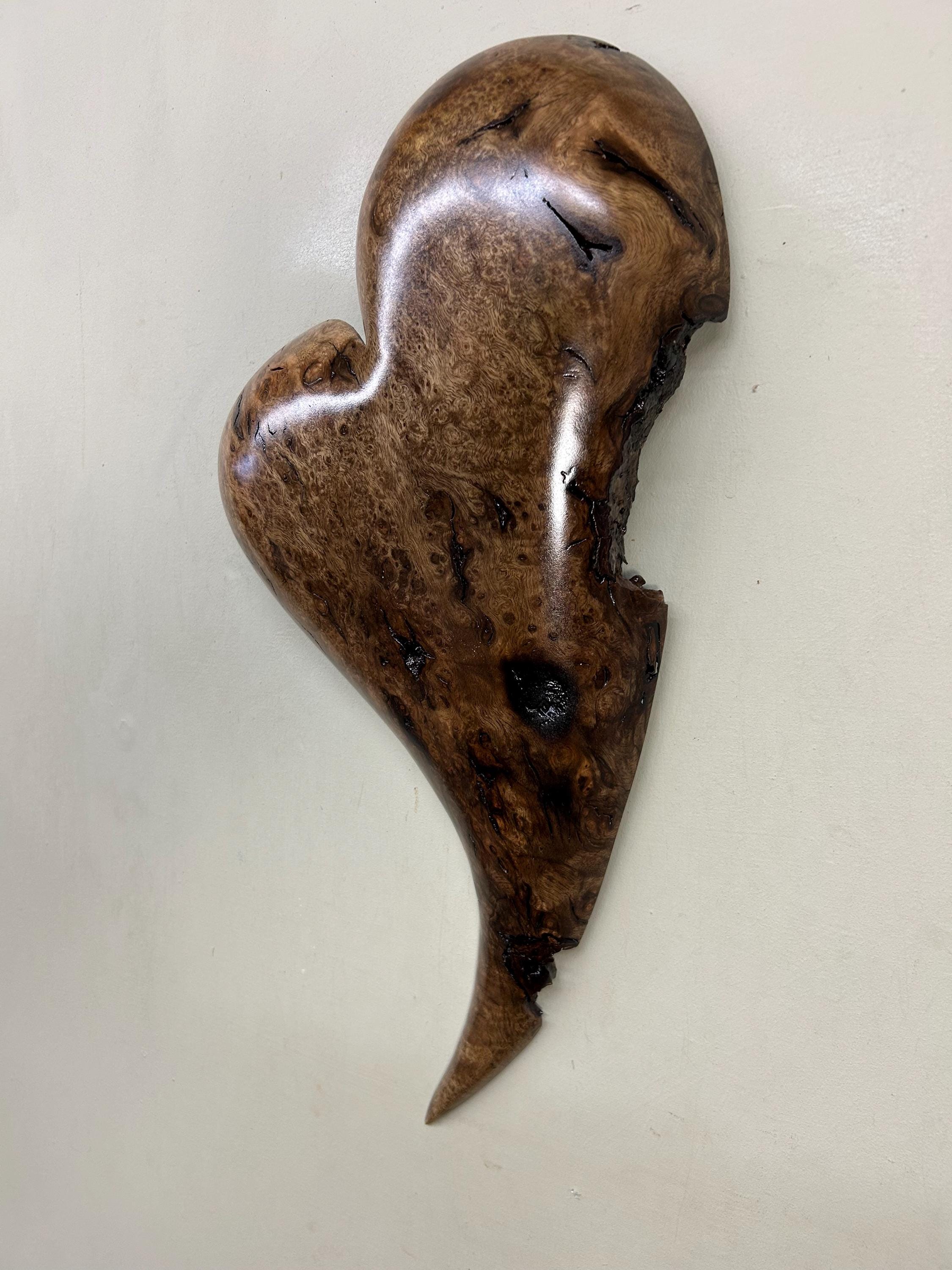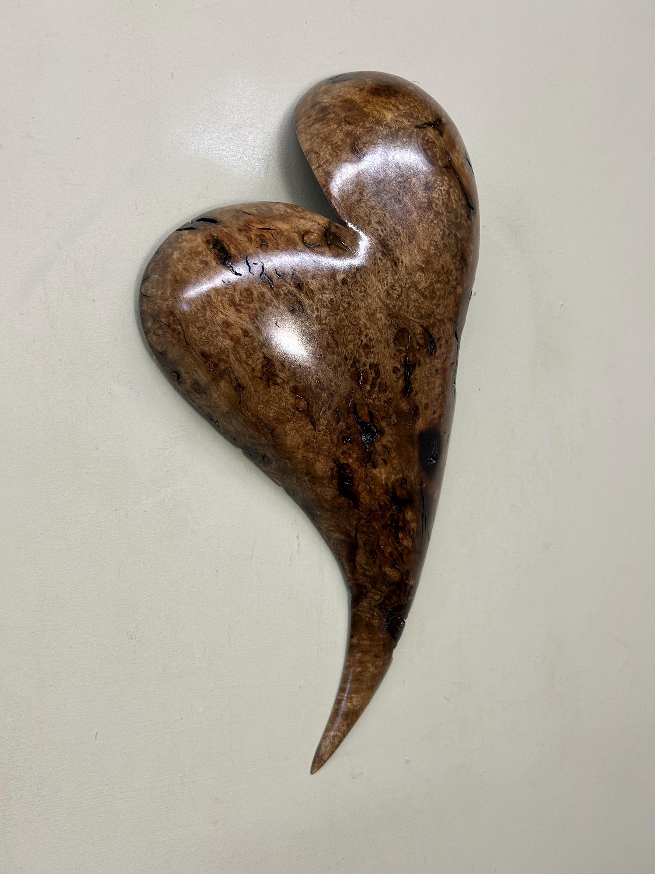 I carved this heart out of a piece of Myrtlewood burl that grows in my neck of the woods, in Southern Oregon. It's in the Bay Laurel family.