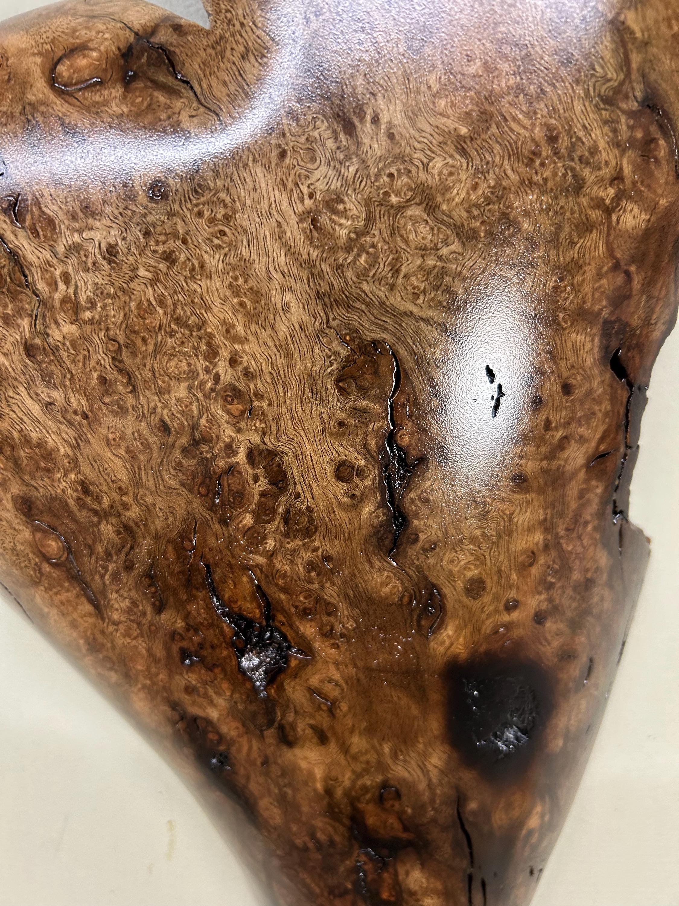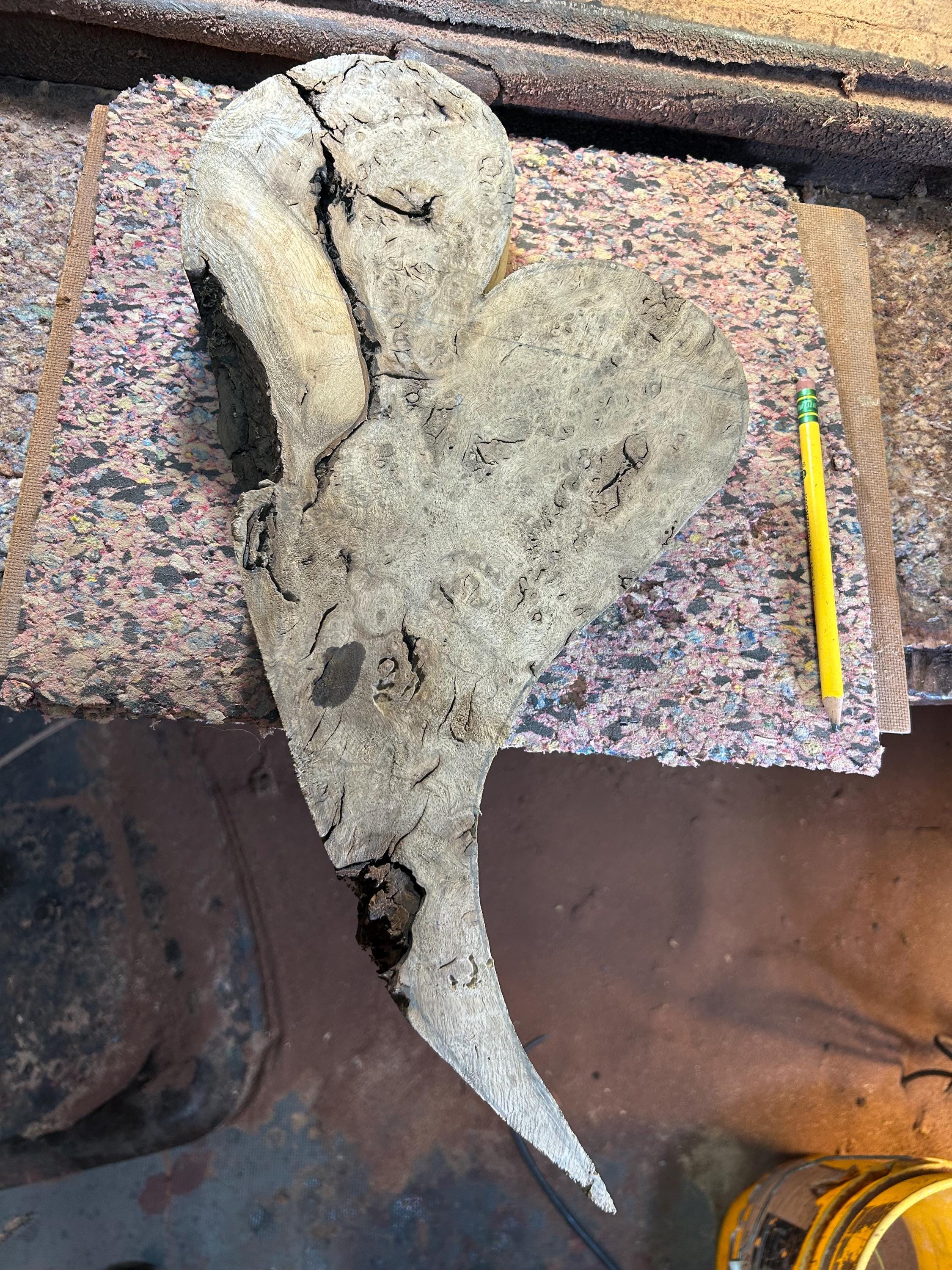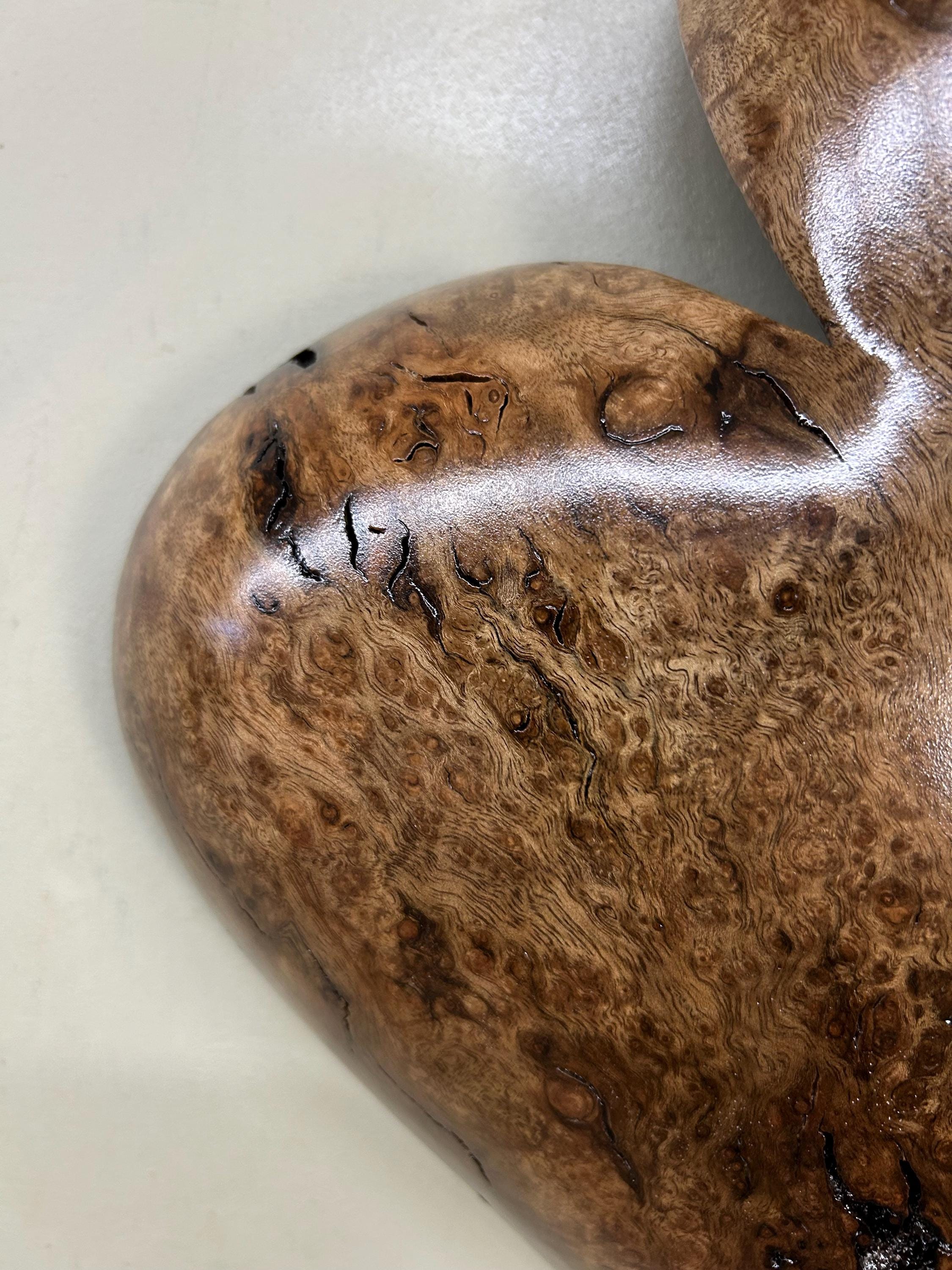I carved this heart out of a piece of Myrtlewood burl that grows in my neck of the woods, in Southern Oregon. It's in the Bay Laurel family.