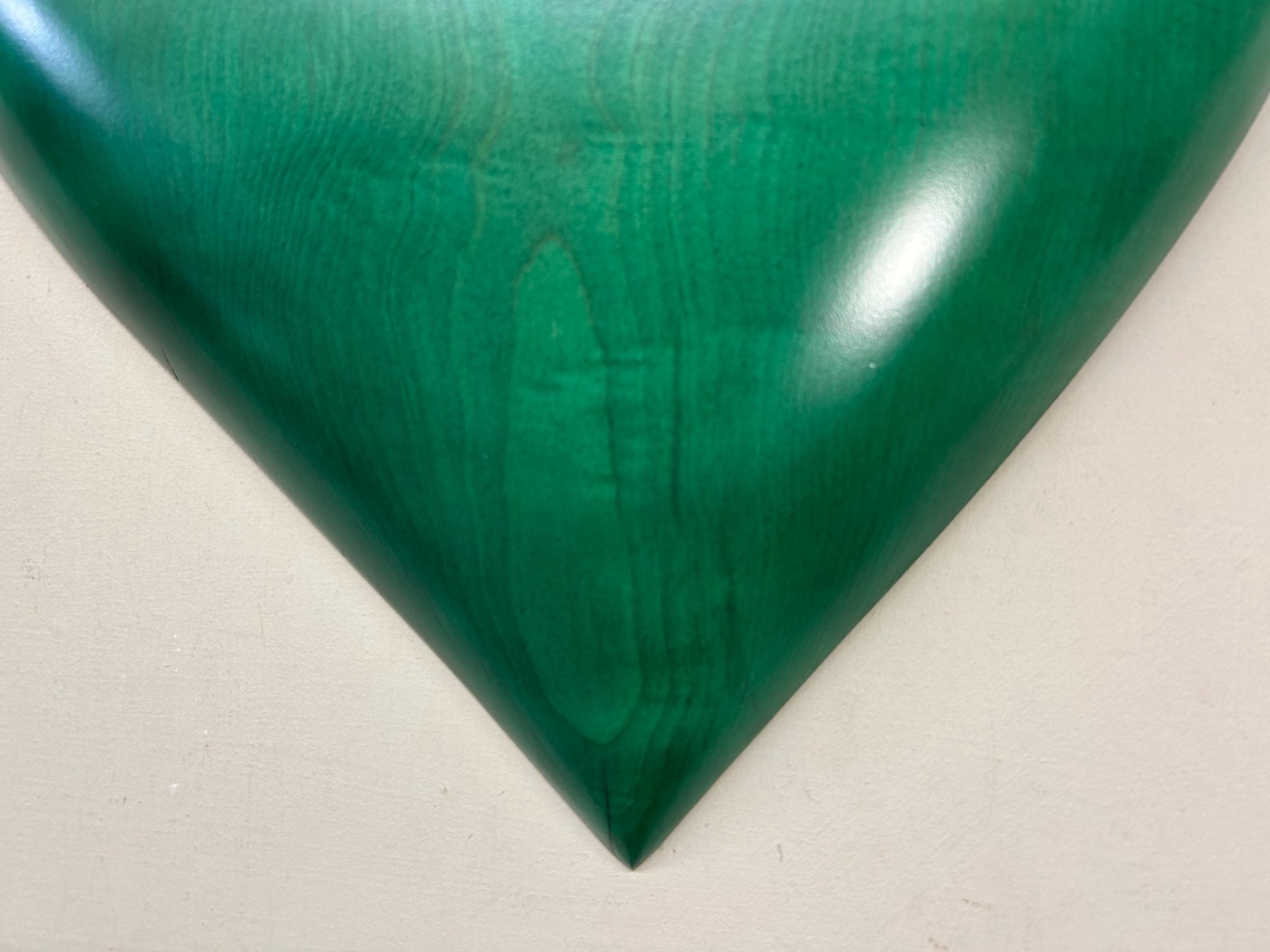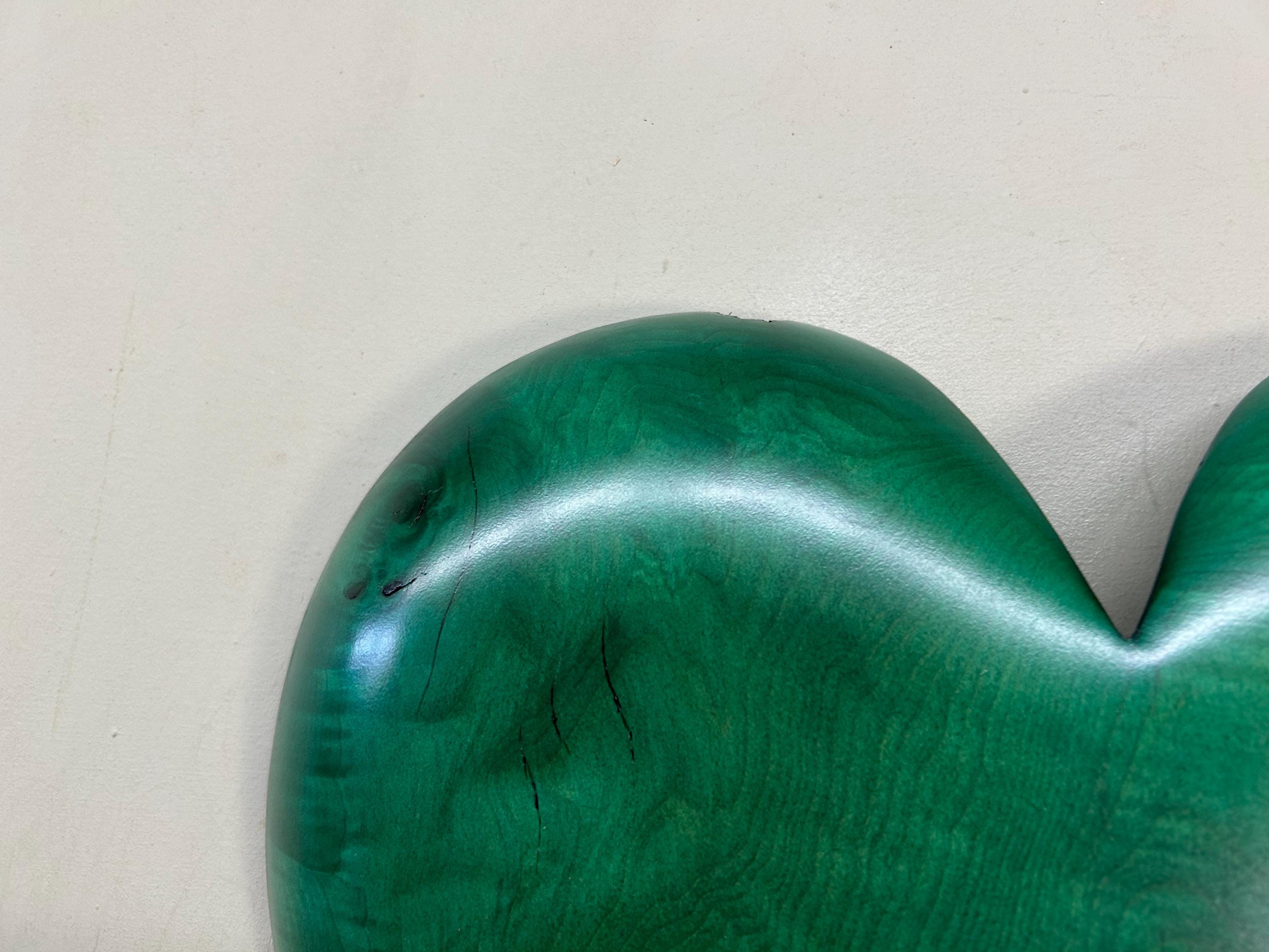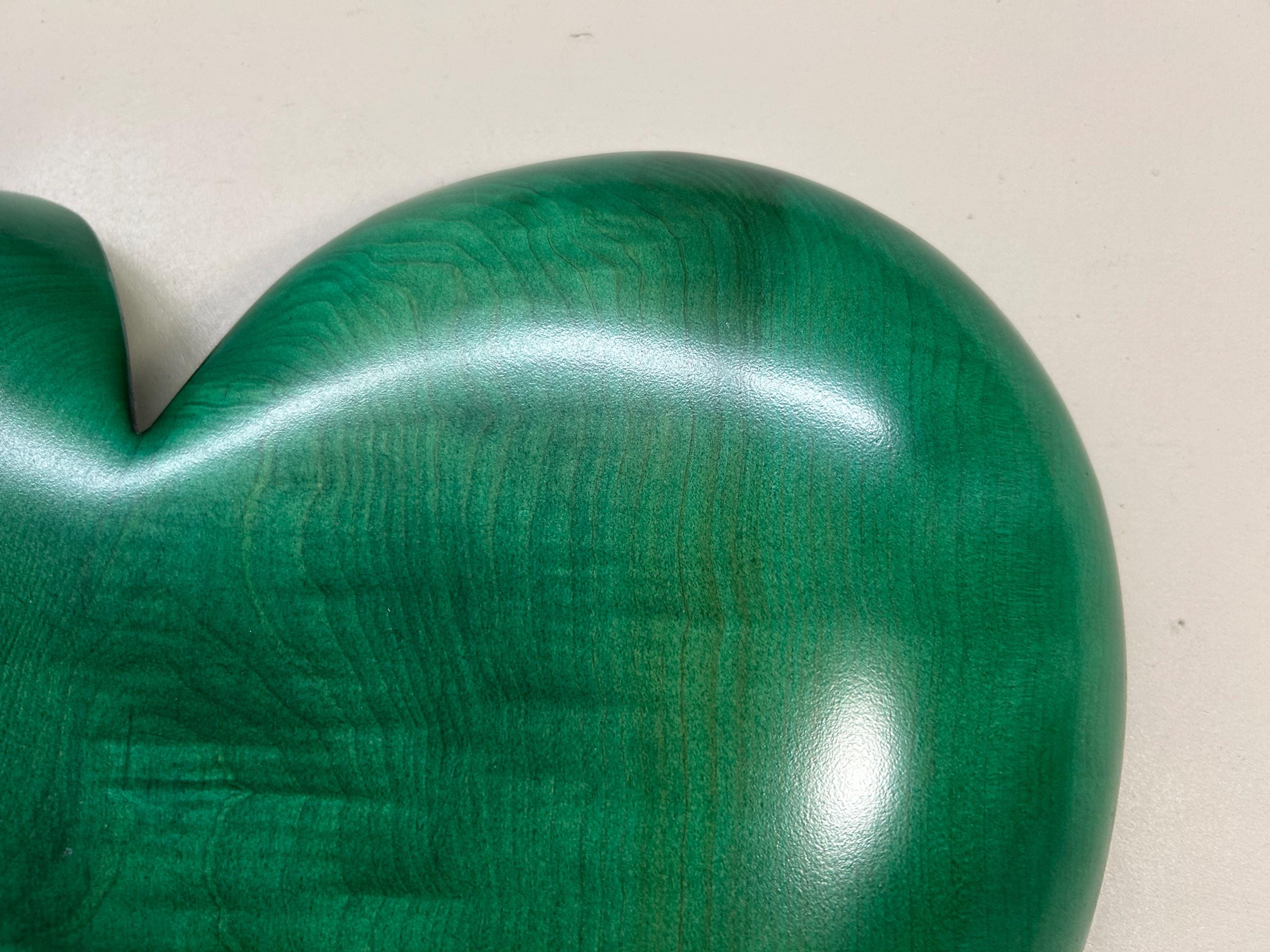 This is a loving Christmas gift present is carved out of white Cedar that I dyed green. It's a wood wall heart and would make a wonderful present for any occasion!! It comes ready to hang on the wall. There are 7 photos of this heart. There are some photos at the end of my gallery, The Tree Wizard Gallery at 2200 Jackson street in Port Orford, Oregon and of me in my shop carving. It measures 15 1/2" tall x 15" wide x 1 1/2" thick. I have attached a metal self leveling hanger on the back and I signed Wiz on the back as well.