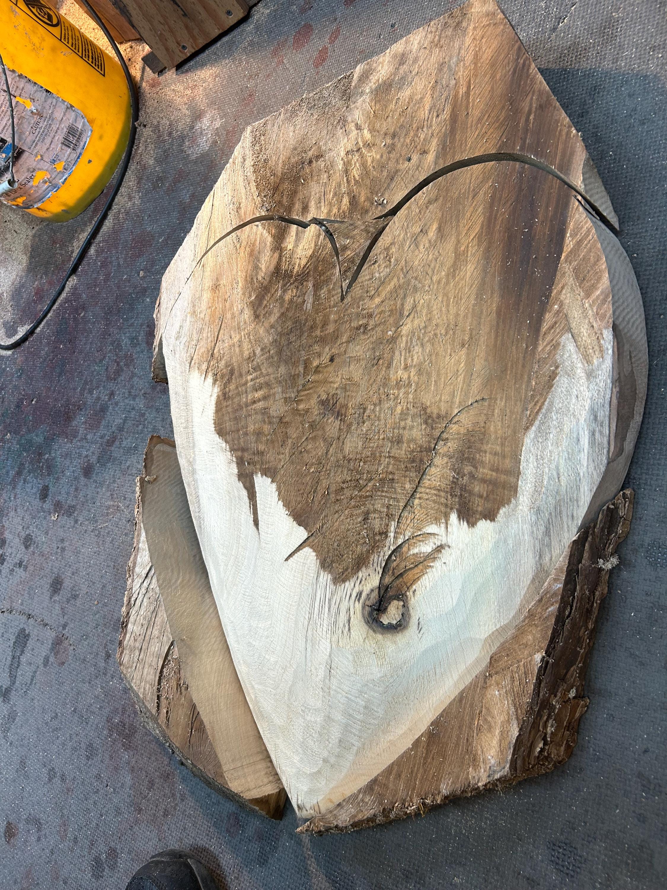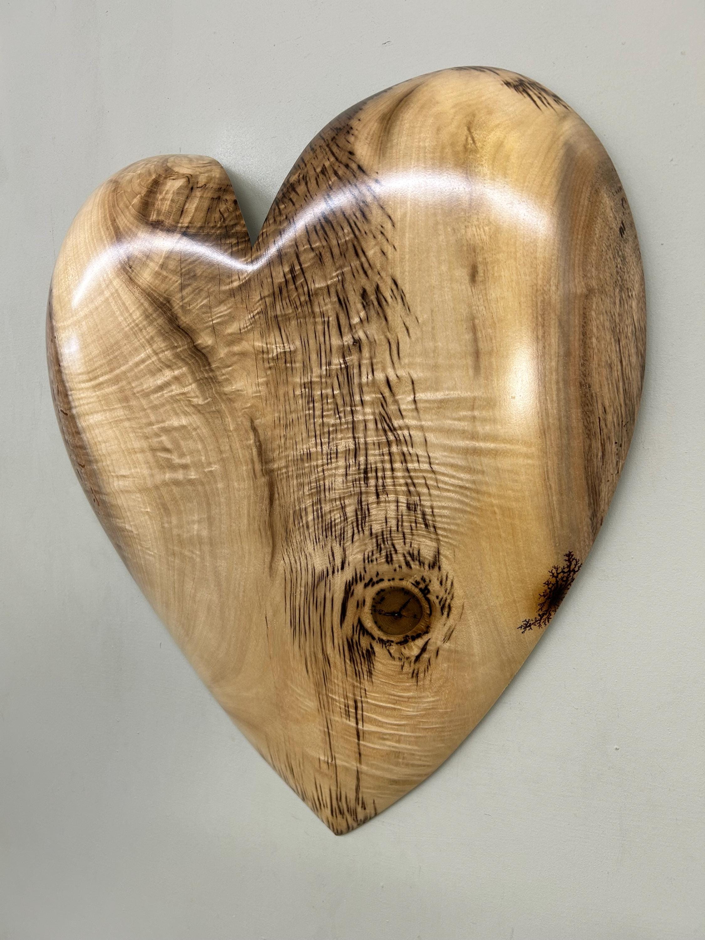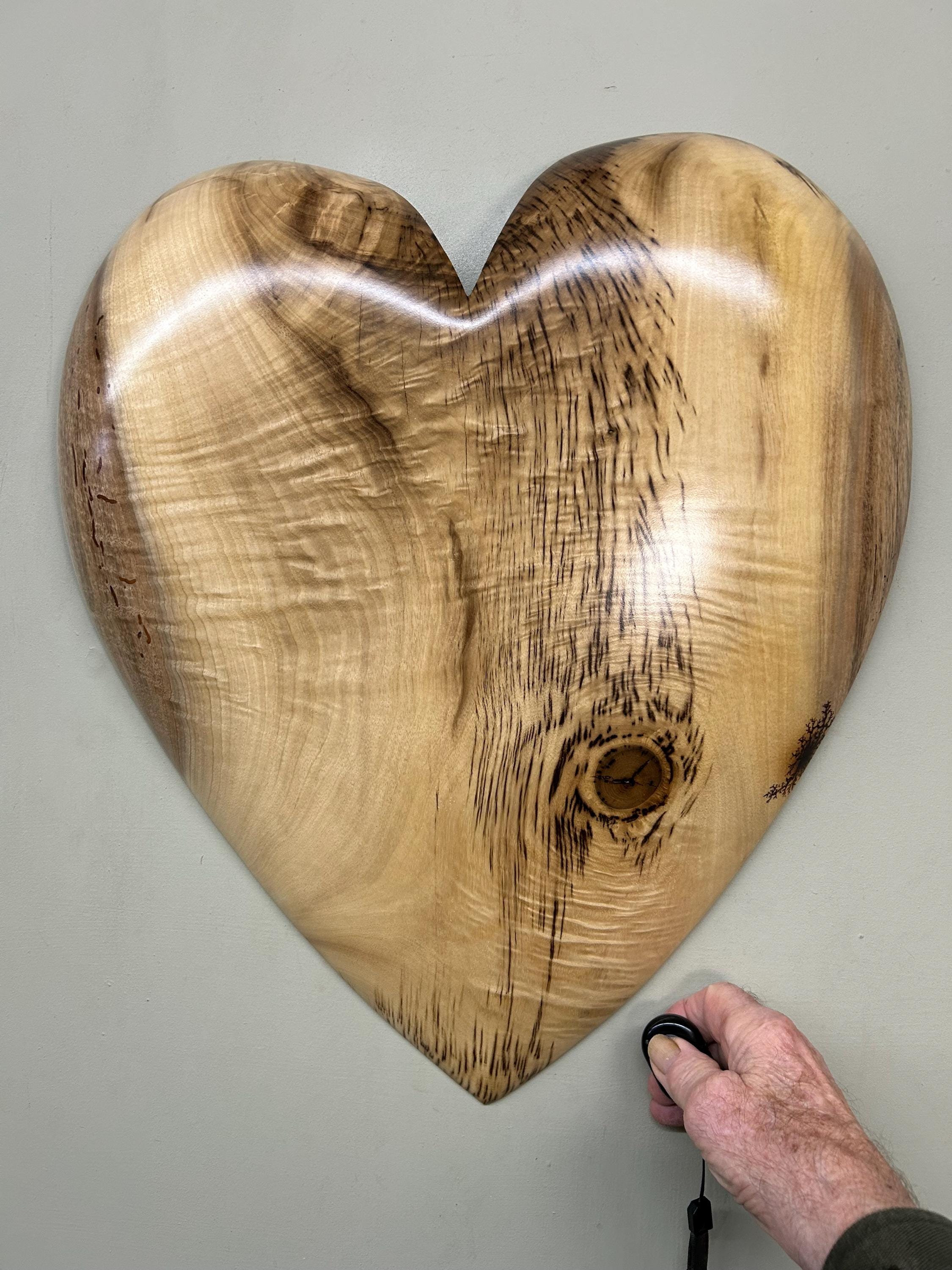This is a wood wall heart art loving anniversary gift present idea. It's the perfect loving gift present for any occasion and fits in almost every room in the house. The second and third photos are of this heart in progress. This one has a blemish that I dolled up on the right edge that you can see in one of the above photos. The last photo is of my gallery, the Tree Wizard Gallery in Port Orford, Oregon. The next to last photo is of me carving in my shop. The other photos are of different angles or close ups.