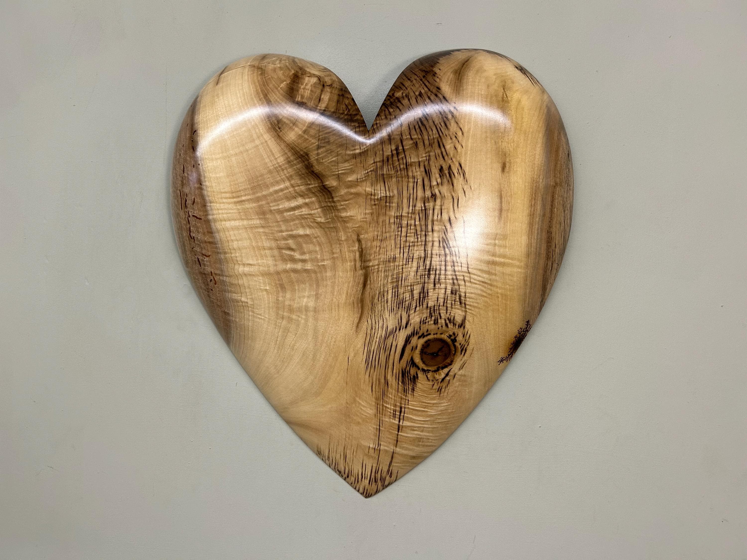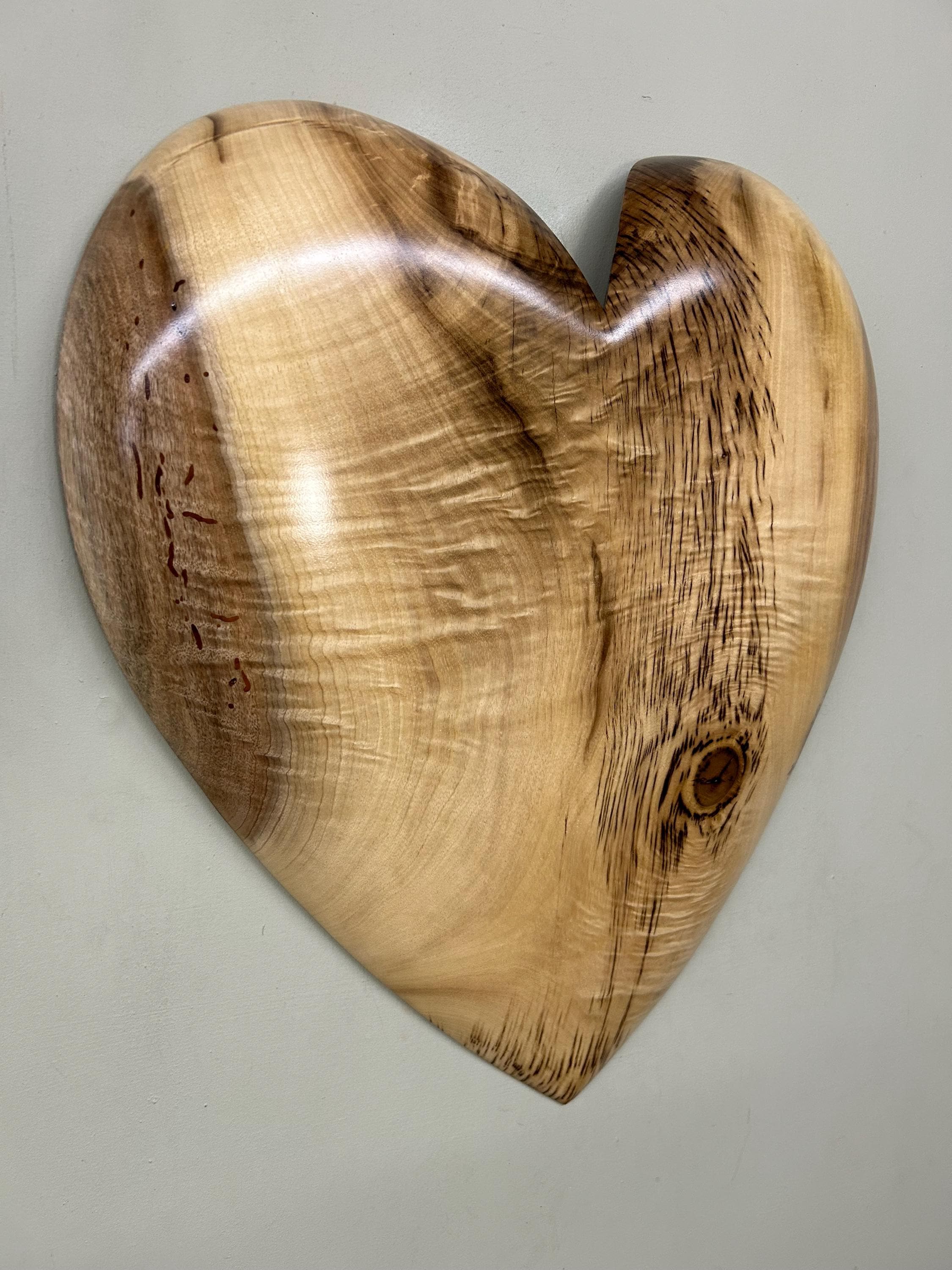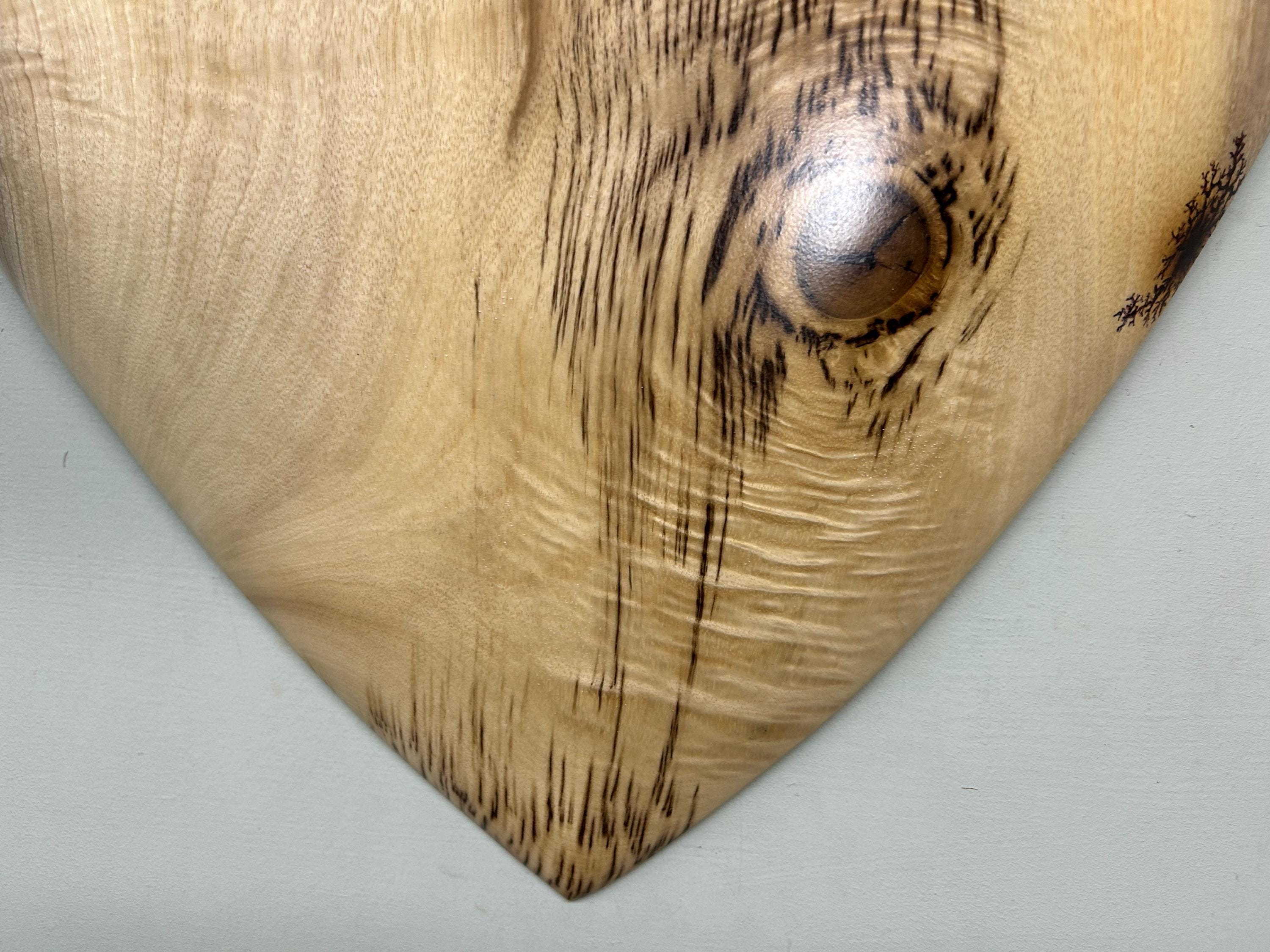 This is a wood wall heart art loving anniversary gift present idea. It's the perfect loving gift present for any occasion and fits in almost every room in the house. The second and third photos are of this heart in progress. This one has a blemish that I dolled up on the right edge that you can see in one of the above photos. The last photo is of my gallery, the Tree Wizard Gallery in Port Orford, Oregon. The next to last photo is of me carving in my shop. The other photos are of different angles or close ups.