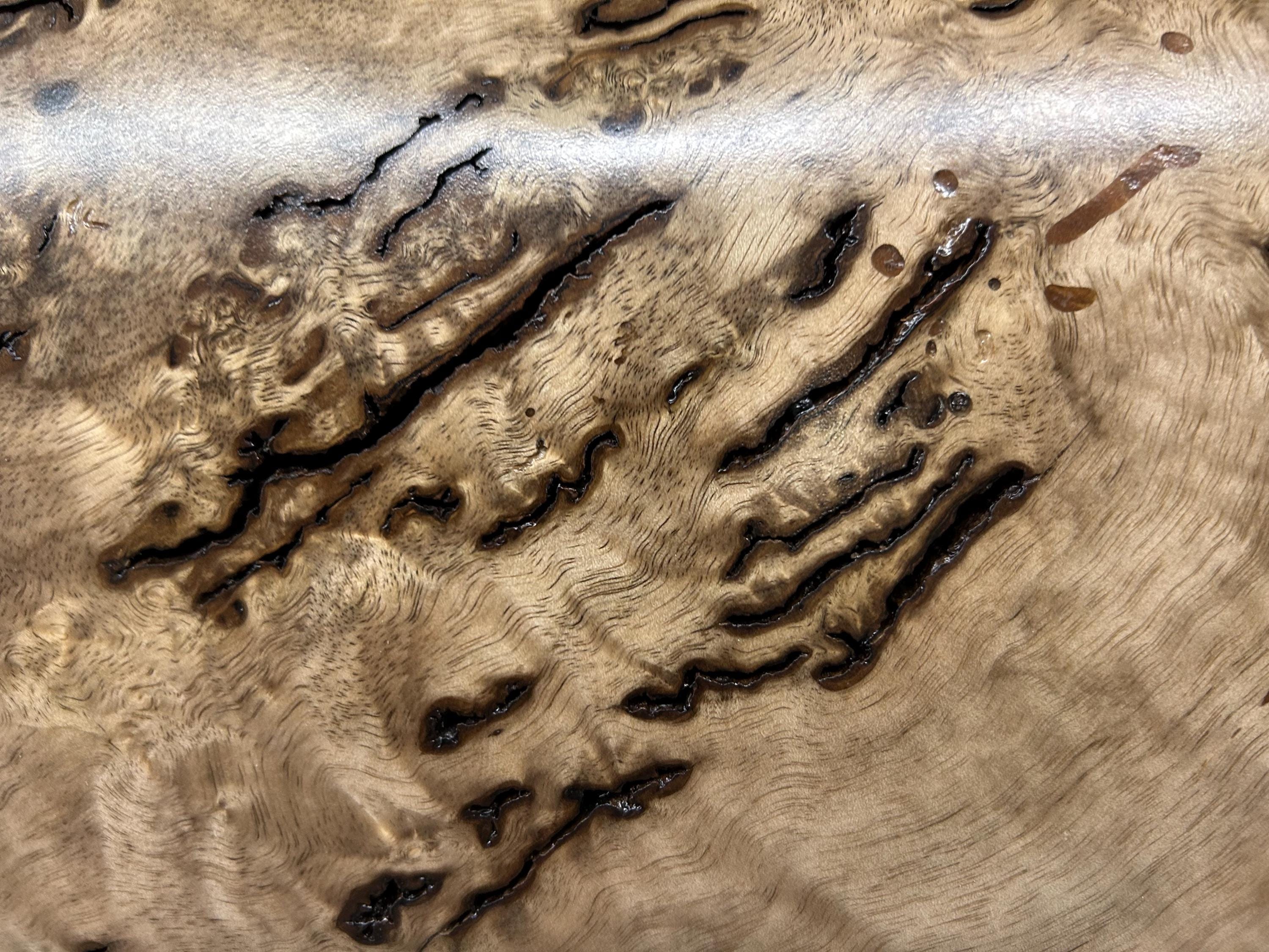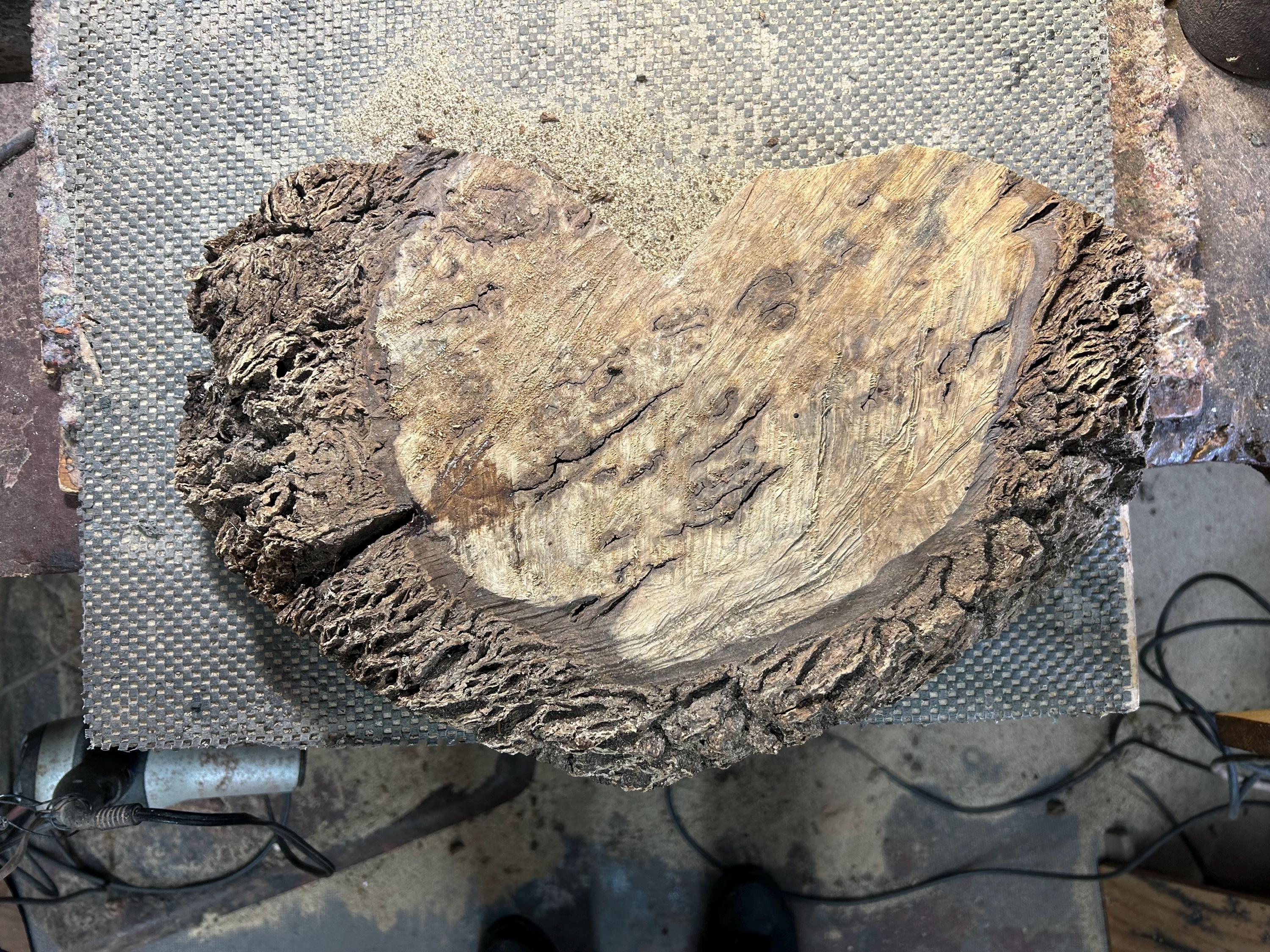 There is some bark area on the upper left lobe and a little on the right edge.