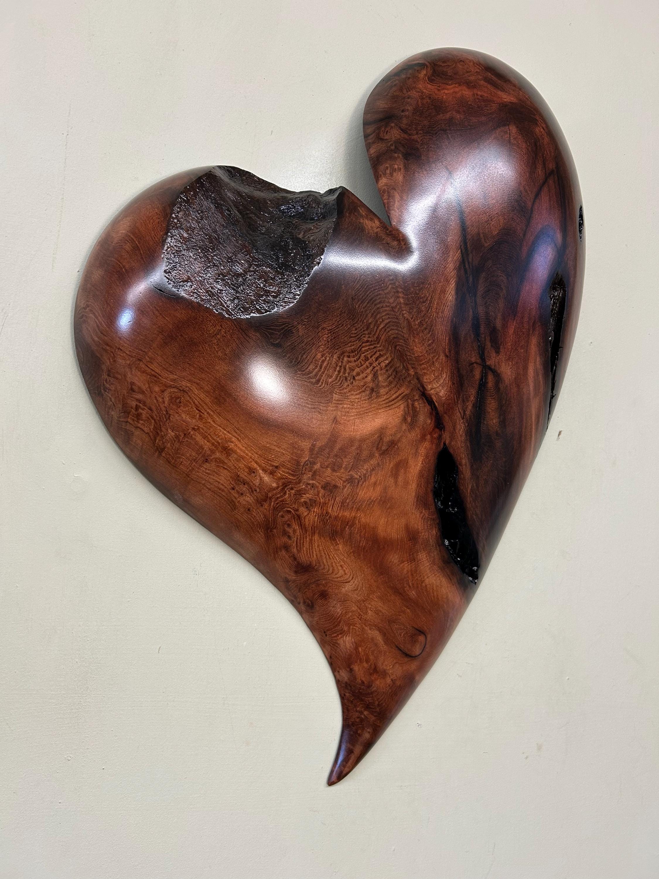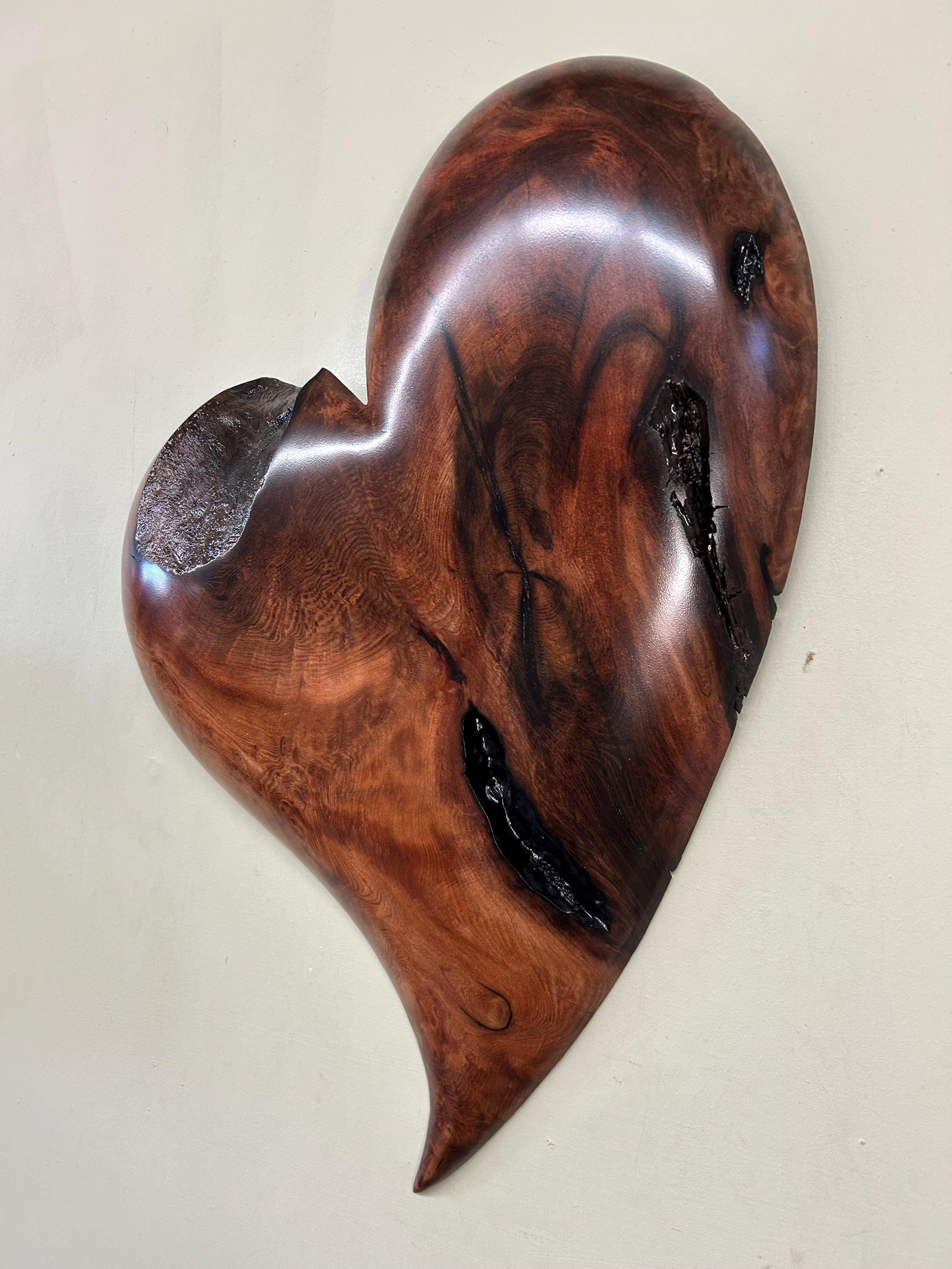This is a best of etsy Redwood 50th Wedding Anniversary gift present heart art wall hanging. It would be a perfect gift present for any occasion!! This piece comes ready to hang on the wall. It measures 24" tall x 16 1/2" wide x 2" thick. There is some of the outside edge of the tree and some cracks on this one. It's carved out of a piece of Old Growth Redwood. It's a pretty rustic and whimsical heart. PRIORITY USPS SHIPPING IS INCLUDED IN THE PRICE OF ALL OF MY CARVINGS!