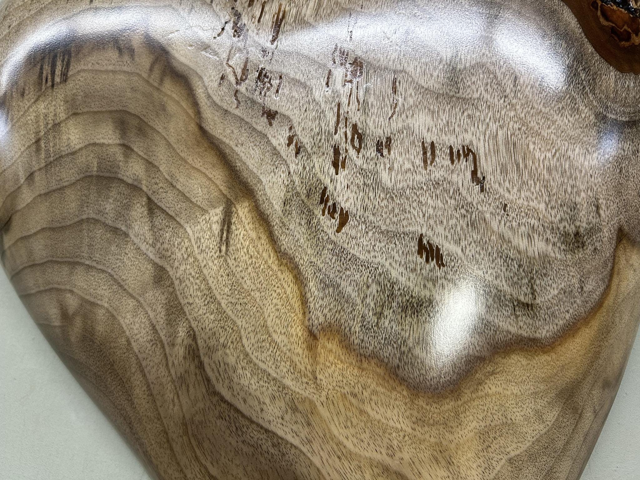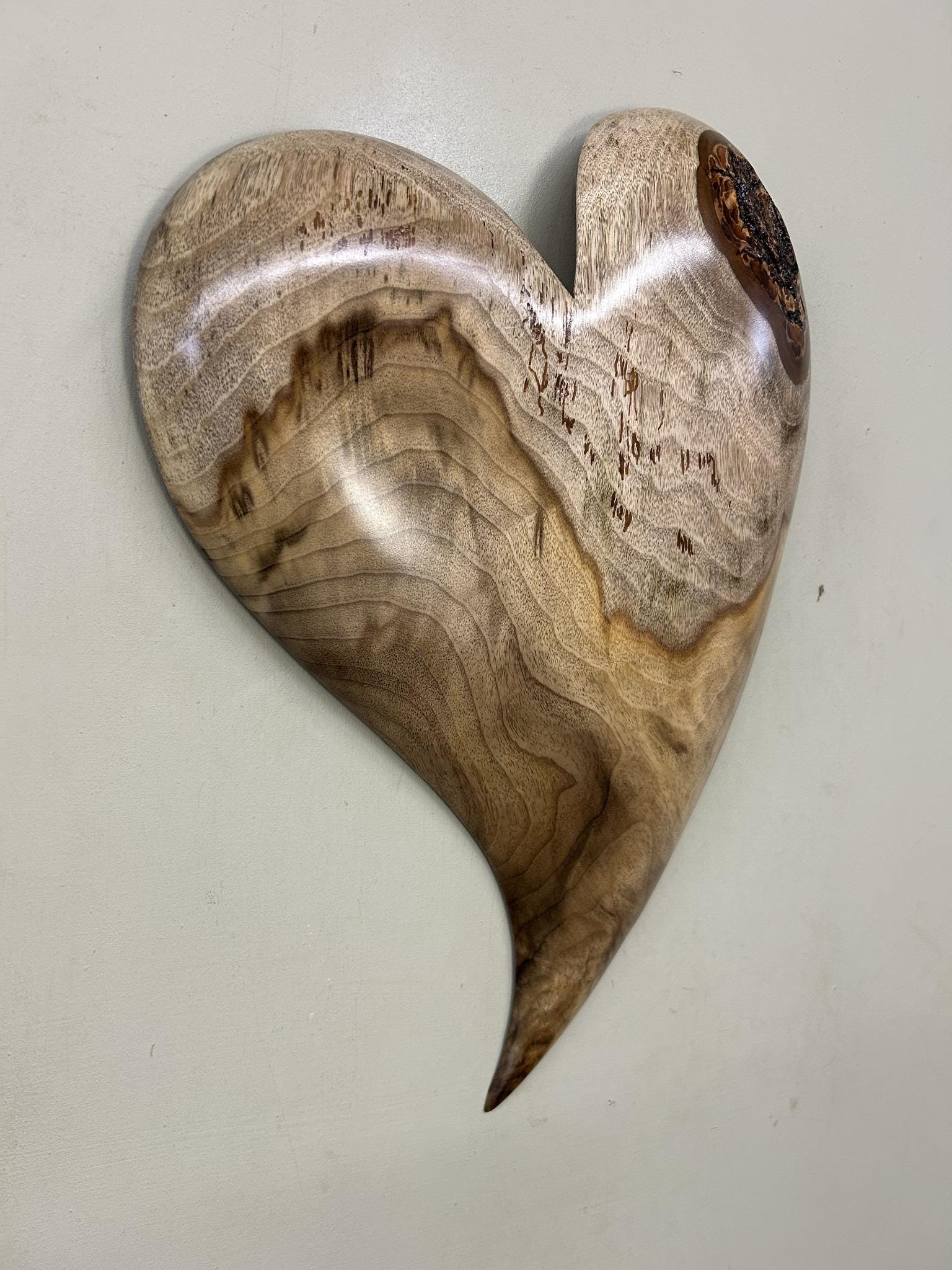 This is a loving wood Valentine's Day gift valentine wall heart present idea. It's the perfect any occasion gift present! This heart has a wonderful grain pattern and great colors. It comes ready to hang on the wall! It has some beetle work that I've treated. The second photo is of the original slab that it was made out of. And there is a short video.
