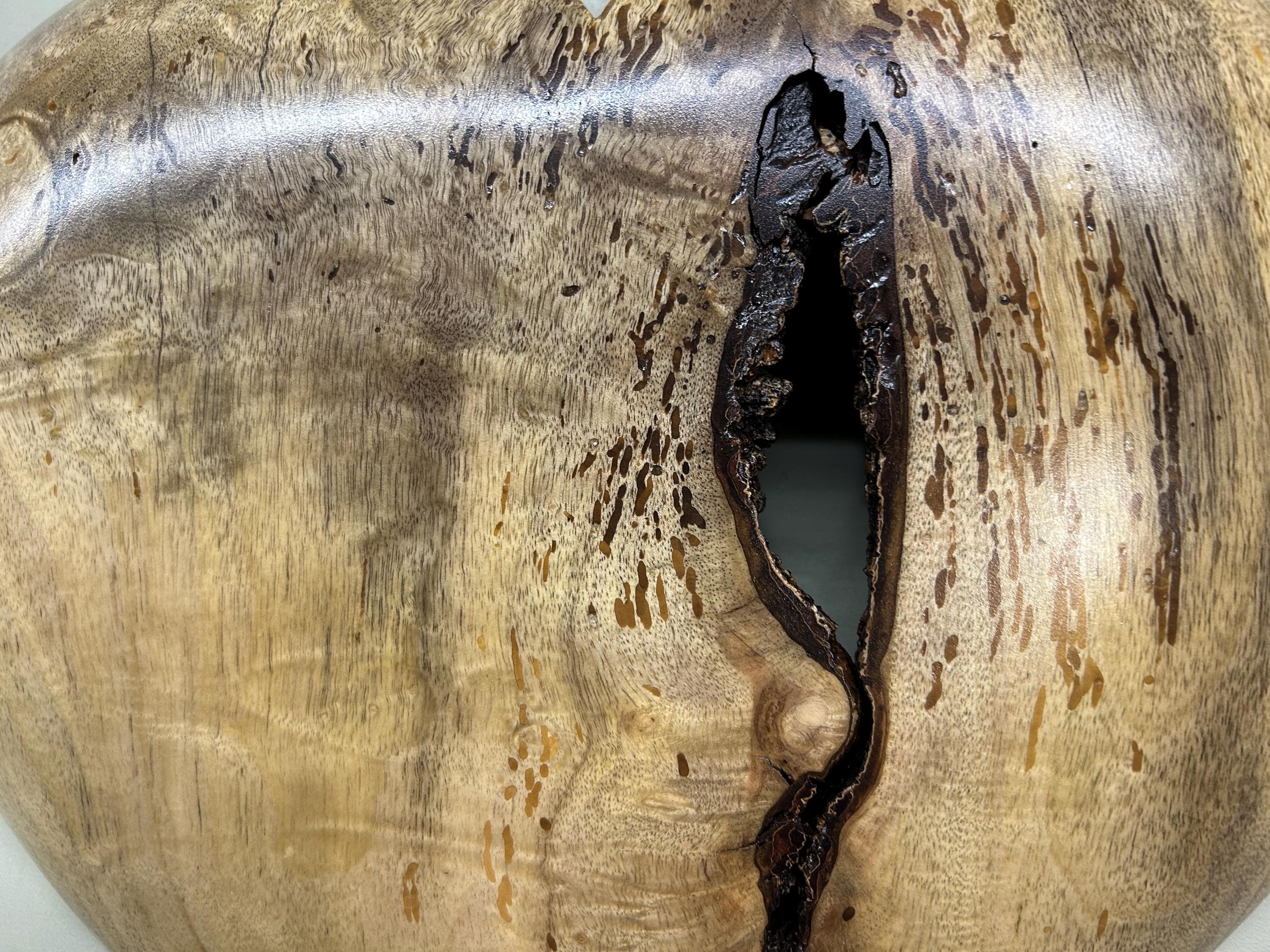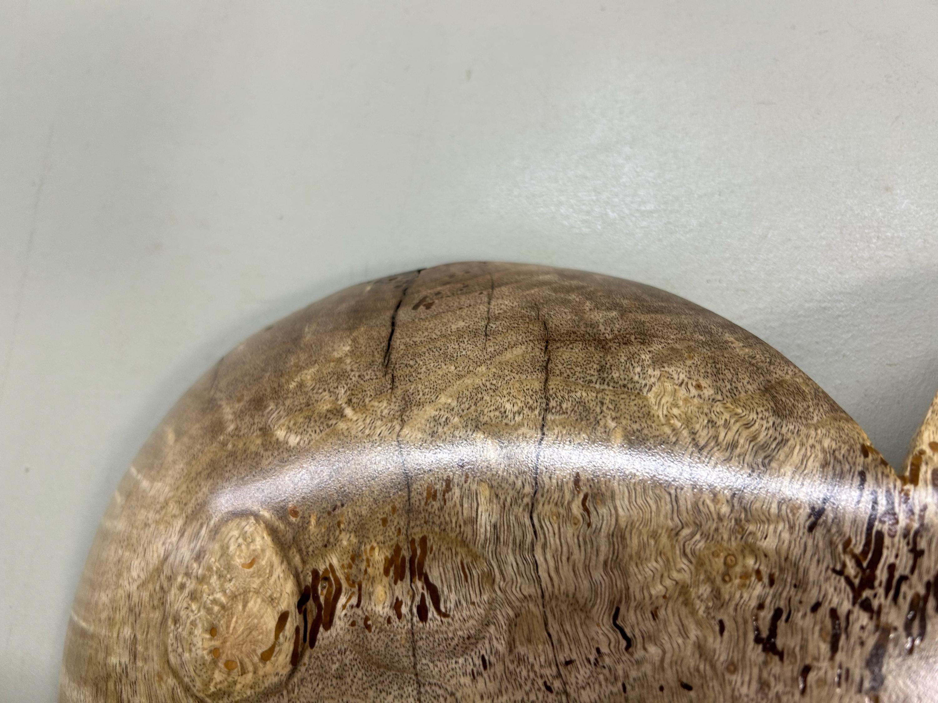 It is carved out of a beautiful piece of Myrtlewood that grows in my area on the Oregon Coast. There are 8 photos of this piece and a video of it. Just click to the right side of the above photograph to see each one. The next to last photo is of me carving in my shop and the last photo is of my Gallery, The Tree Wizard Gallery in Port Orford, Oregon. I attached a metal self leveling hanger for hanging and I signed it Wiz on the back.