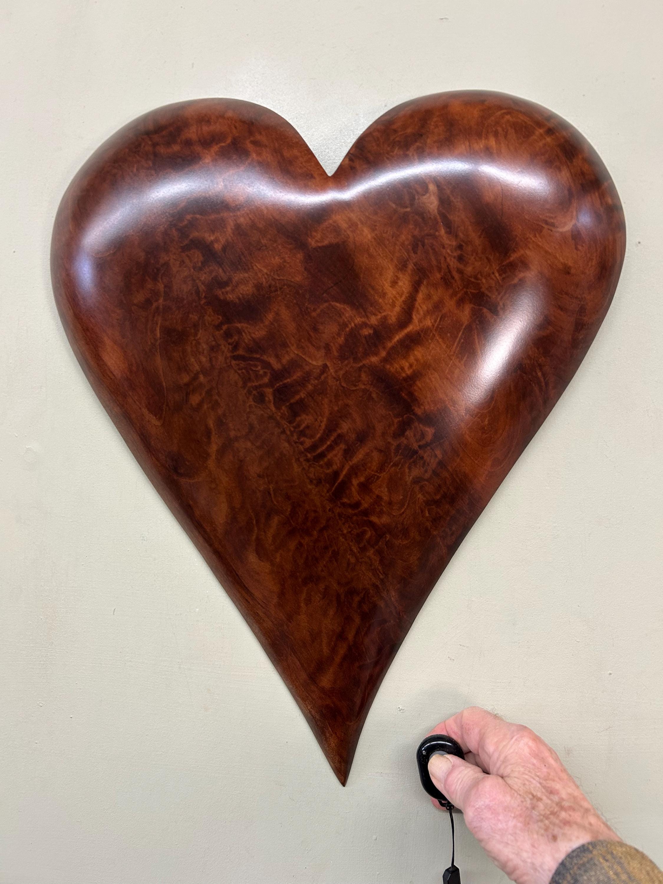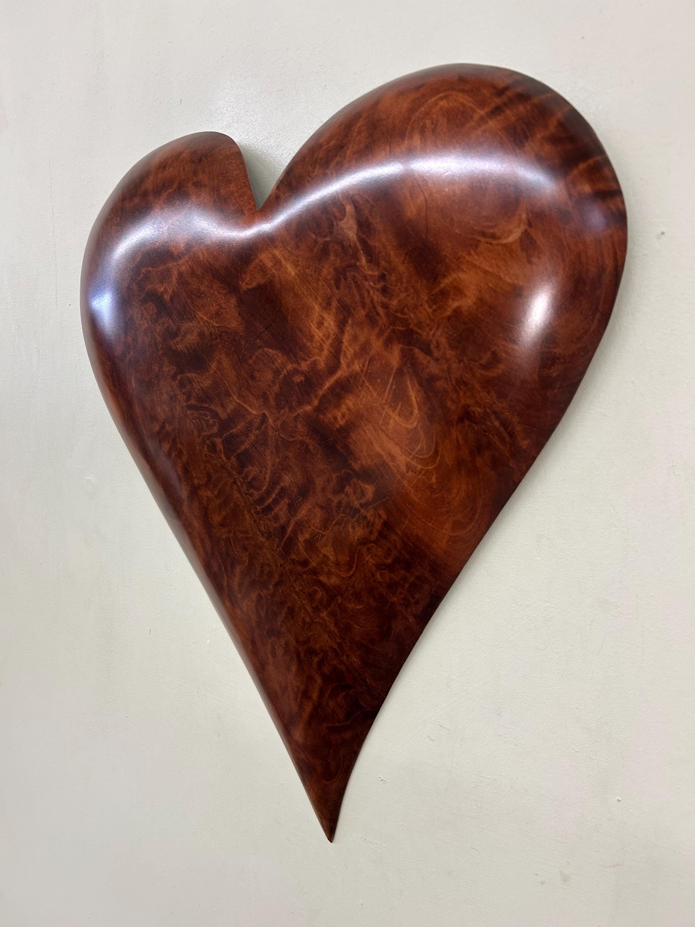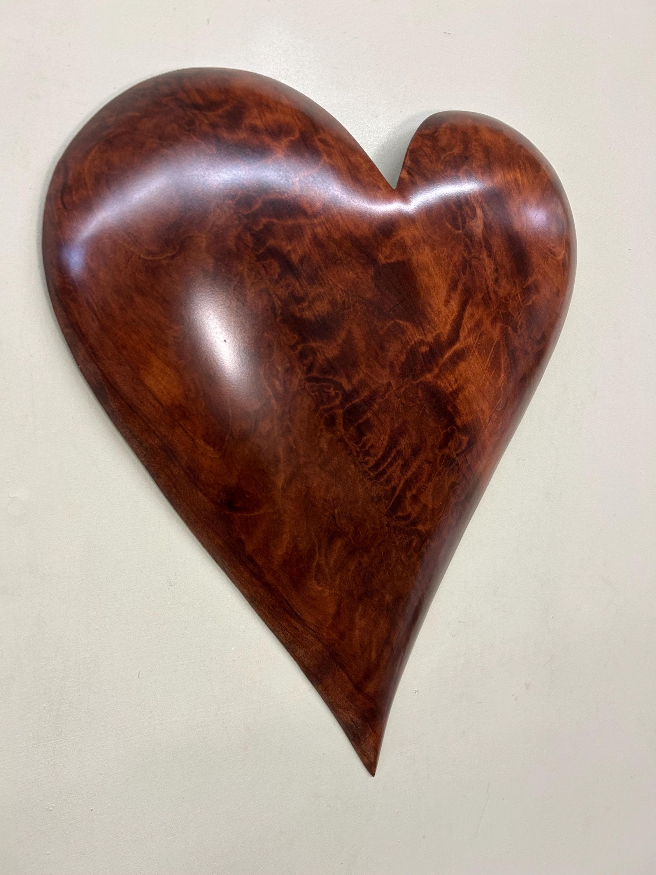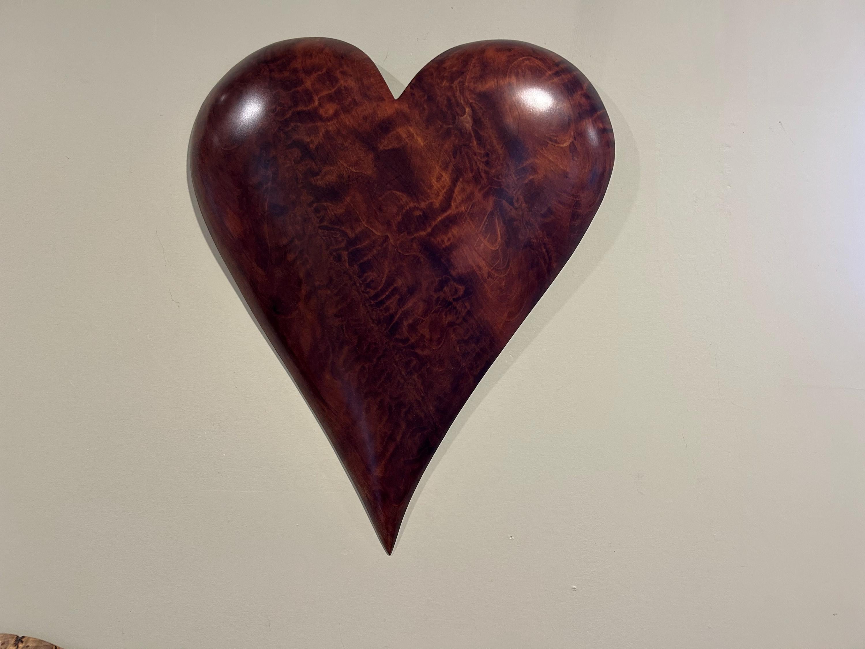 You can see more photos of this heart by clicking on the arrow on the right of the above photo. If you click on the photo it will go to a format that you can enlarge. One more click enlarges the photo. There are 8 total photos of this heart and a short video. The second to last photo is of me carving in my shop and the last photo is of my shop/gallery in Port Orford, Oregon.