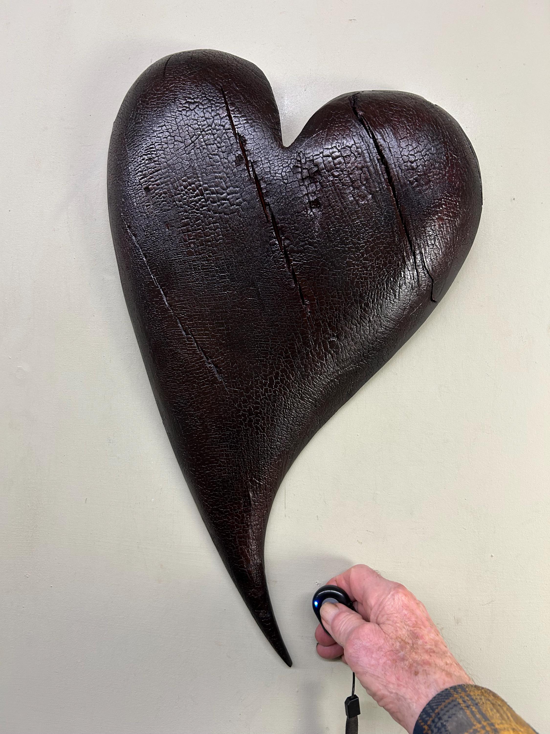 This is a Wedding loving wall heart gift present carved out of spalted, burned Alder. It would make a great any occasion gift. Burning it gives it a really different feeling. I also dyed it red but the red isn't dominant. Alder grows in my neck of the woods, Southwest Oregon Coast. I love the whimsical feeling of this design.