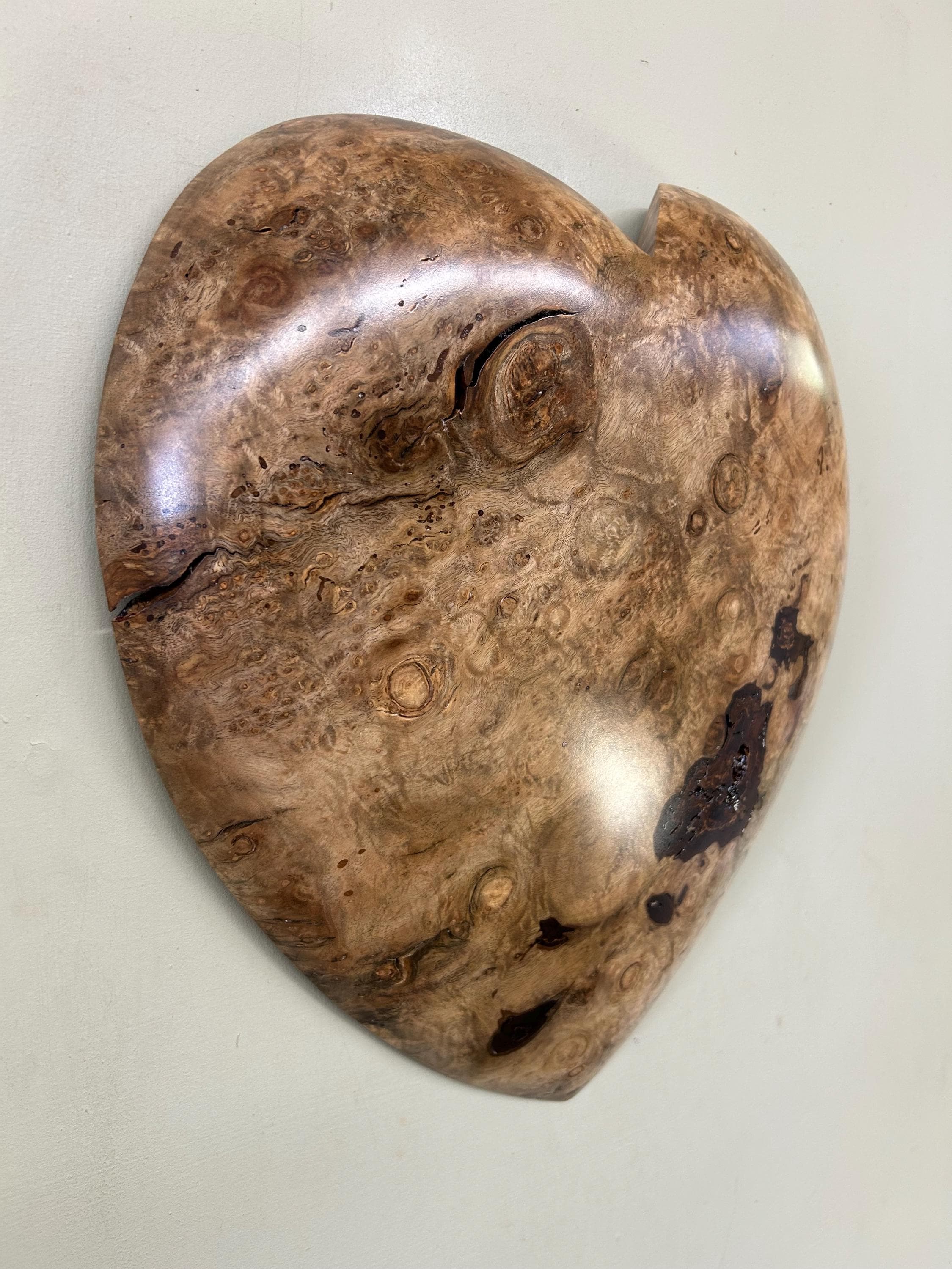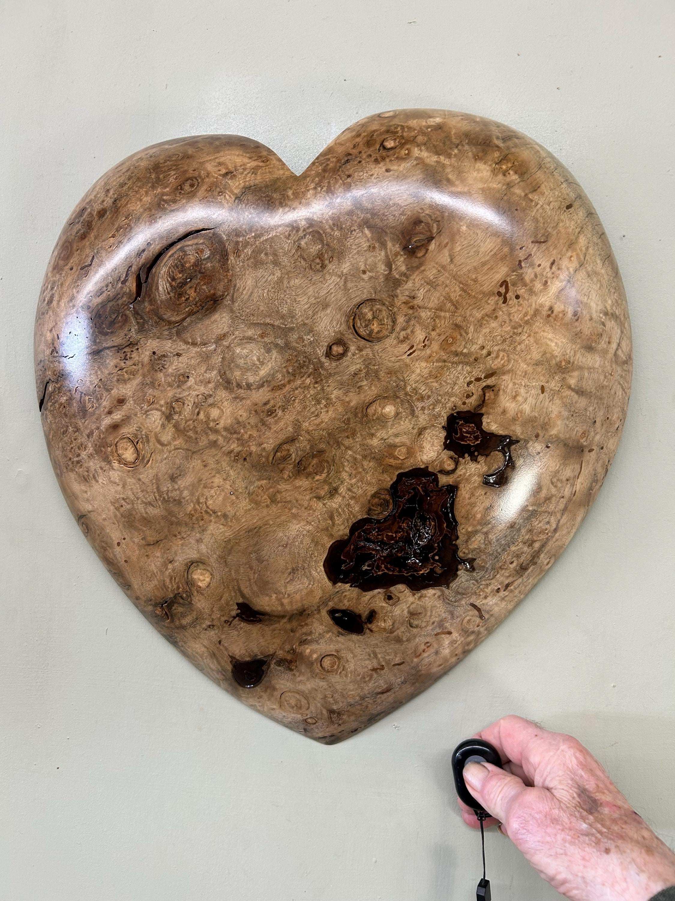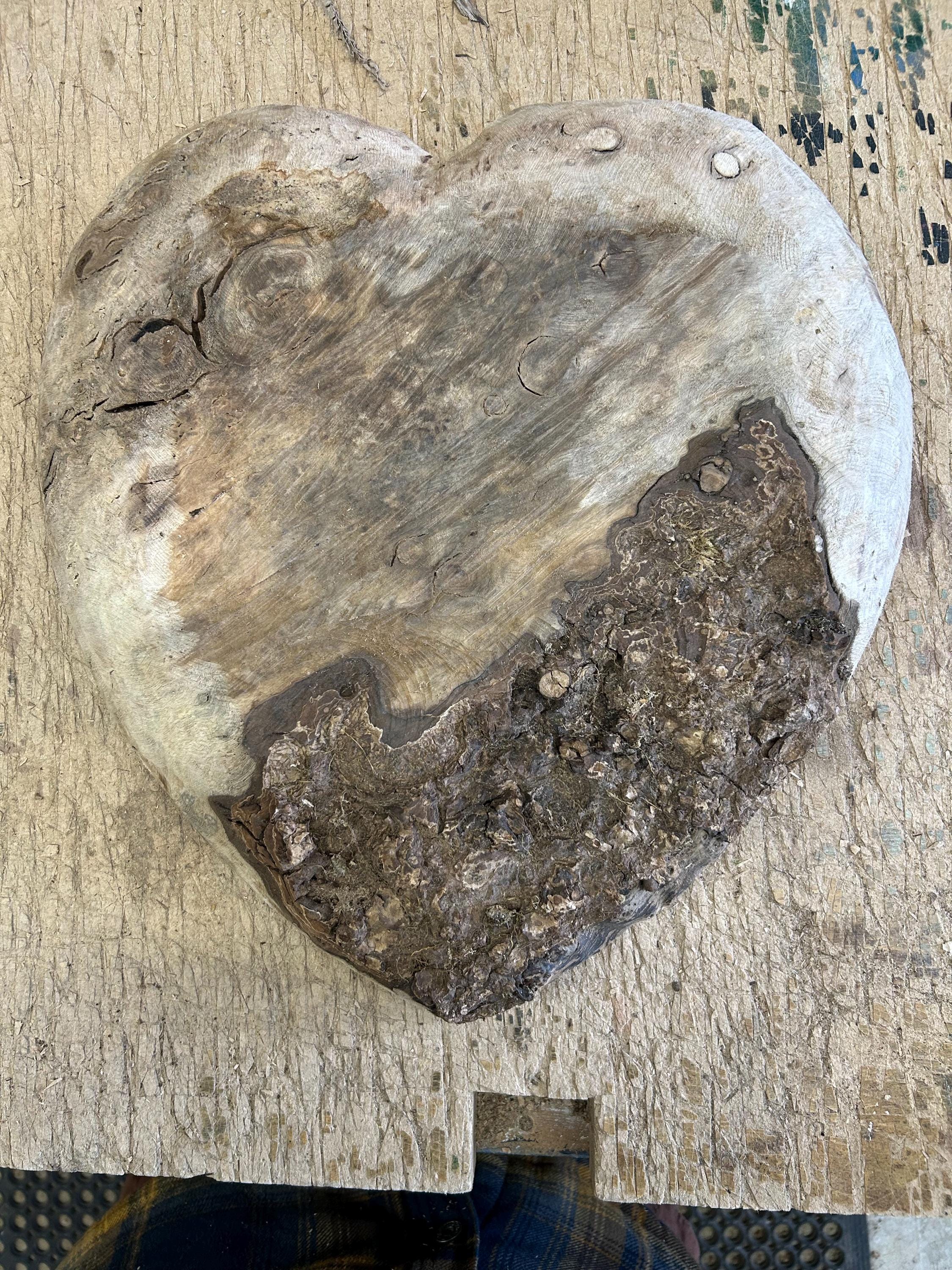 This is a wood wall heart art loving anniversary gift present idea. It's the perfect loving gift present for any occasion and fits in almost every room in the house. The 2nd, 3rd, and 4th photos are of this heart in progress. The last photo is of my gallery, the Tree Wizard Gallery in Port Orford, Oregon. The next to last photo is of me carving in my shop. The other photos are of different angles or close ups.