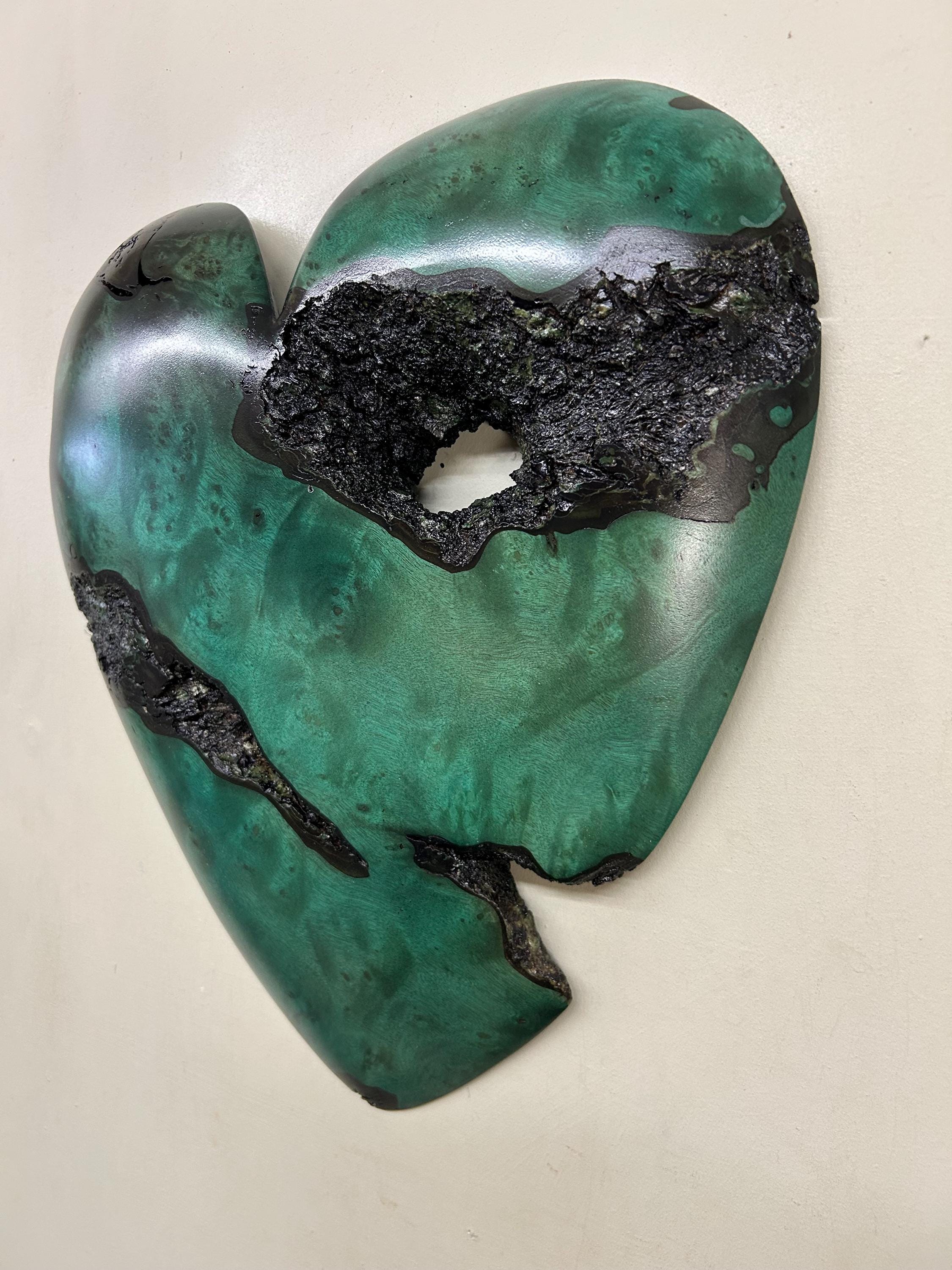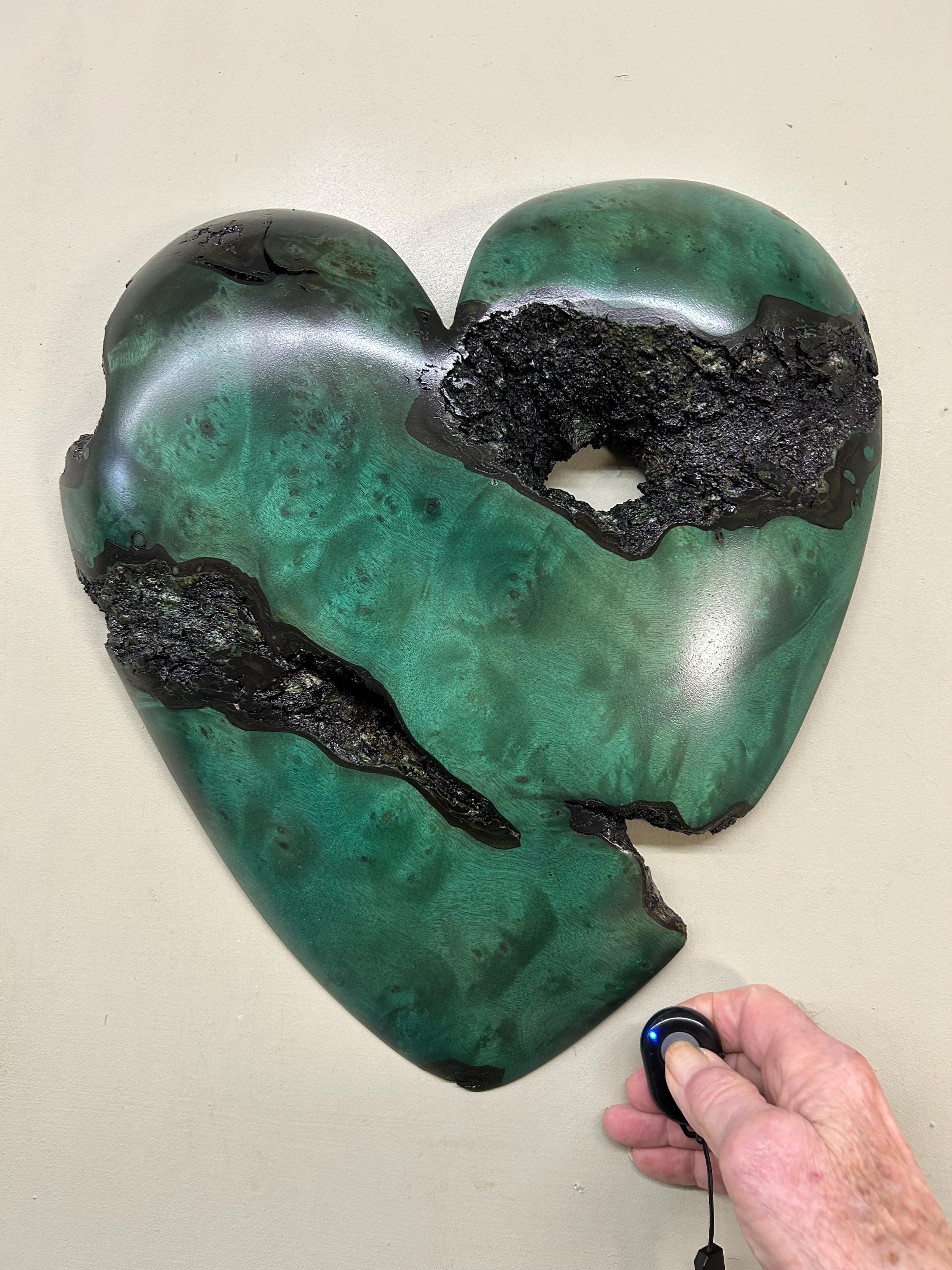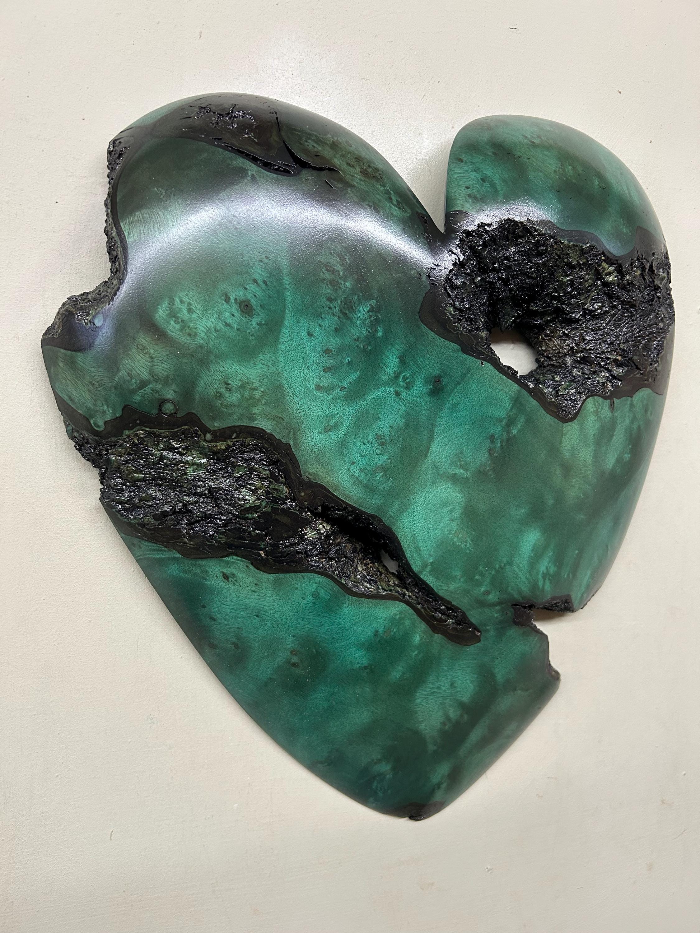 This is a loving Mother's Day gift, dyed green, wall hanging heart present idea. It's the perfect any occasion gift present! This heart has a wonderful grain pattern and I love the natural edge. There's a cool natural hole in the upper right lobe. It comes ready to hang on the wall!