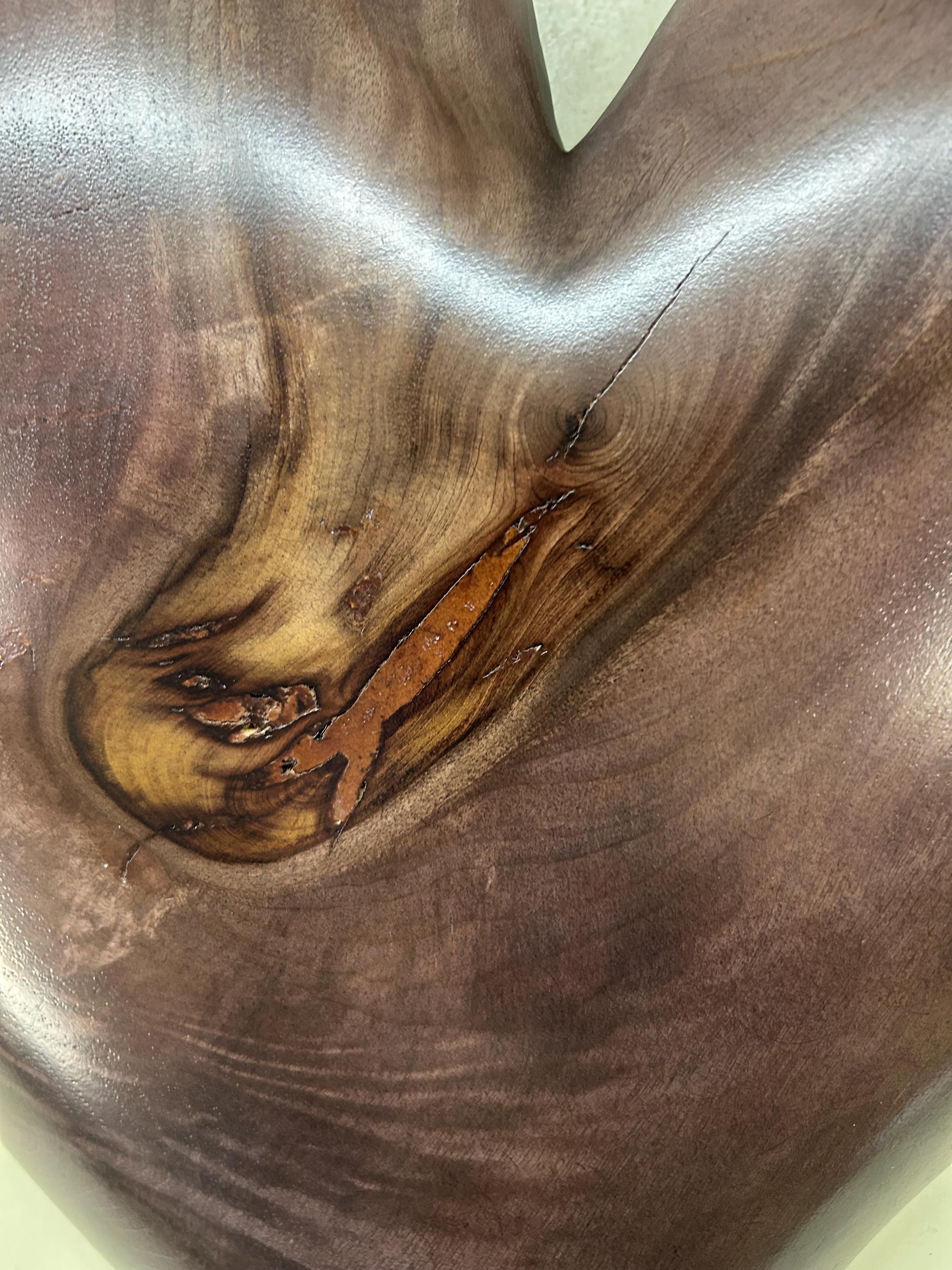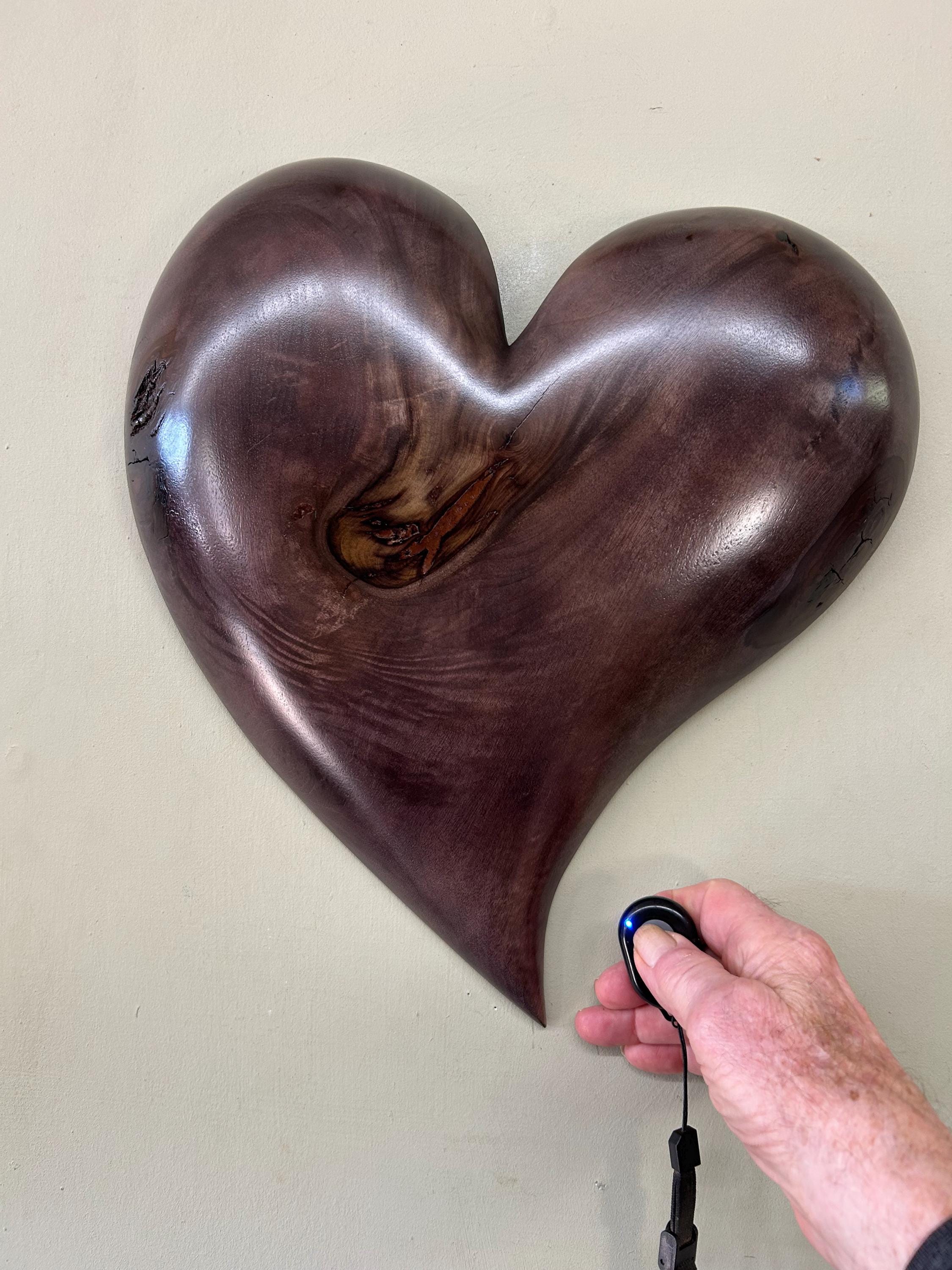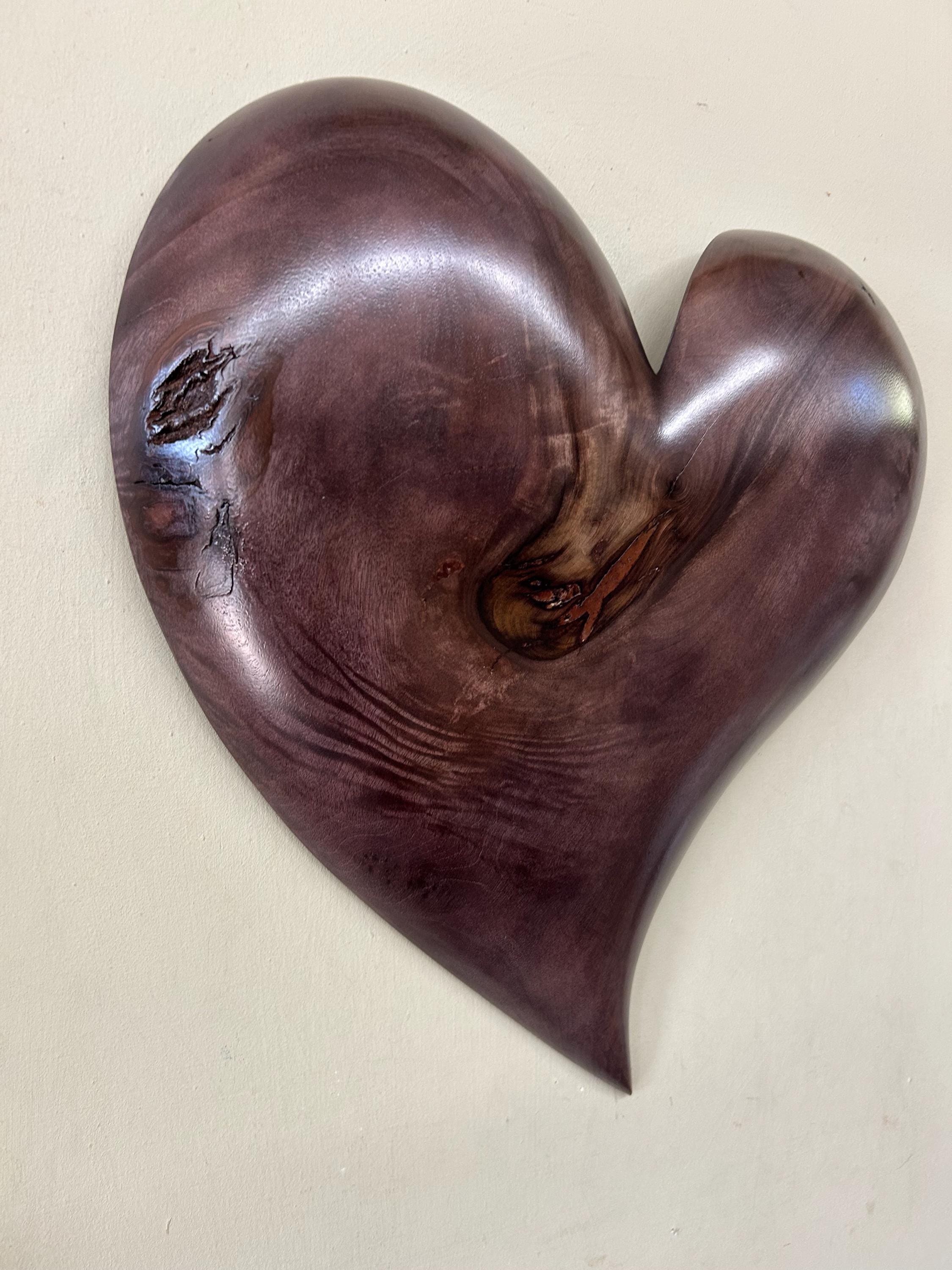 This Myrtlewood heart wall hanging would make a wonderful Mother's Day gift present. It's a piece of Myrtlewood burl that I dyed purple. It would make an amazing any occasion loving gift!! It's ready to hang on the wall with a metal self leveling hanger. There are several in progress photos of it and there's a short video of it.