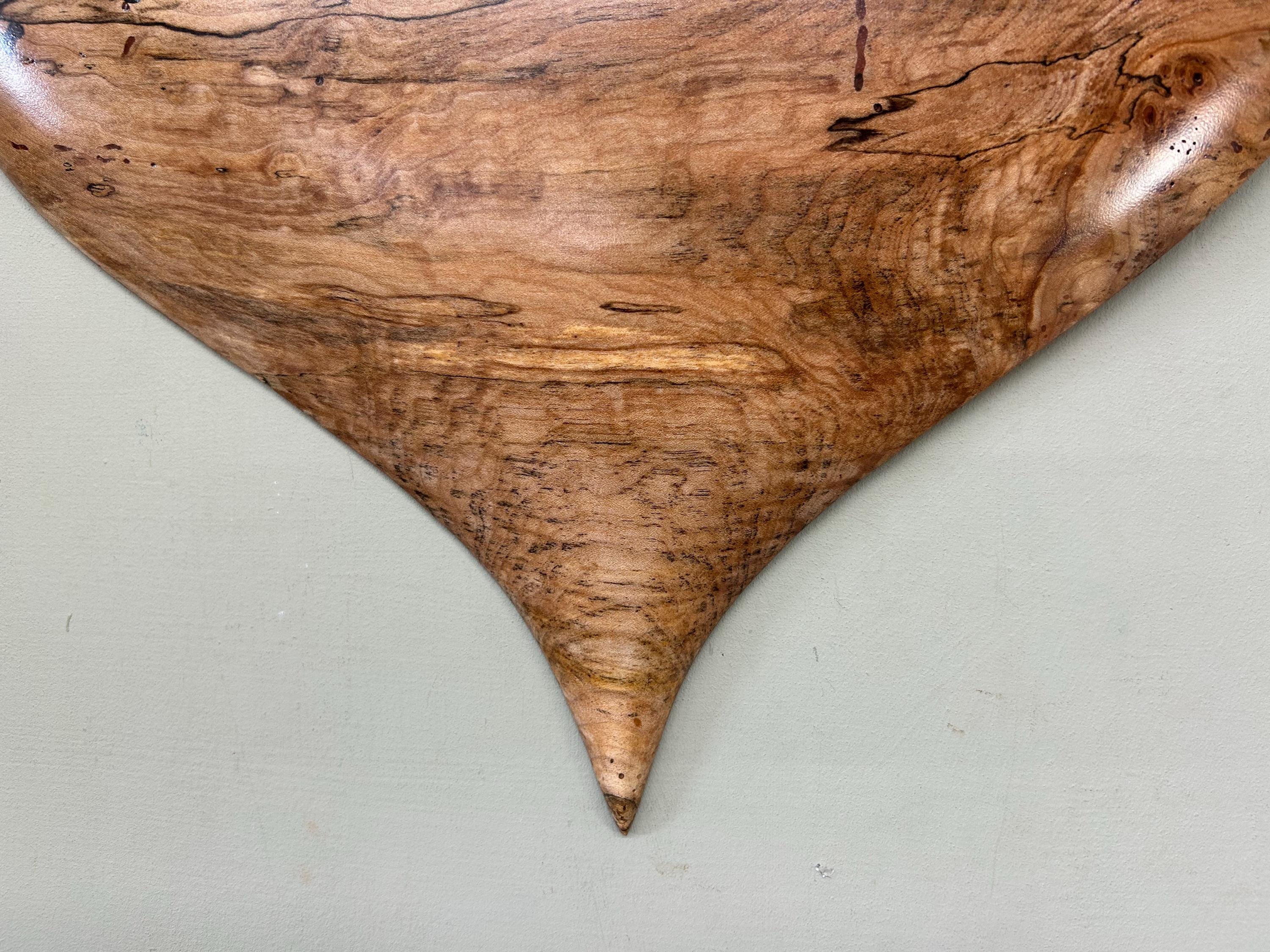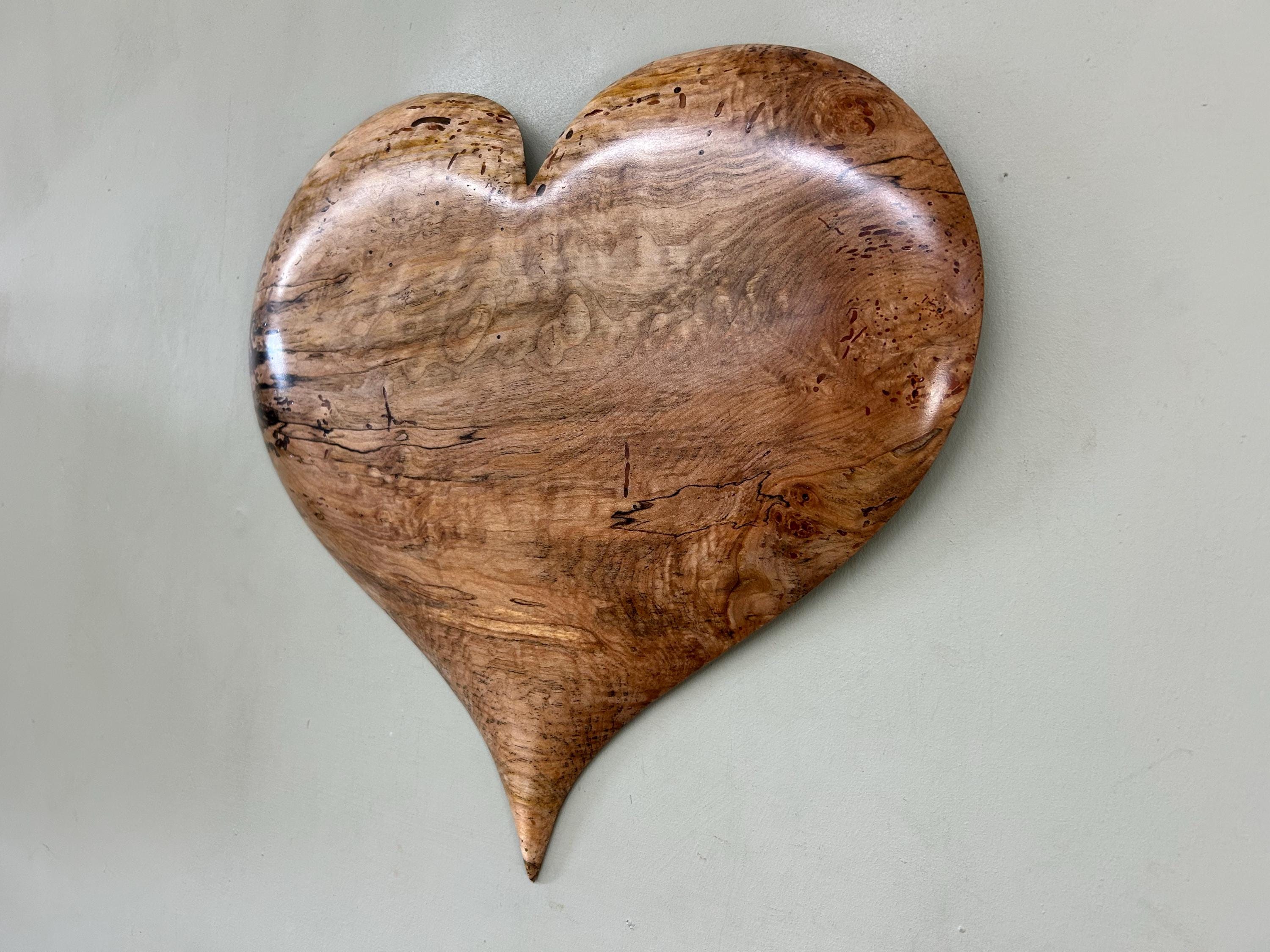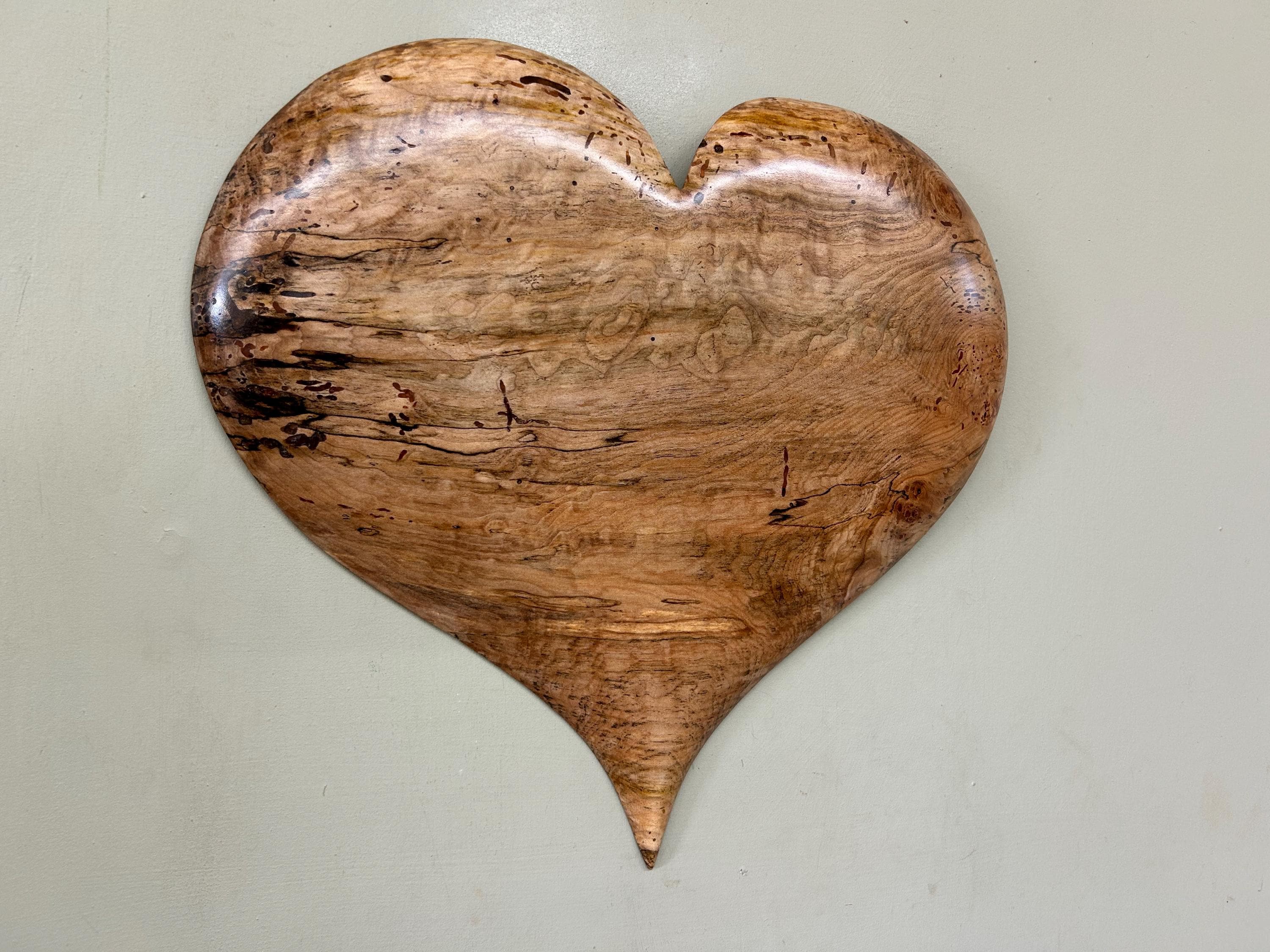 This is a 5th wood Wedding Anniversary present gift idea heart carved out of Maple. It would make a great any occasion gift. This piece has a lot of signs of beetles working on it. I treated it in the microwave to eliminate any critters in the wood. This is the thinnest thickness that I make hearts our of. Very interesting natural colors and grain pattern.