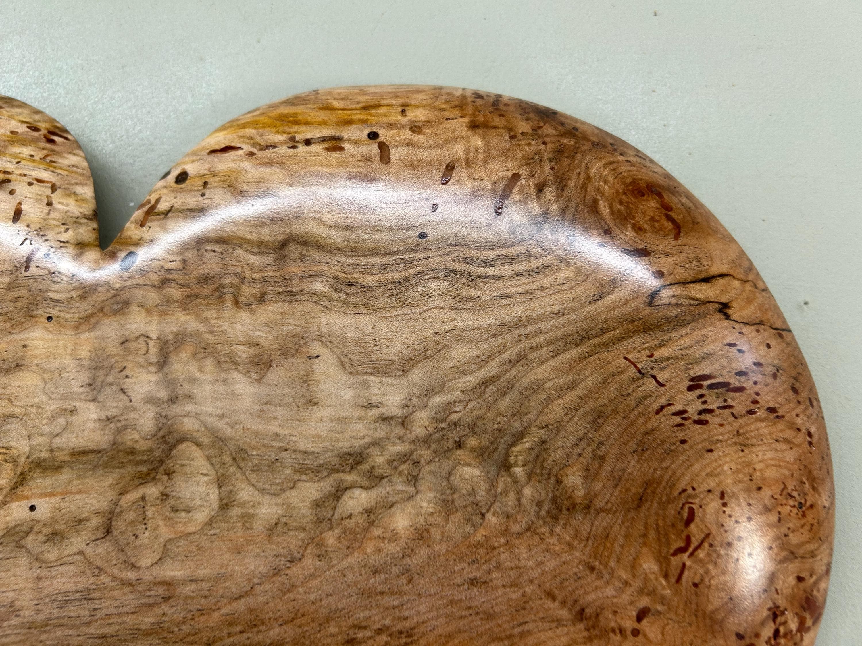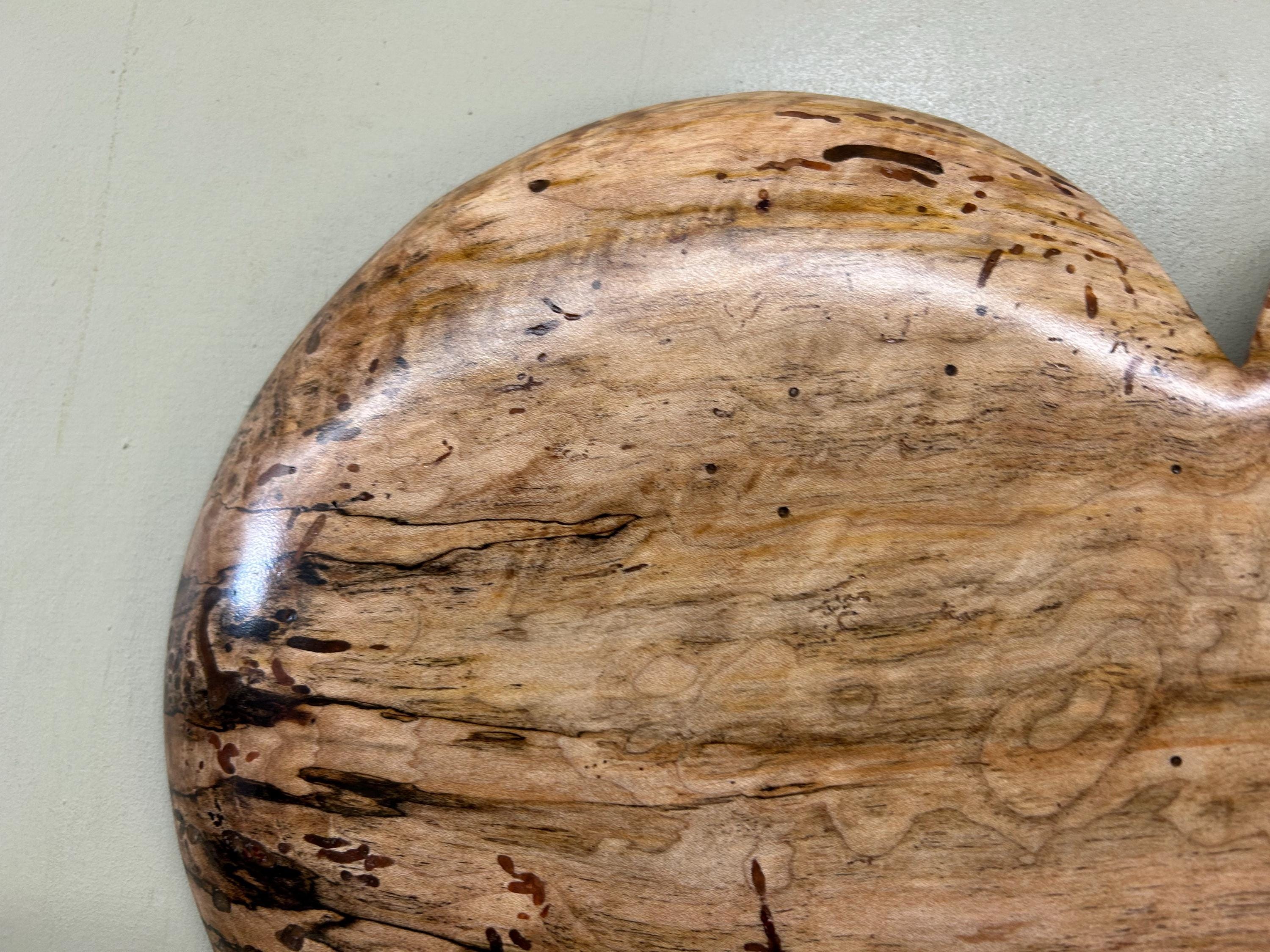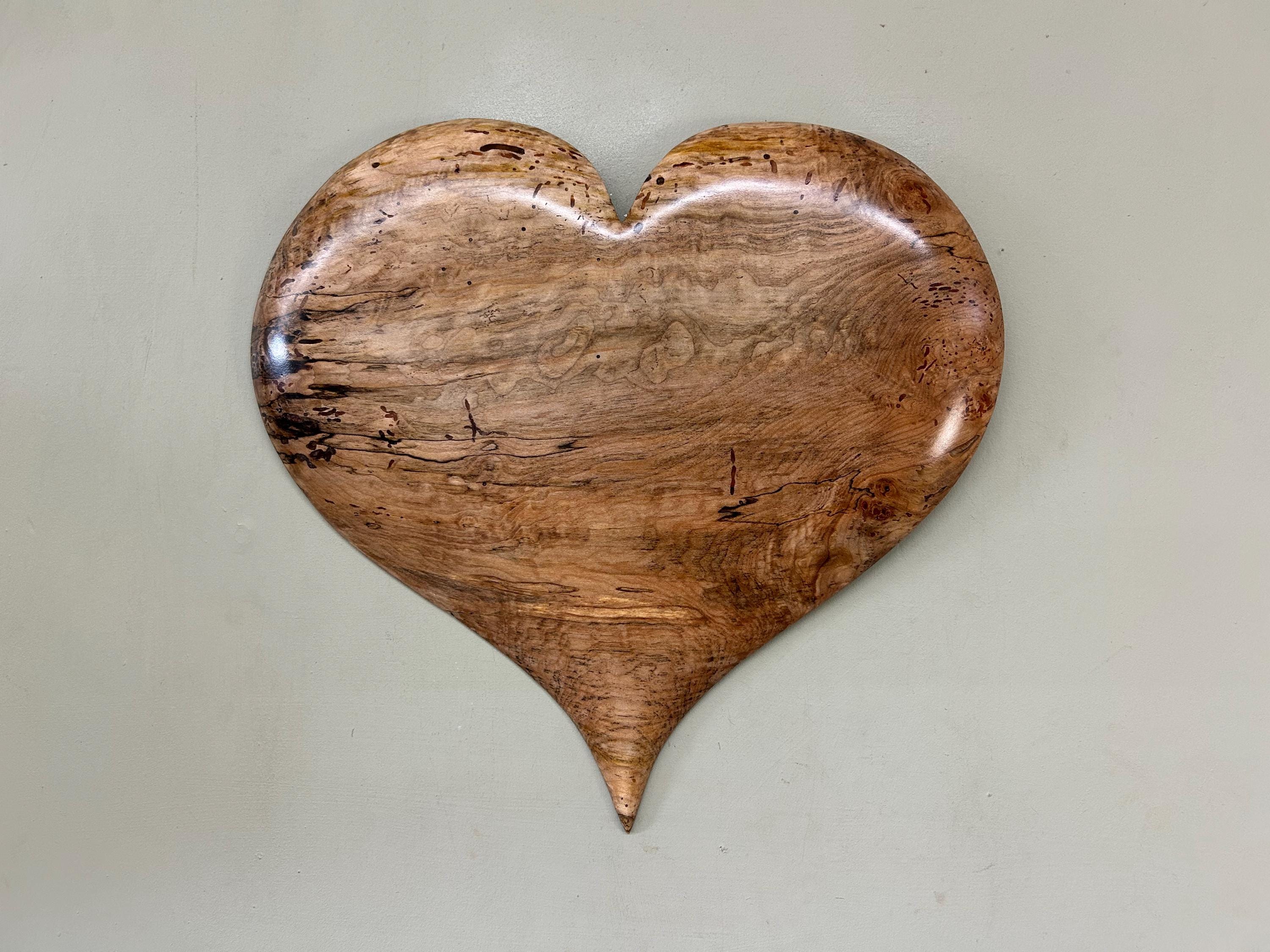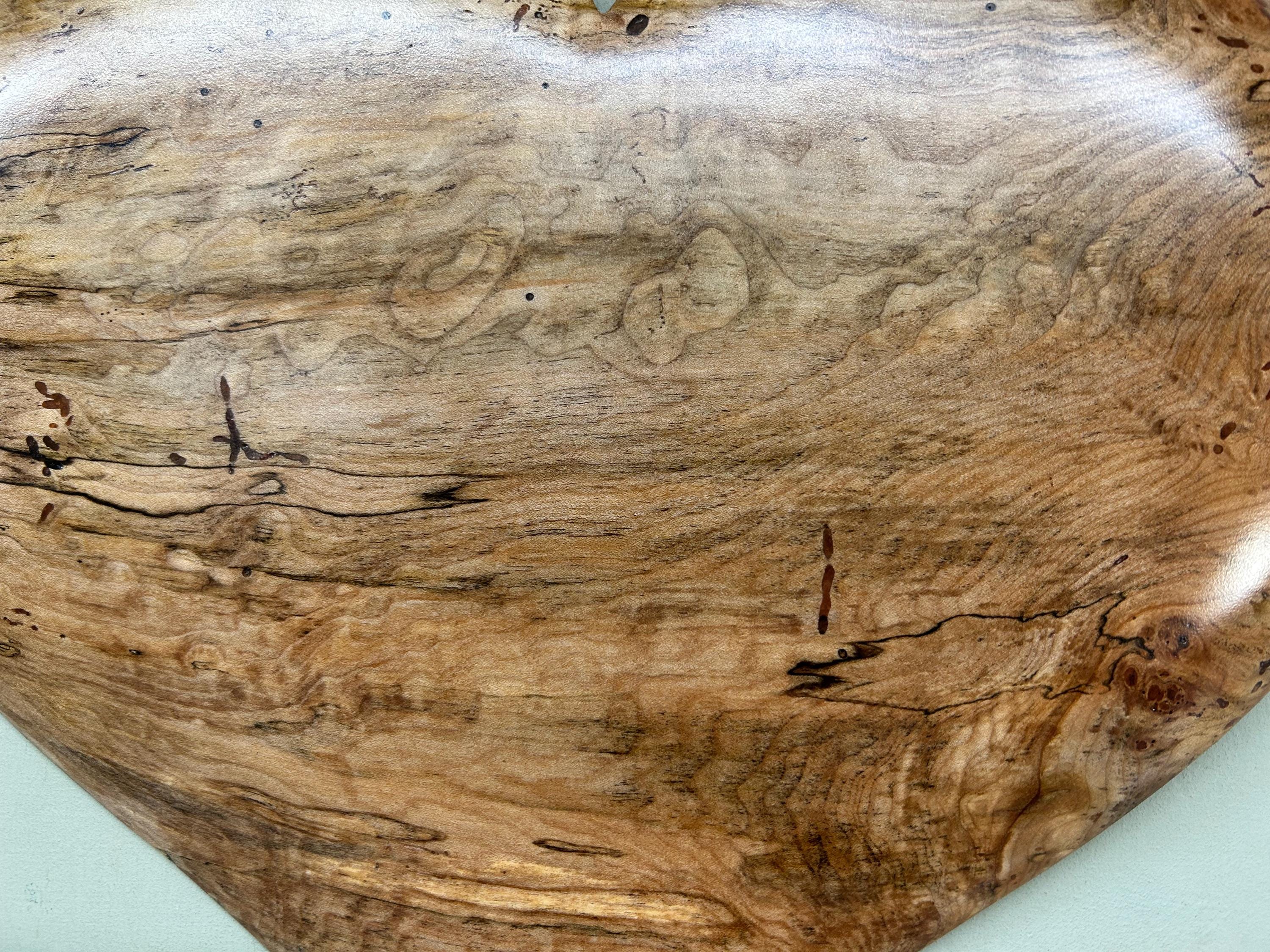 This is a 5th wood Wedding Anniversary present gift idea heart carved out of Maple. It would make a great any occasion gift. This piece has a lot of signs of beetles working on it. I treated it in the microwave to eliminate any critters in the wood. This is the thinnest thickness that I make hearts our of. Very interesting natural colors and grain pattern.