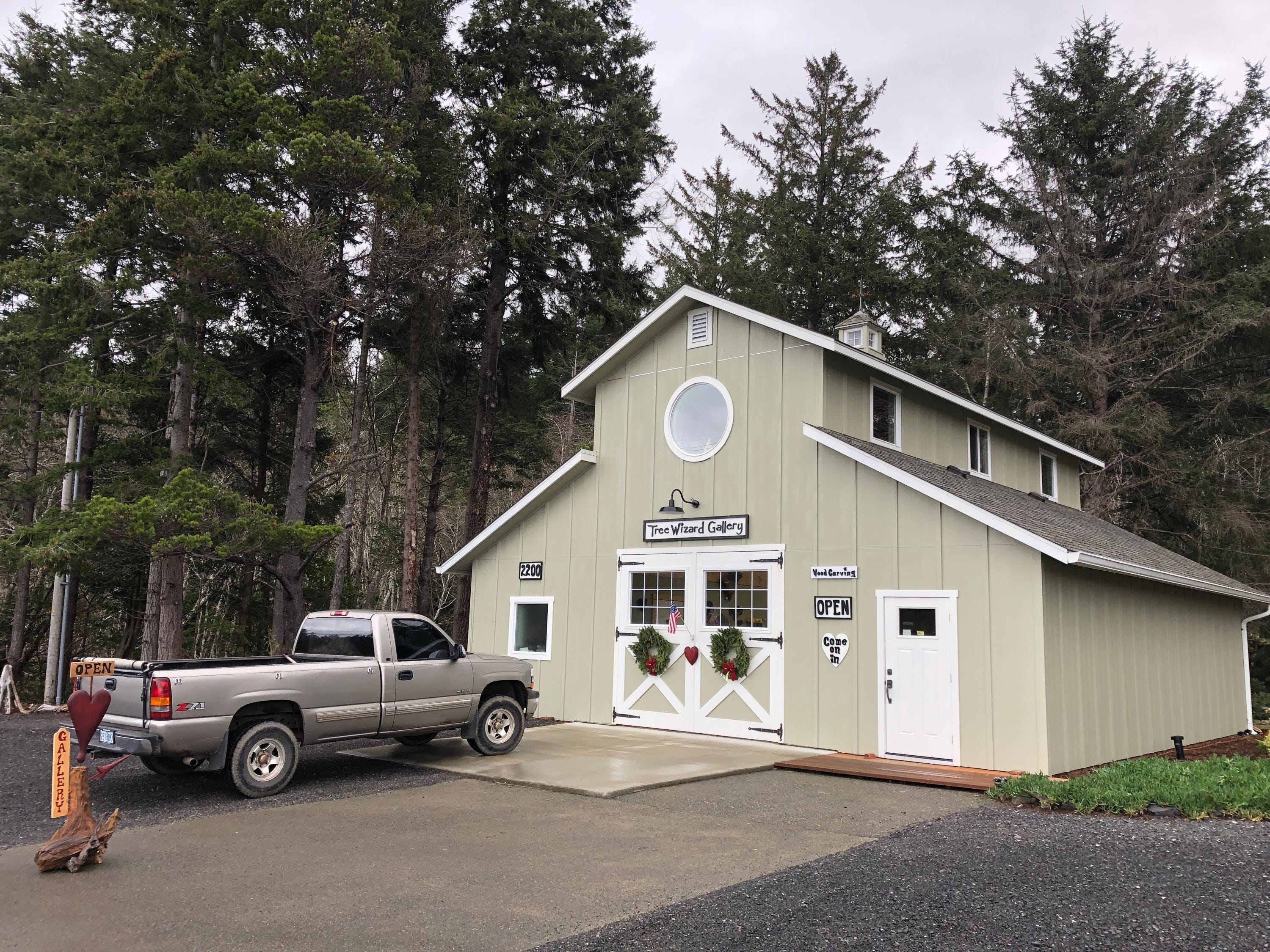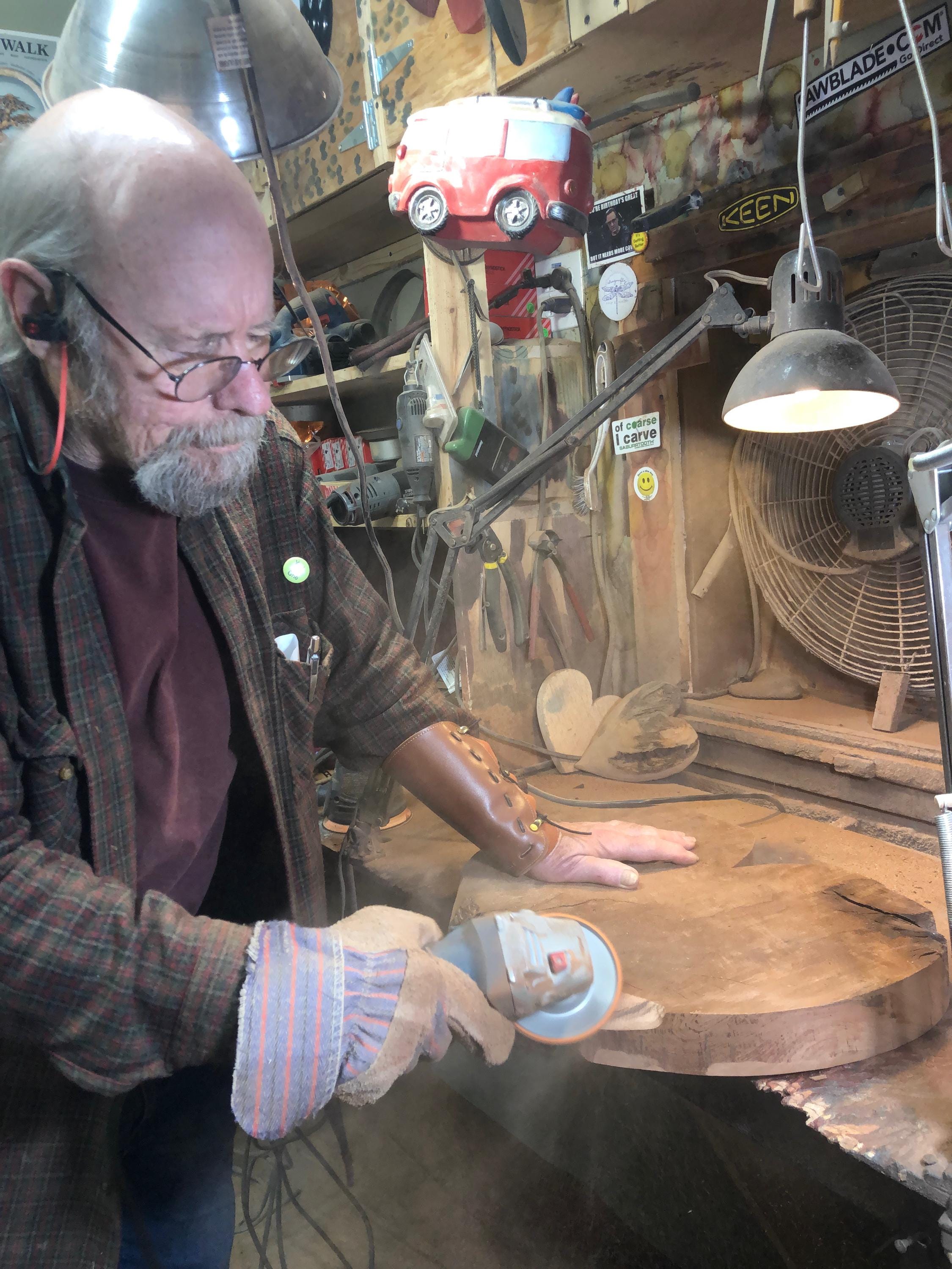 Click on the picture above to see all of the photos of this piece. The second photo is an in progress photo and there's a short video of this heart. The second to last photo is of me carving in my shop. The last photo is of my shop/gallery, The Tree Wizard Gallery in Port Orford, Oregon.