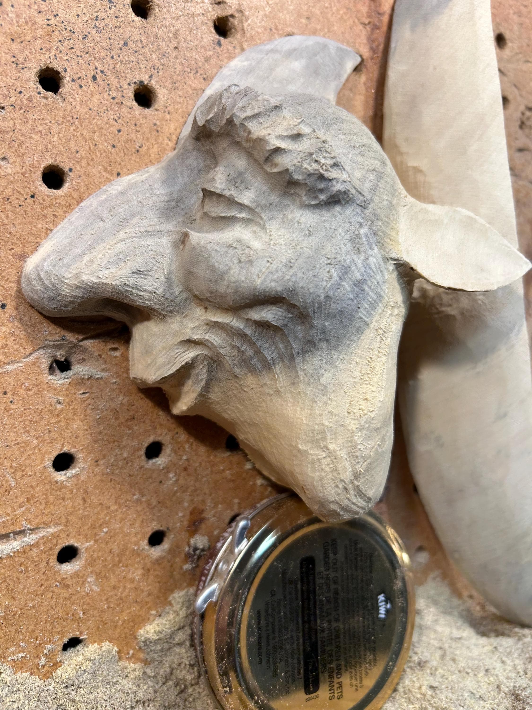 I wasn't sure if I'd be carving anymore of these guys. I took a long enough break that I started getting an itch to do another one. I'm 75 now and have been carving full time since 1978. I'm a bit sad to realize that I won't be able to go on forever. I enjoy every single day in my shop, my favorite place to be.