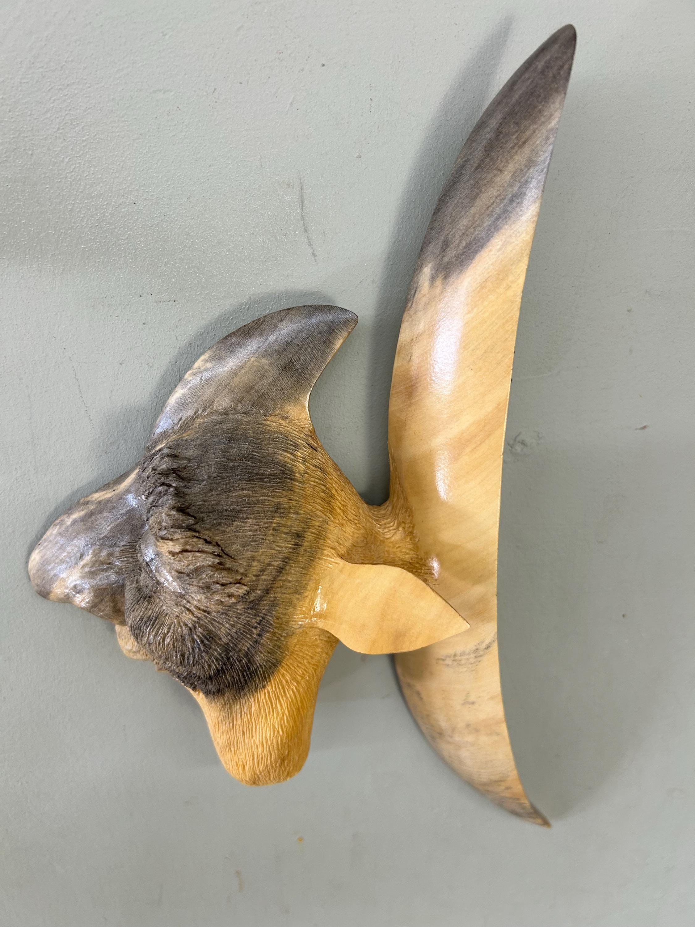 This carved, whimsical Fish wall wood carving would make a great gift present for your Fisherman. He is a unique aquatic piece that would go great with any Nautical Decor. He measures 11" tall x 5 1/2" long x 1 1/2" thick. The 2nd, 3rd and 4th photos are in progress shots and there's a short video showing all of the different views of him.