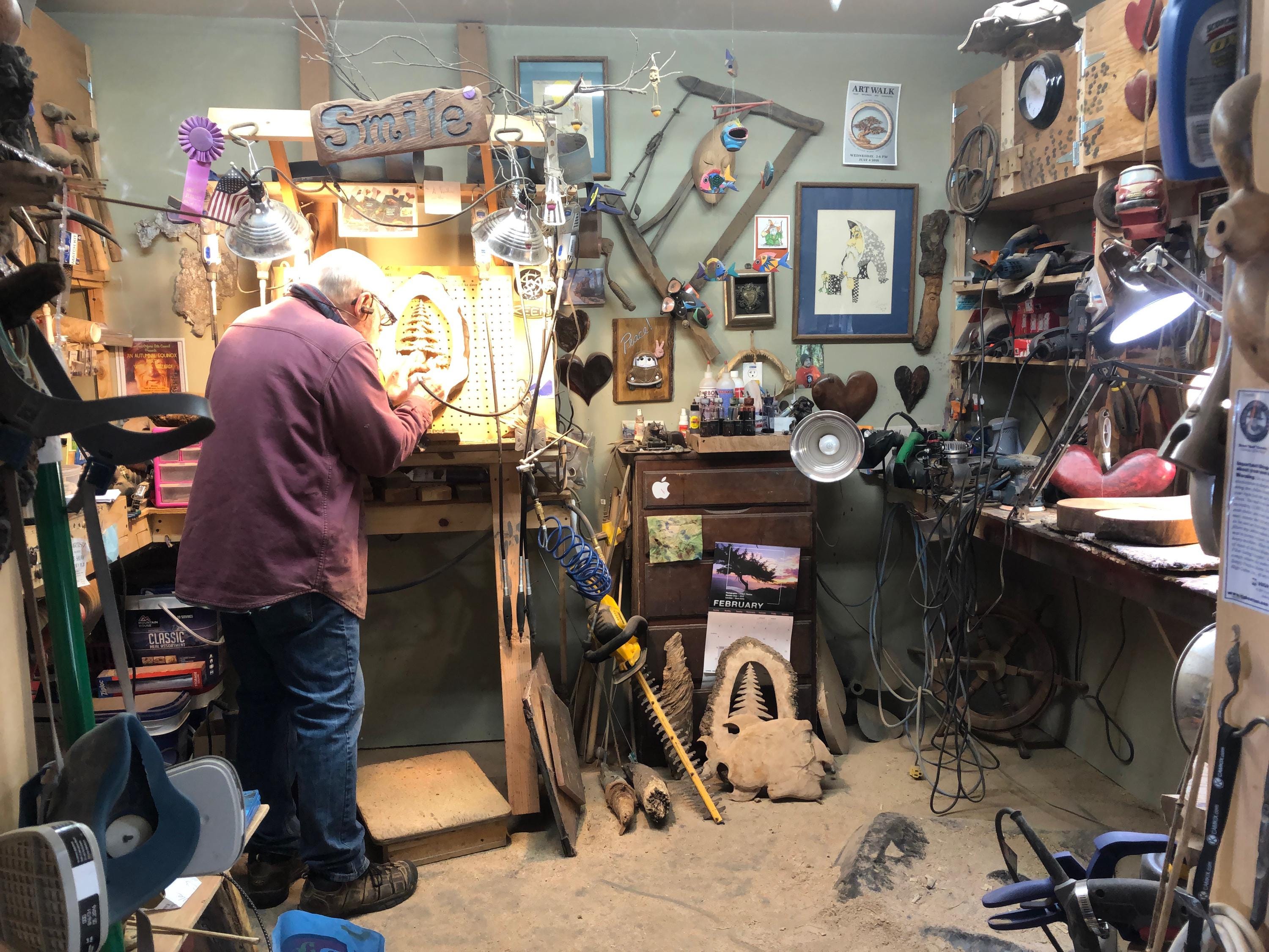 The next to last photo is of me caring in my shop and the last photo is of my shop, the Tree Wizard Gallery in Port Orford, Oregon.