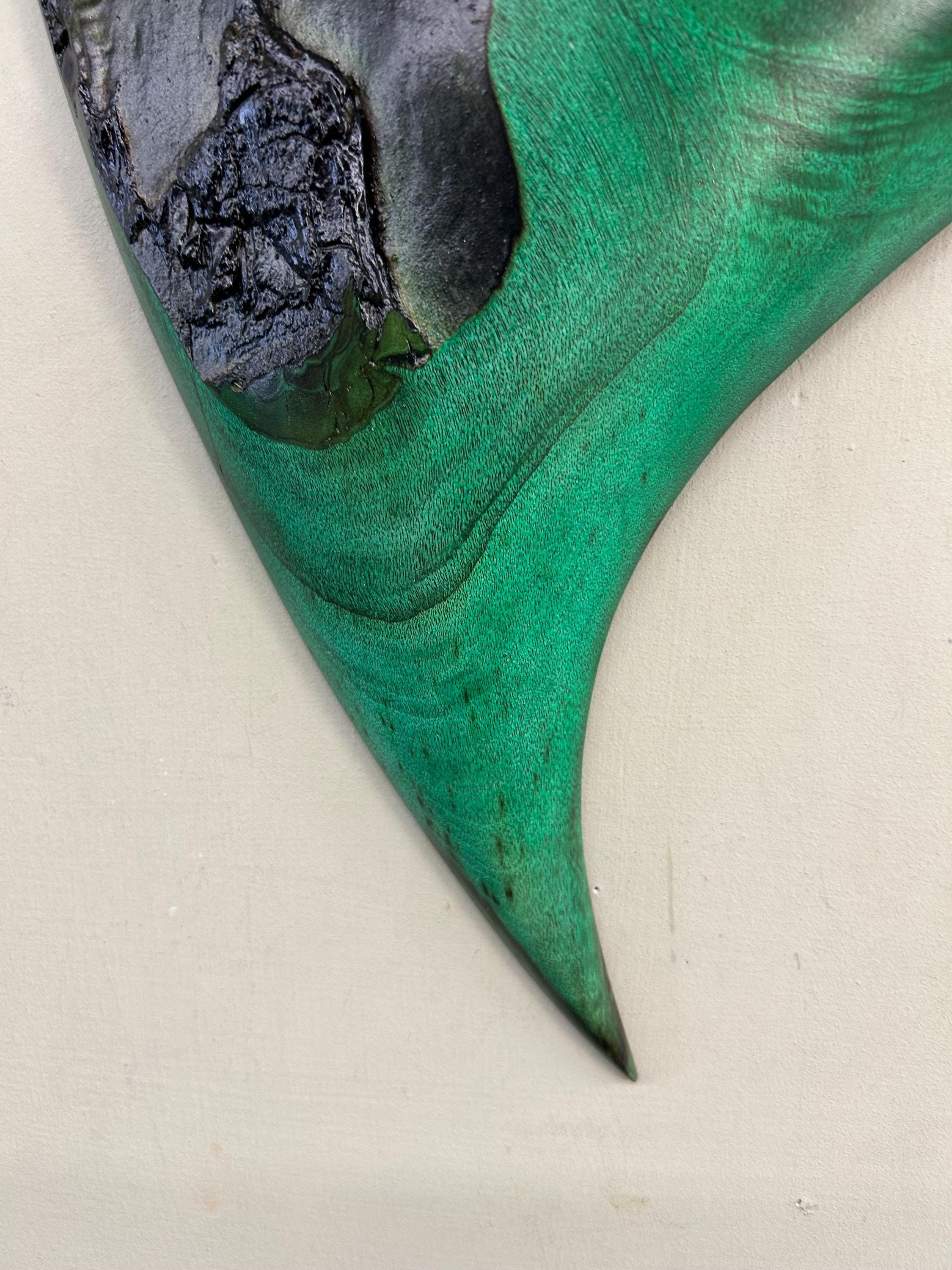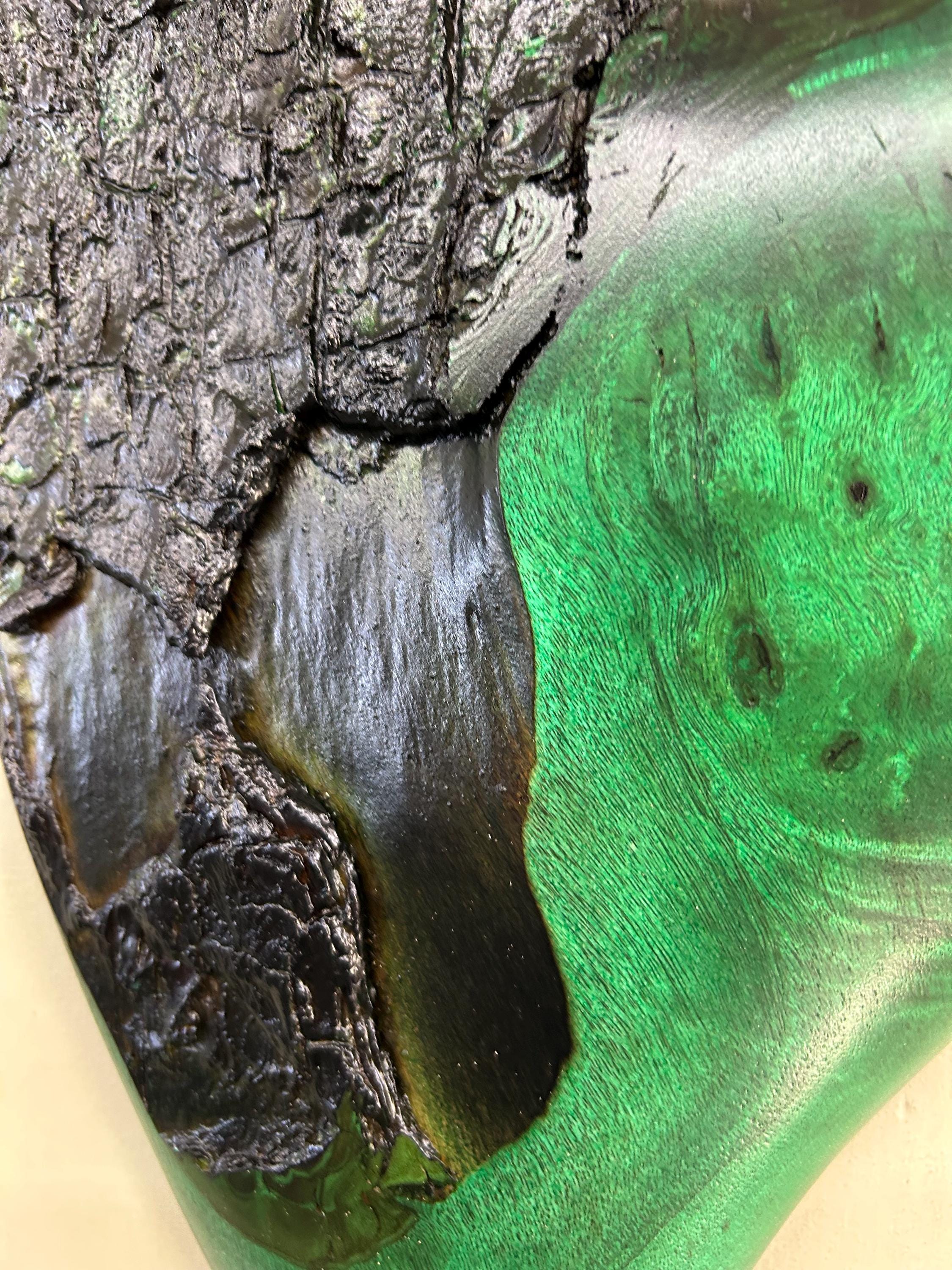 I carved it out of a beautiful piece of Myrtlewood that I dyed green. Myrtle grows exclusively in my area on the Oregon Coast. This design is a bit whimsical.