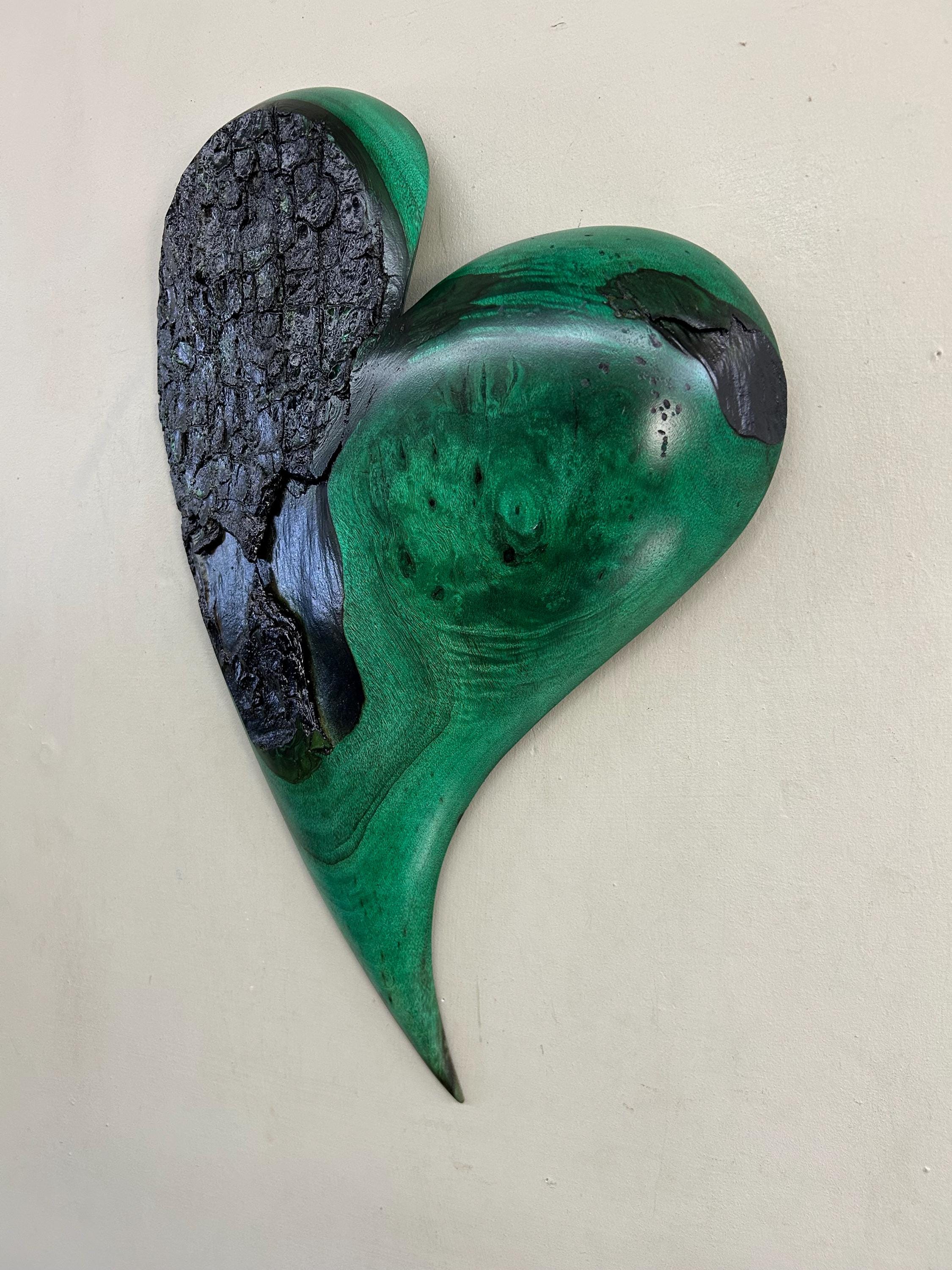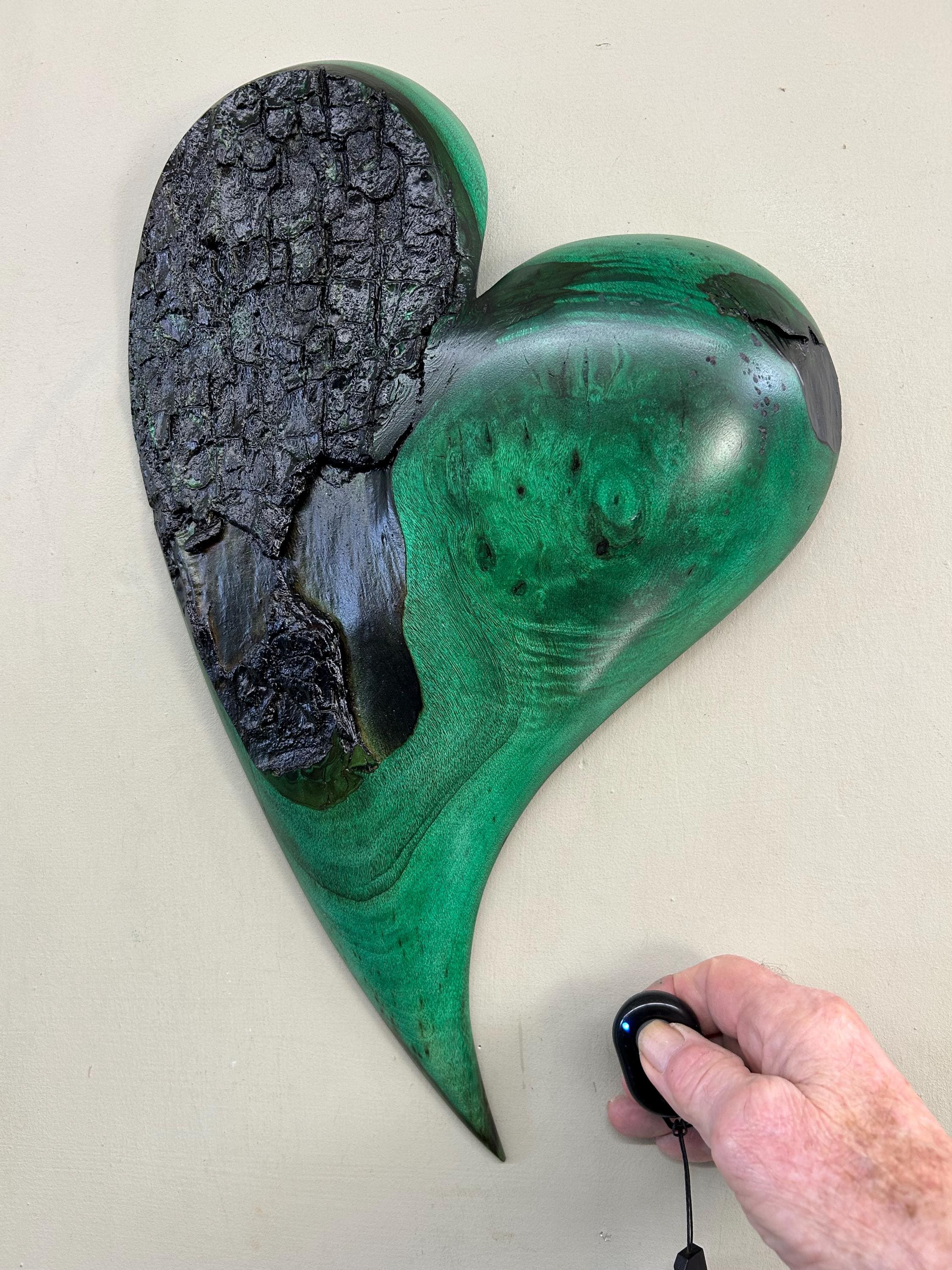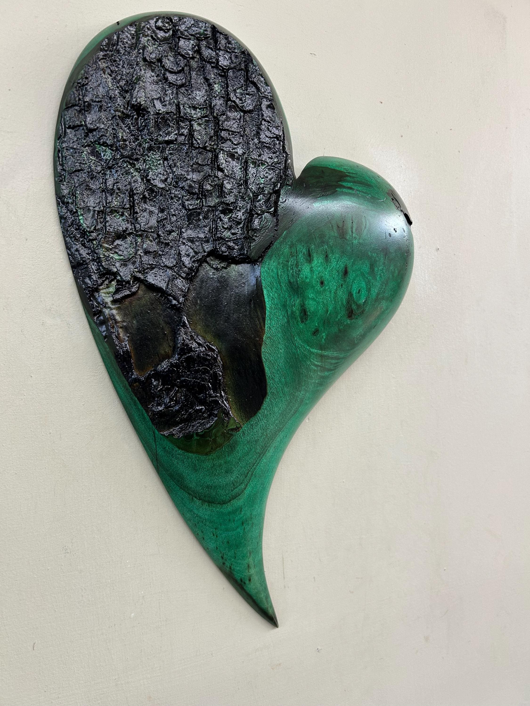 This is a loving Green Myrtlewood gift wall heart art present idea. It's a handmade heart wall hanging, the perfect any occasion gift present! I love the natural edge on the left side. It comes ready to hang on the wall!