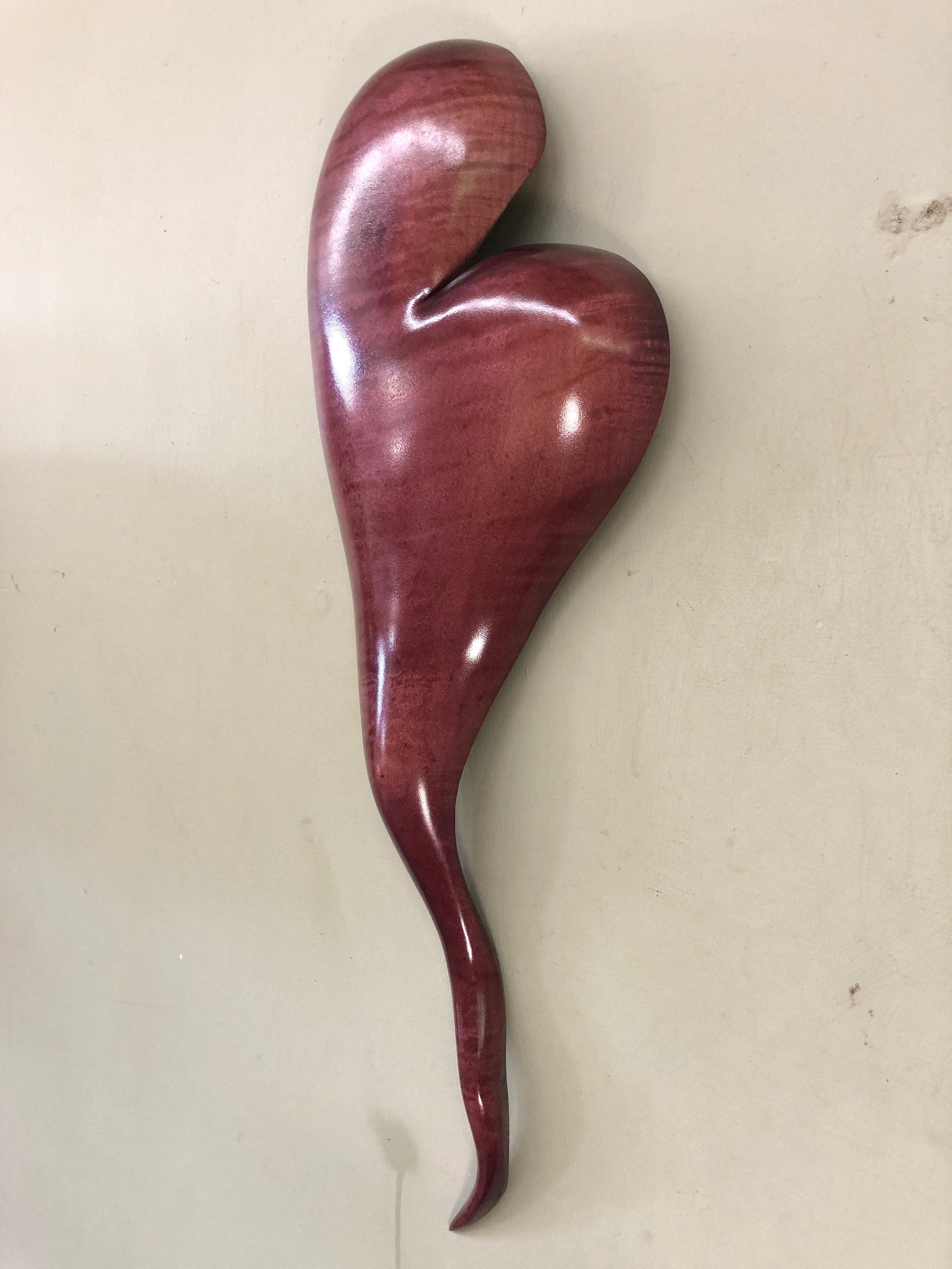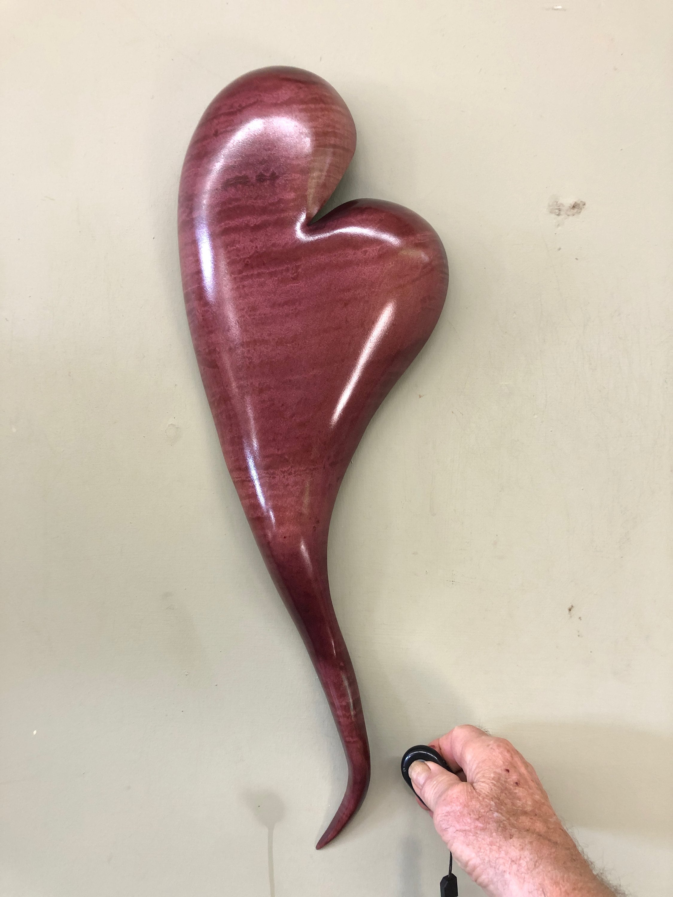 I sure love that there are so many ways to design a heart. There's short and fat, tall and thin, curvy abstract and classical shapes. I love them all! These hearts are each a unique piece. I don't use patterns and each piece of wood is unique. I started carving in 1971 and I've been carving full time since 1978. I still love what I do. There is still something to be amazed about every day! That is what Life is all about for me.