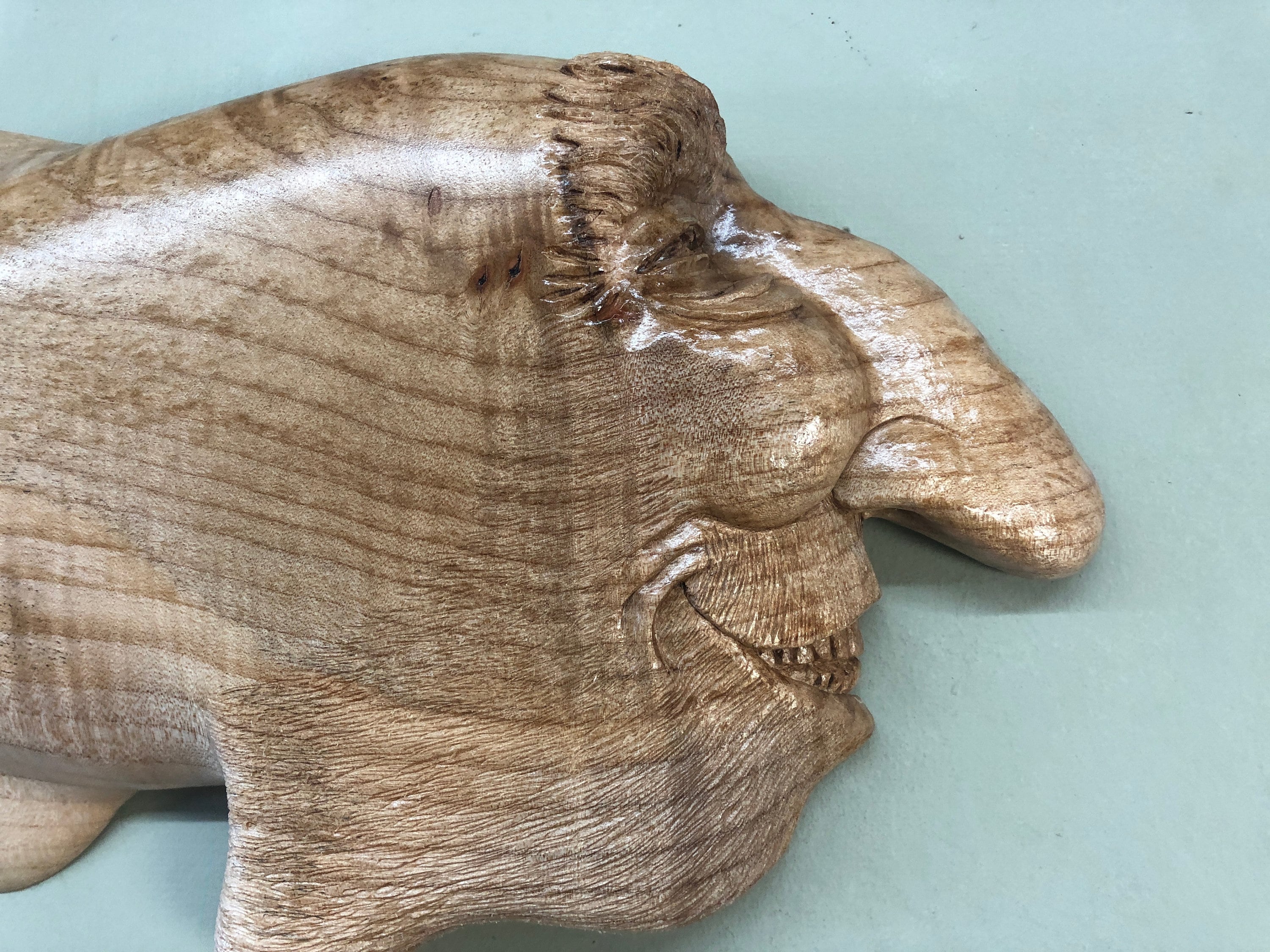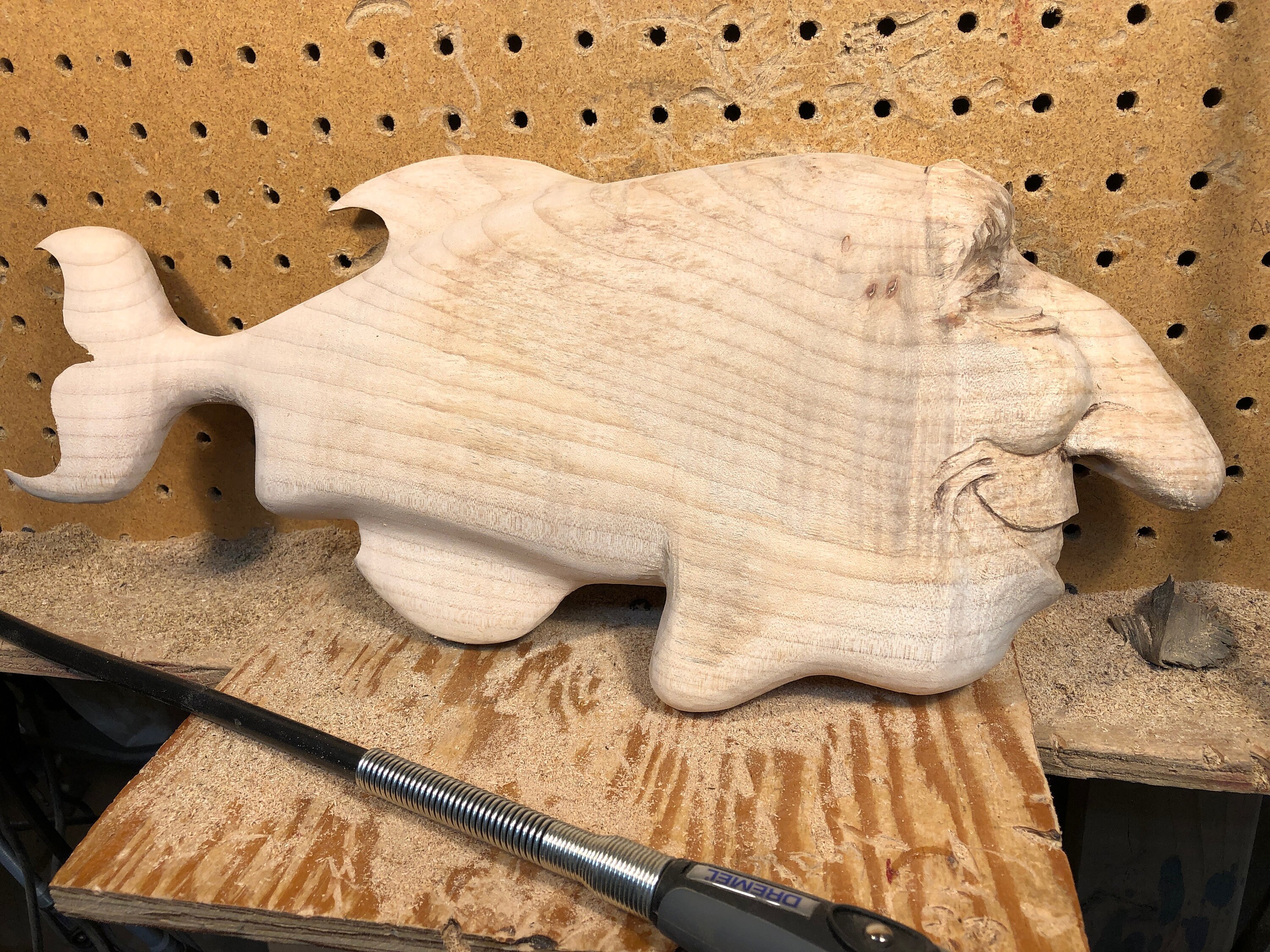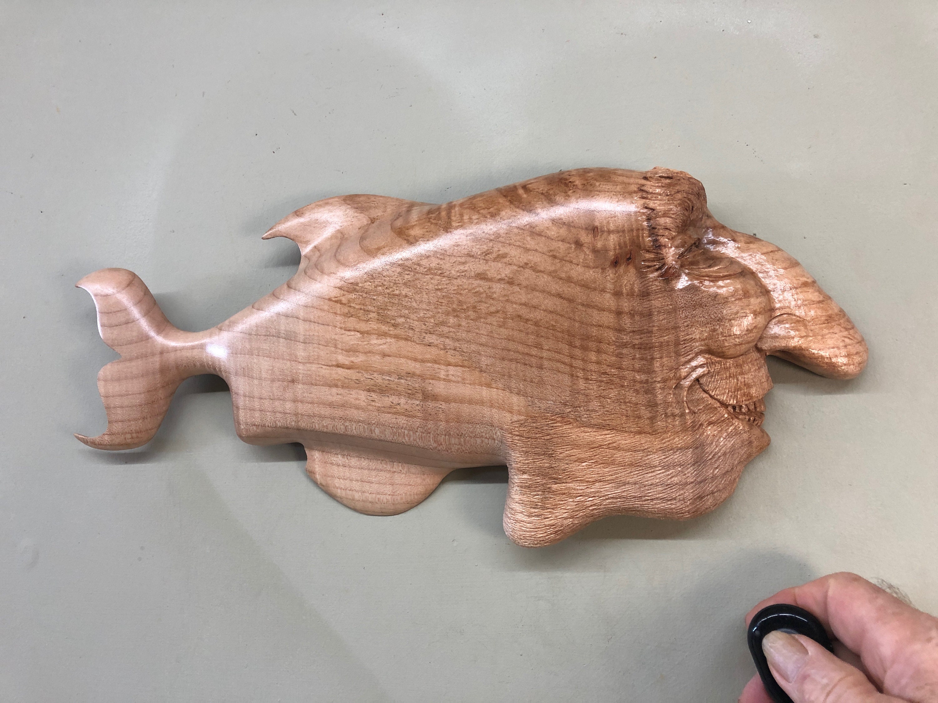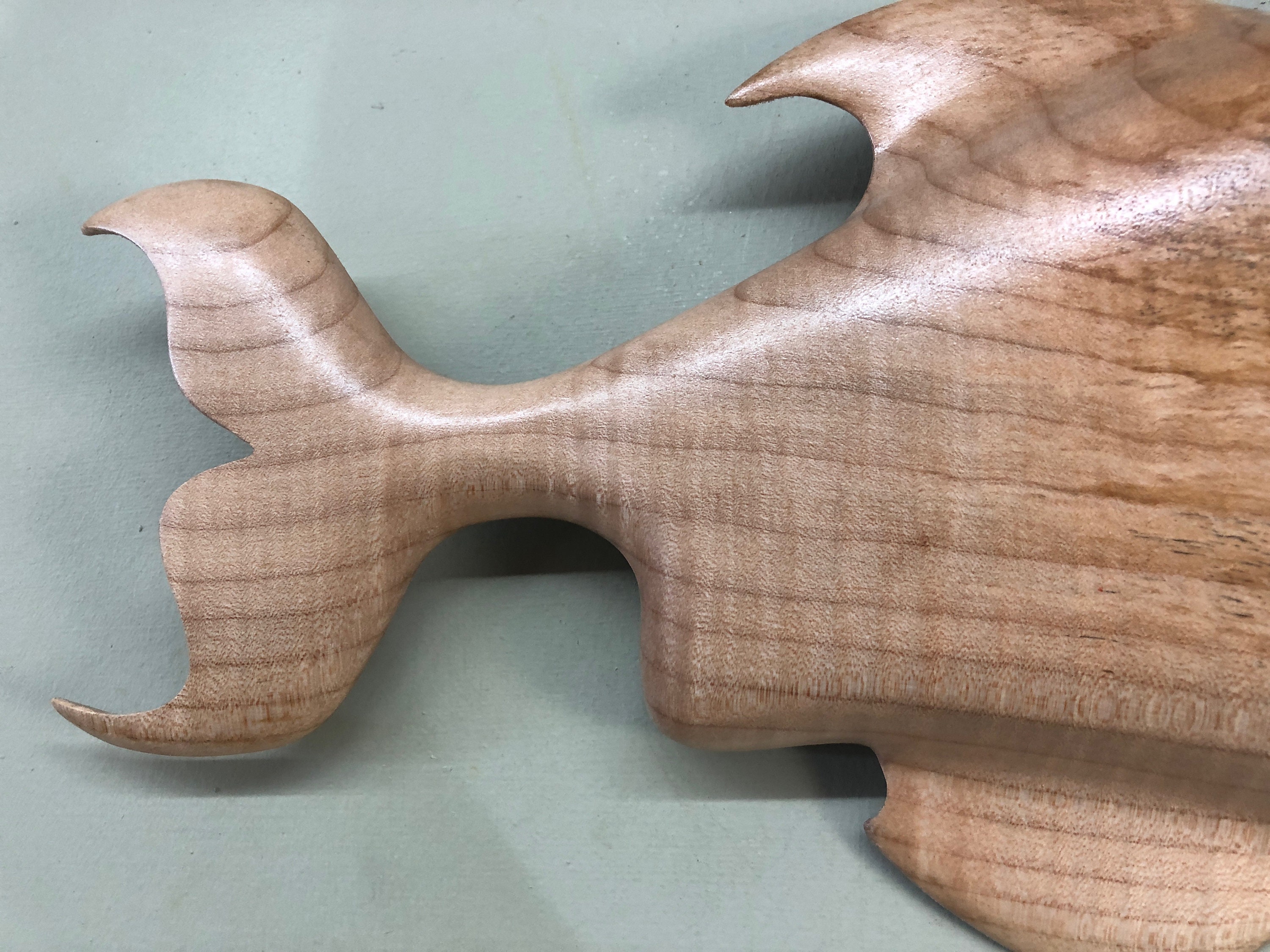 Most of my Aquaknotz were carved out of pine knots but "Thadeus" is carved in a piece of Curly Big Leaf Maple. A tricky wood for me to make a Fantasy Fish out of.