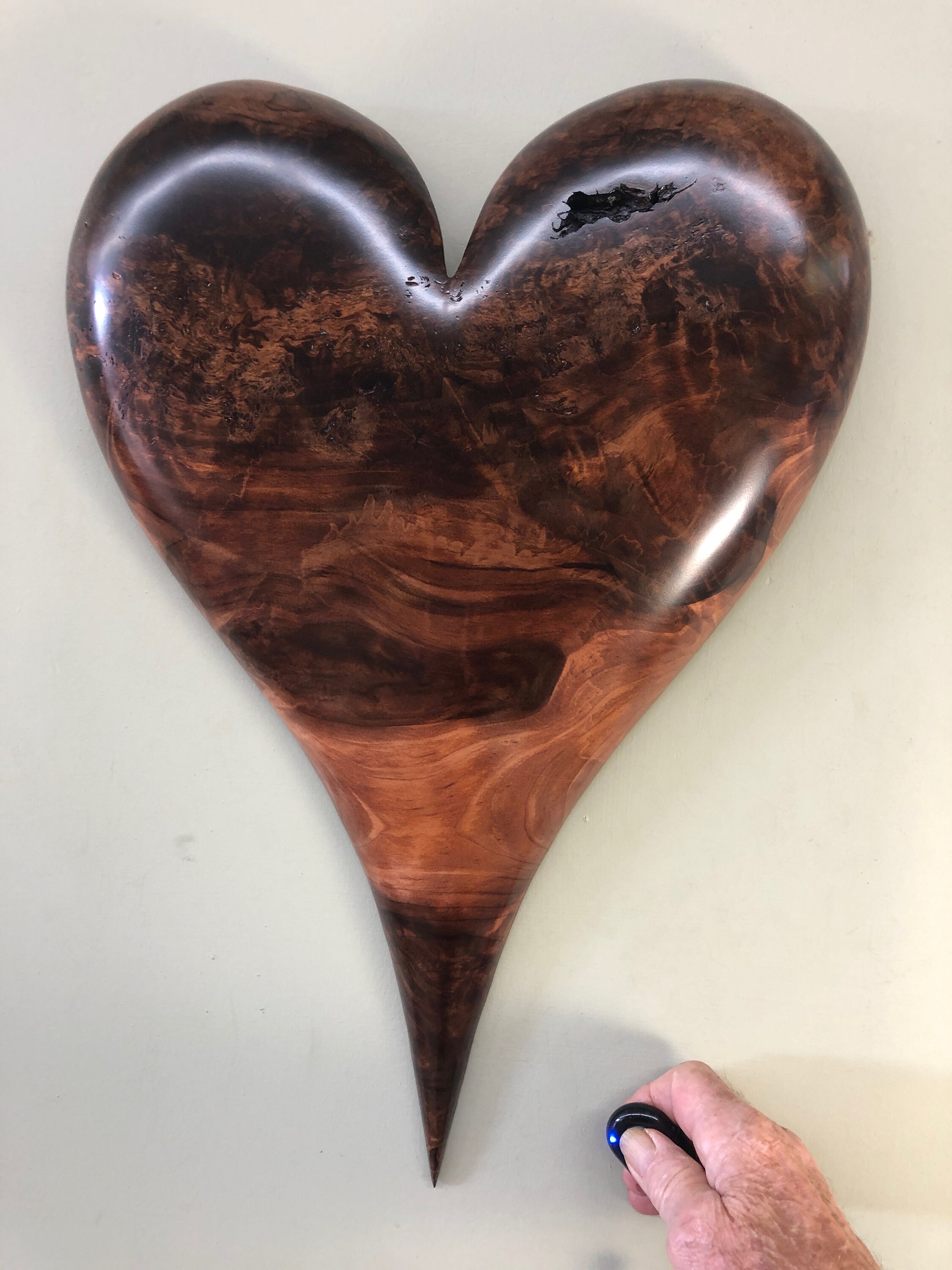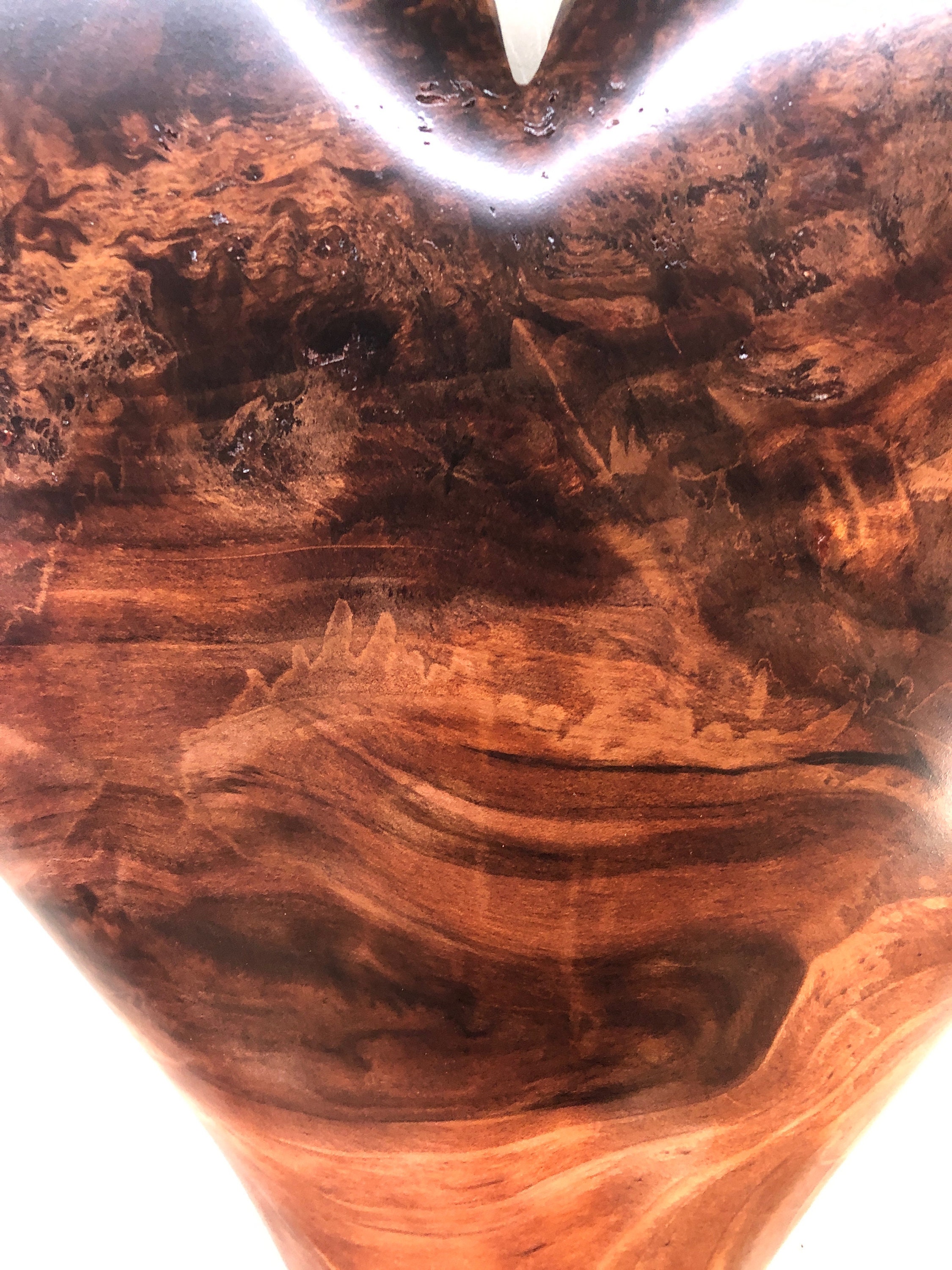 I just got this piece of wood not too long ago and couldn't wait to work it! I don't get much Redwood these days! There is some great figure in the grain pattern! And I love the color. This isn't a blemish free heart but it has a wonderful feel to it. Like most of our hearts, it has been through some times that have tested it's love. Love and Gratitude! That's what makes my world go round!