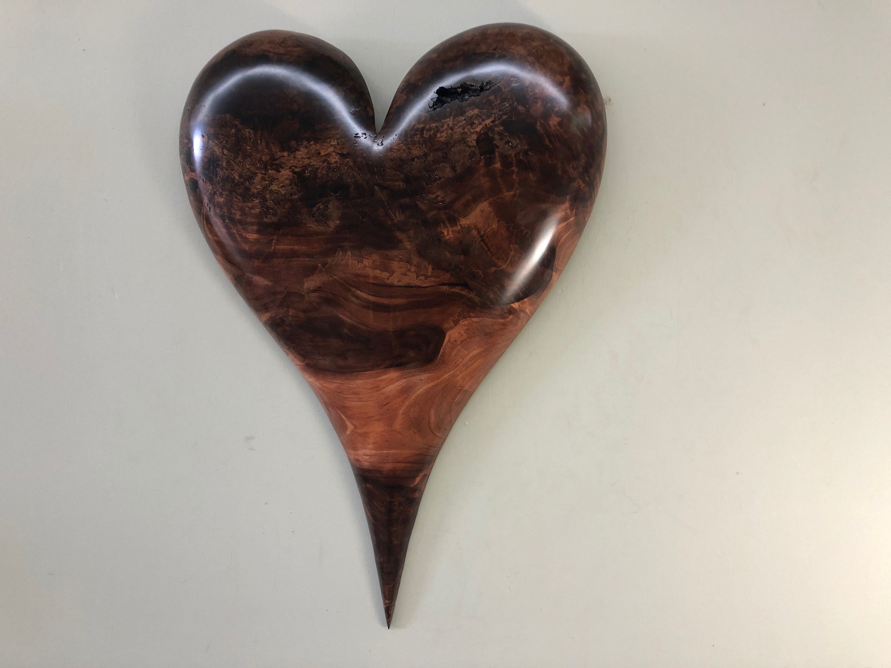 This is a best of etsy wonderful 5th wood Wedding Anniversary gift present wall heart art wood carving. It would be a perfect romantic any occasion gift present!! I am Gary Burns the treewiz and I carve everything in my shop. I can inscribe something personal on the back with no extra charge if it is something simple like a short sentence and date. I do this by hand with a Dremel. This piece comes ready to hang on the wall. It measures 20 1/2" tall x 14 1/4" wide x 1 5/8" thick. It's carved out of a piece of Old Growth Redwood, one of the most amazing trees in the world! This is a really sweet piece of Redwood!